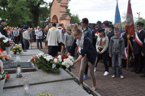 Po Mszy św. poczty sztandarowe i towarzysząca Orkiestra Dęta OSP Grzegorzew, poprowadziła do miejsc pamięci wszystkich zgromadzonych, oddających w tym dniu szczególny hołd poległym. Wiązanki i znicze wyrażające wdzięczność za odwagę i ofiarność, złożono pod tablicą upamiętniającą poległych w obronie Ojczyzny w latach 1939 - 1945 przy Urzędzie Gminy w Grzegorzewie.