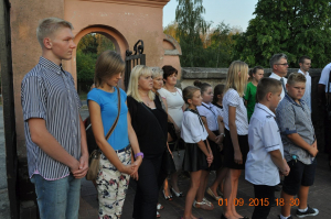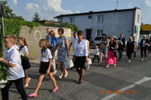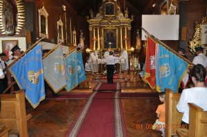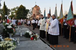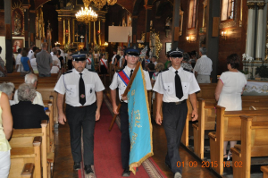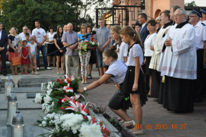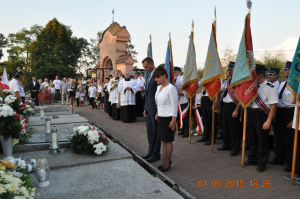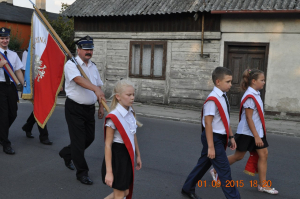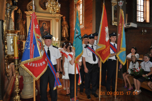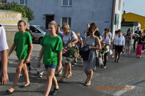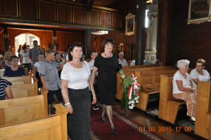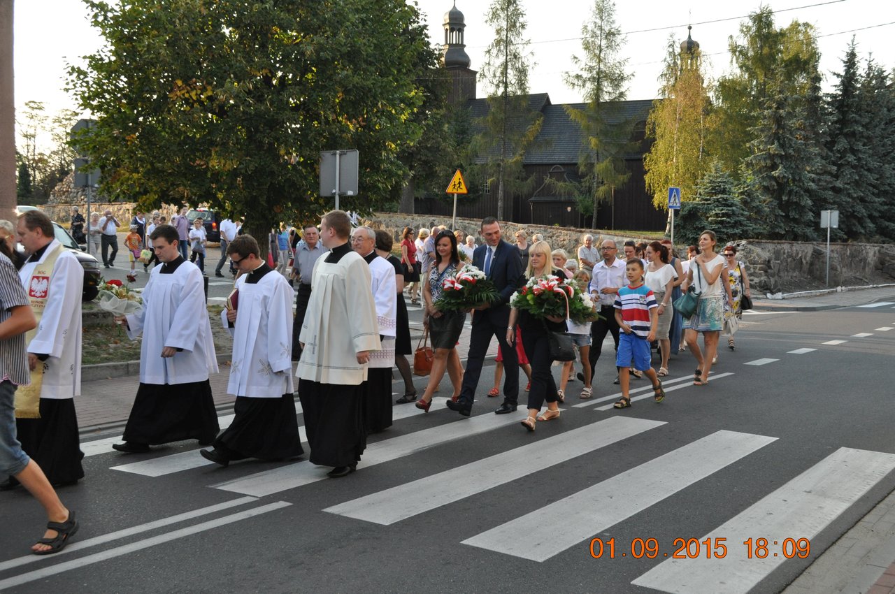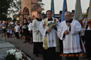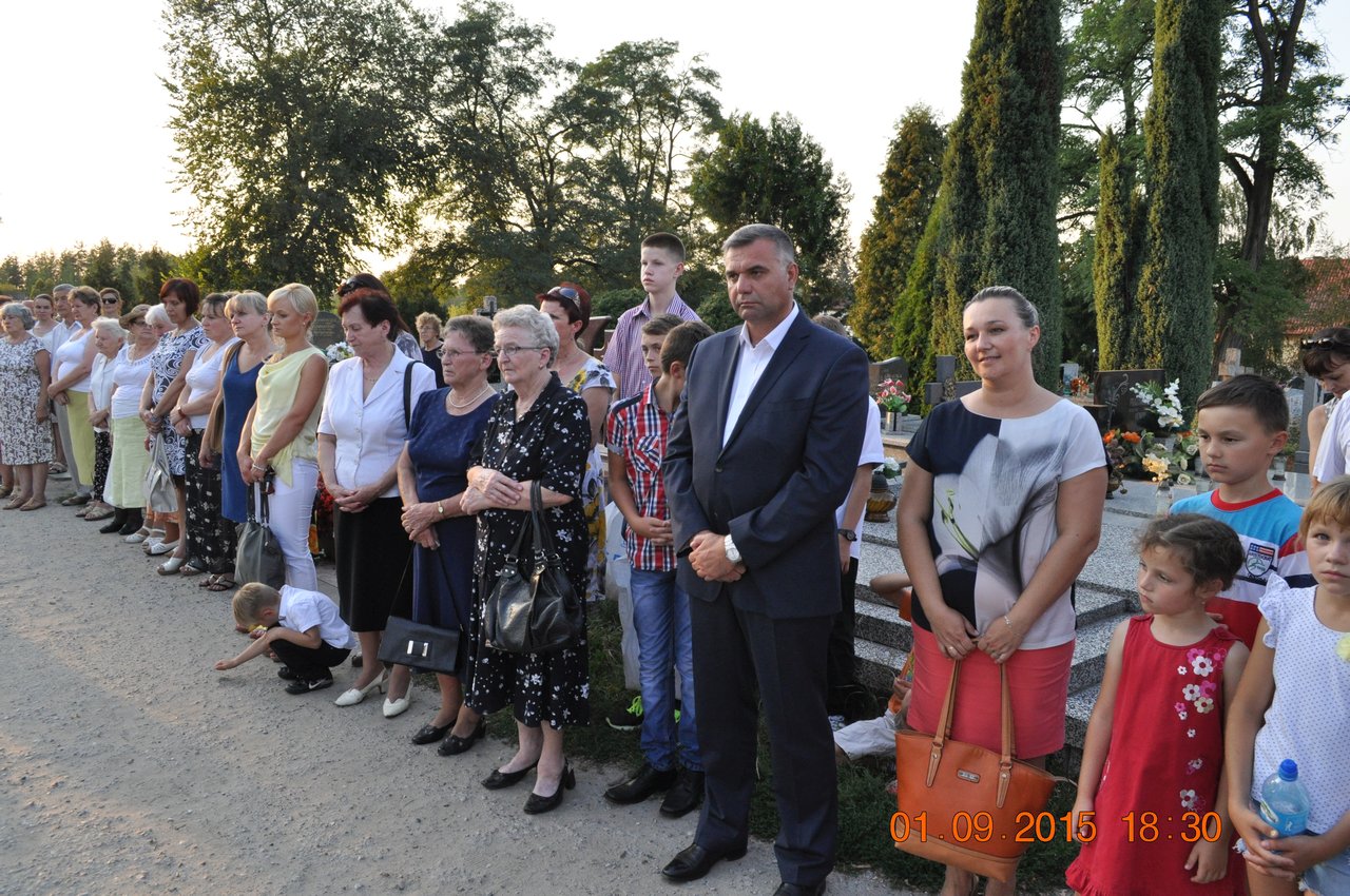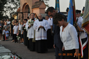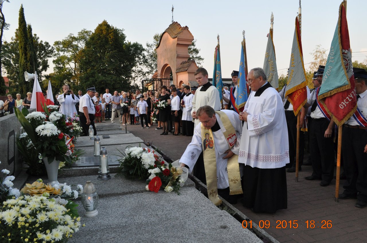 Po zbiórce przed Domem Strażaka władze gminy, poczty sztandarowe, delegacje jednostek OSP, placówek oświatowych i mieszkańcy gminy na czele z orkiestrą dętą udali się do kościoła parafialnego. Mszę św. w intencji poległych w obronie naszej ojczyzny odprawili kapłani Krzysztof Pietryga, Michał Pietrzak i Maciej Adamski. W liturgii uczestniczyli również diakon Sebastian oraz klerycy Sylwester i Bartłomiej. - 76 lat temu ludzie przeżywali tragedię, brali na siebie cios zadany w polskie serce. Nawet najmłodsze dziecko tutaj obecne wie jaką rocznicę obchodzimy. Dziś z wielką miłością pochylamy się nad grobami tych, którzy wyszli w 1939 r. bronić polskich miast i wsi. Dziękujemy, że możemy się modlić nad ich grobami o pokój na świecie, bo czegóż więcej nam trzeba. Tego pokoju i współpracy między narodami potrzeba dzisiaj światu - powiedział w kazaniu ks. proboszcz Krzysztof Pietryga.