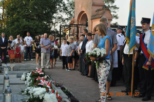 Po nabożeństwie przemaszerowano przed tablicę na budynku Urzędu Gminy upamiętniającą mieszkańców Grzegorzewa i okolic poległych podczas wojny. Wiązankę biało-czerwonych kwiatów złożyli pani wójt Bożena Dominiak i przewodniczący rady gminy Waldemar Banasiak. Następnie udano się na cmentarz parafialny, gdzie na zbiorowej mogile ofiar nalotu hitlerowskiego lotnictwa na Chojny złożono wiązanki kwiatów. Pani wójt odczytała apel poległych, w którym oddano hołd mieszkańcom gminy poległym we wrześniu 1939 r., pomordowanym w Katyniu, walczącym w podziemiu zbrojnym z hitlerowskim okupantem, zamęczonym kapłanom i Żołnierzom Wyklętym. - 1 września gromadzimy się na naszym cmentarzu, aby oddać hołd tym, którzy poświęcili dobro najwyższe - swoje życie. Ważne jest, że jesteśmy i pamiętamy. Ta pamięć trwa. Przecież każda polska rodzina doświadczyła nie tylko heroizmu walki, ale i brutalności, prześladowań oraz masowych zbrodni okupantów. Dlatego wszyscy powinniśmy zatrzymać się i w zadumie wspomnieć tych, którzy walczyli i ginęli, abyśmy mogli dziś żyć w wolnym kraju. Ważna jest pamięć o drodze, którą musiała przejść Polska, aby stać się krajem niepodległym i suwerennym - mówiła w swoim wystąpieniu pani wójt. Odmówiono modlitwę w intencji ofiar wojny.