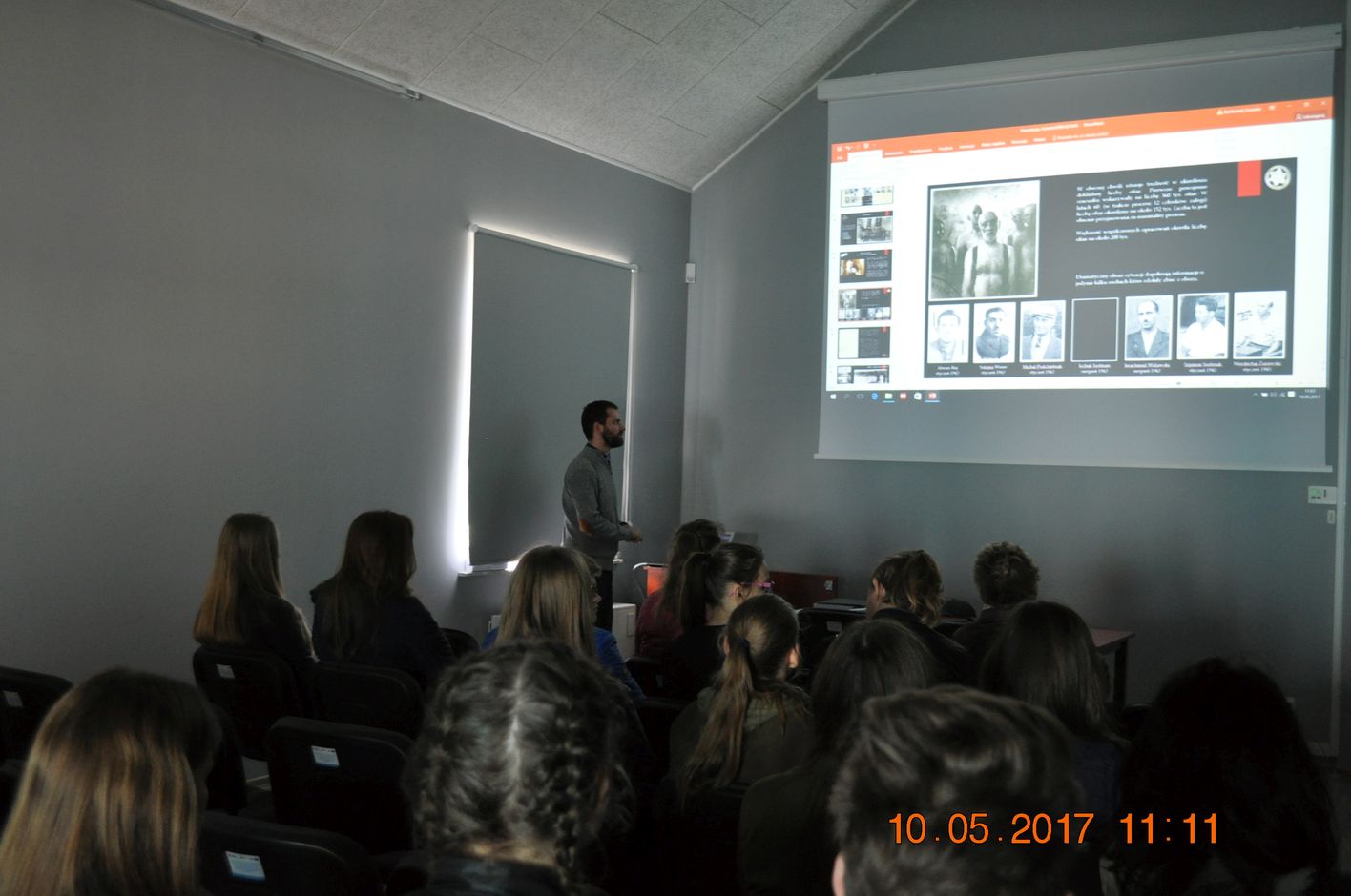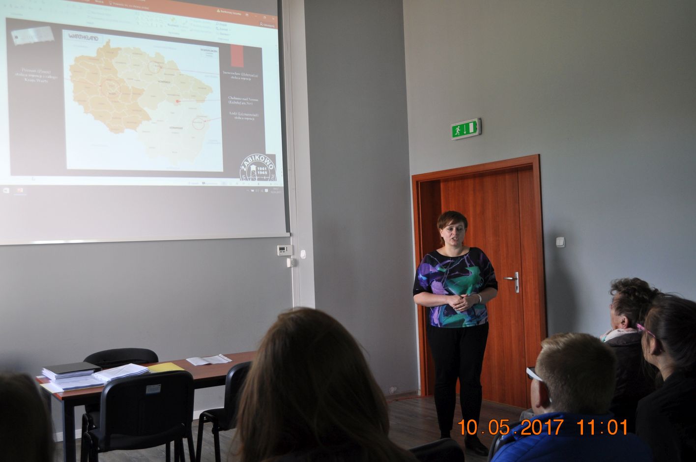 Wycieczkę nasza rozpoczęliśmy od zwiedzania Muzeum byłego obozu zagłady w Chełmnie. Usłyszeliśmy o tragicznej historii tego miejsca opowiedzianej w bardzo poruszający sposób przez kustosza Muzeum pana Zdzisława Lorka. Wysłuchaliśmy również prelekcji przygotowanej przez pana Bartłomieja Grzankę. Młodzież gimnazjalna obejrzały również film z naocznym świadkiem tych wydarzeń, który miał wtedy 13 lat.
