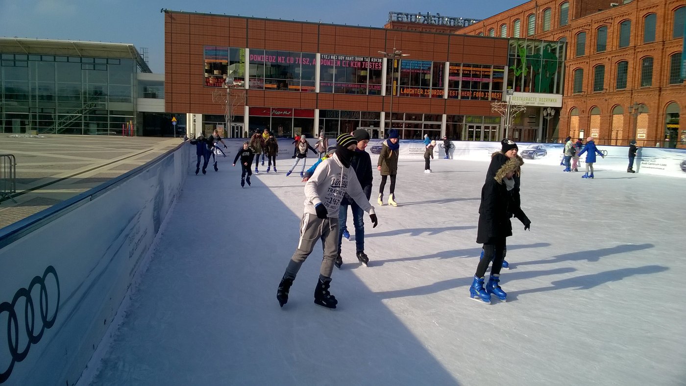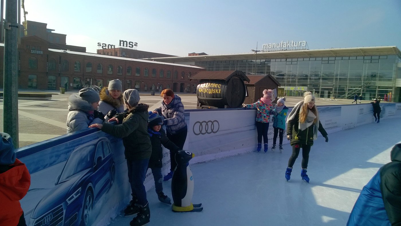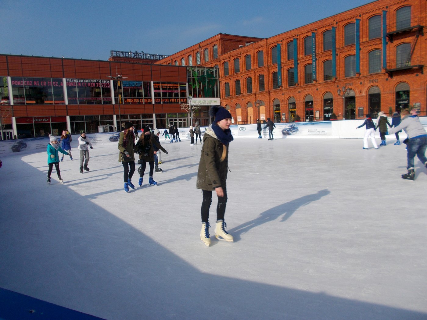 Wycieczka rozpoczęła się od pobytu na lodowisku ,,Manufaktura”. Mając do dyspozycji całe lodowisko mogliśmy obserwować wzloty i upadki nowicjuszy i zaawansowanych łyżwiarzy. Niektórzy wjeżdżali na taflę odważnie, a inni robili to trzymając się bandy, żeby mieć się, czego chwycić w najgorszym momencie. Mimo bolących kolan i kostek zabawa była niepowtarzalna. Zawsze towarzyszył wszystkim uśmiech. Zabawa na lodowisku zachęciła nas do aktywnego spędzania wolnego czasu.