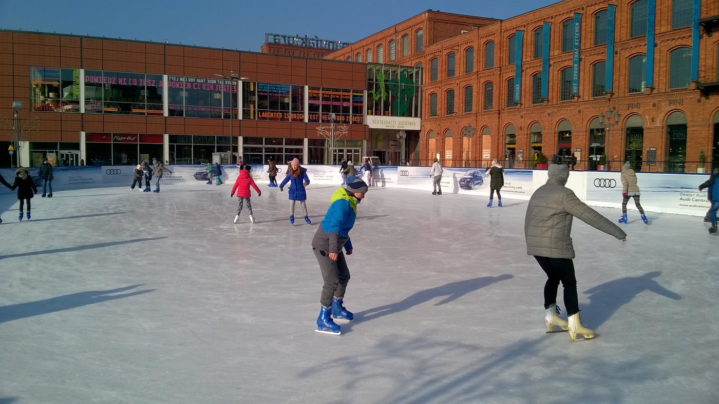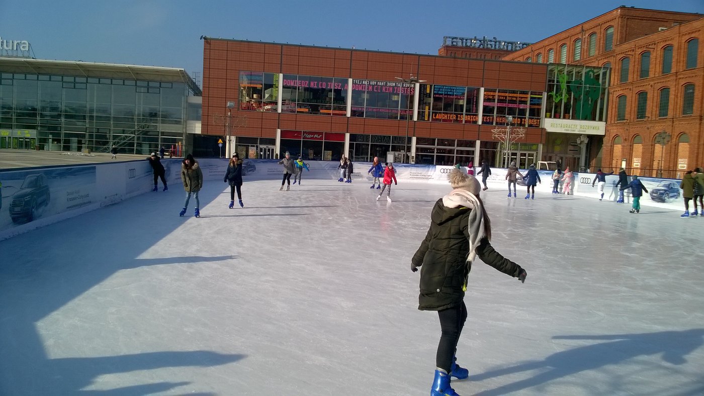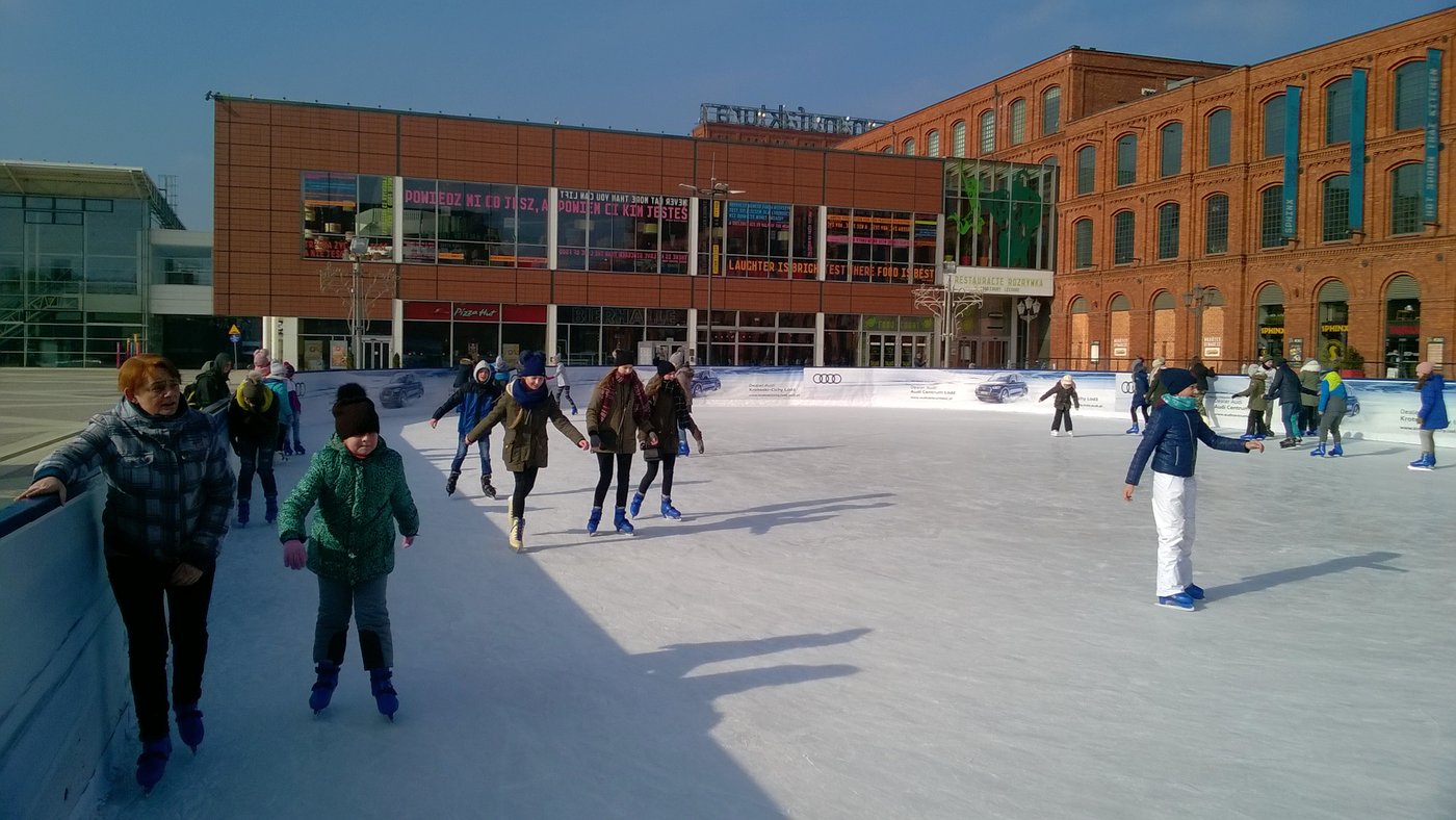Wycieczka rozpoczęła się od pobytu na lodowisku ,,Manufaktura”. Mając do dyspozycji całe lodowisko mogliśmy obserwować wzloty i upadki nowicjuszy i zaawansowanych łyżwiarzy. Niektórzy wjeżdżali na taflę odważnie, a inni robili to trzymając się bandy, żeby mieć się, czego chwycić w najgorszym momencie. Mimo bolących kolan i kostek zabawa była niepowtarzalna. Zawsze towarzyszył wszystkim uśmiech. Zabawa na lodowisku zachęciła nas do aktywnego spędzania wolnego czasu.