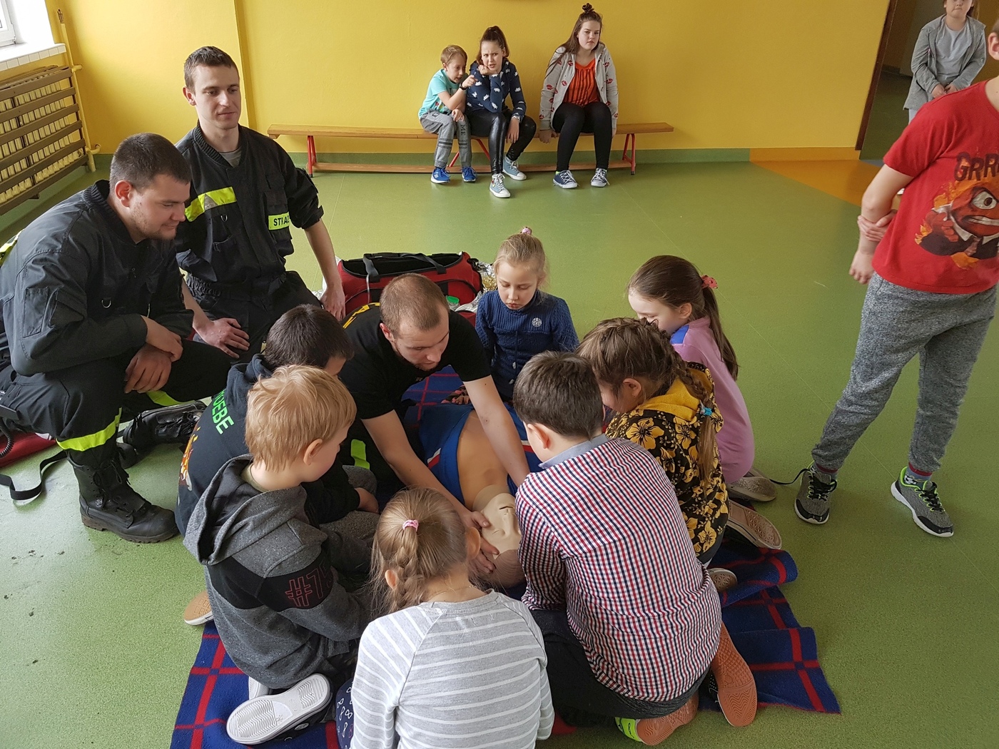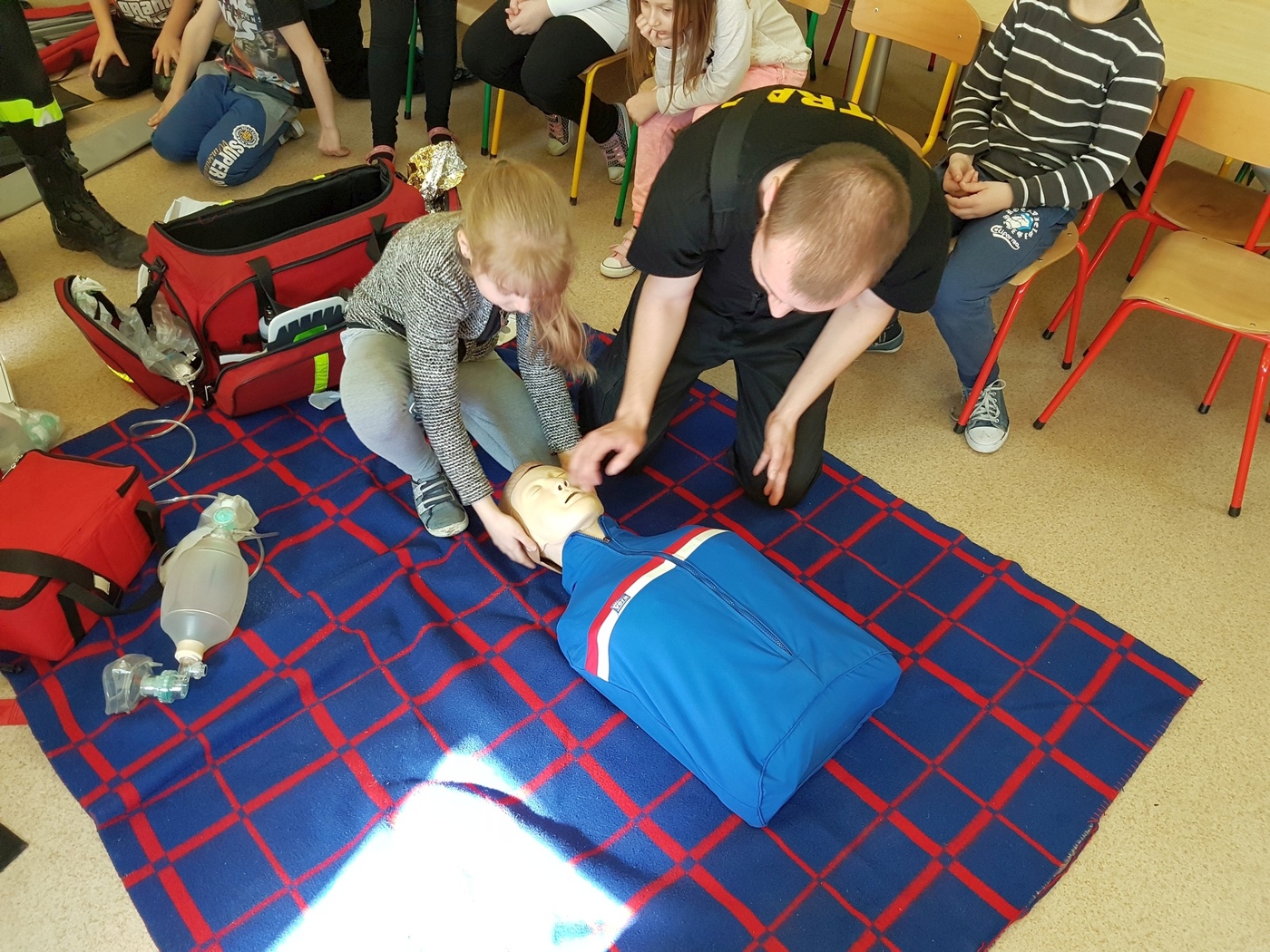 Praktyczne pokazy udzielenia pierwszej pomocy cieszyÅ‚y siÄ™ ogromnym zainteresowaniem wÅ›ród najmÅ‚odszych.Â