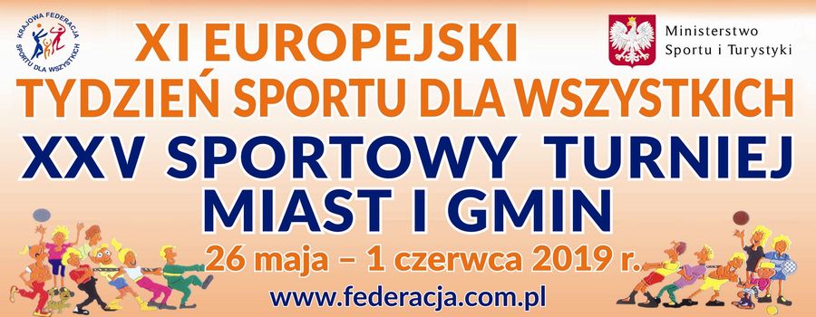 Informujemy, że nasza gmina przystępuje w tym roku do inicjatywy XI Europejskiego Tygodnia Sportu Dla Wszystkich w ramach którego zostanie rozegrany jubileuszowy XXV Sportowy Turniej Miast i Gmin organizowany przez Krajową Federację Sportu dla Wszystkich (KFSdW) przy finansowym wsparciu Ministerstwa Sportu i Turystyki.