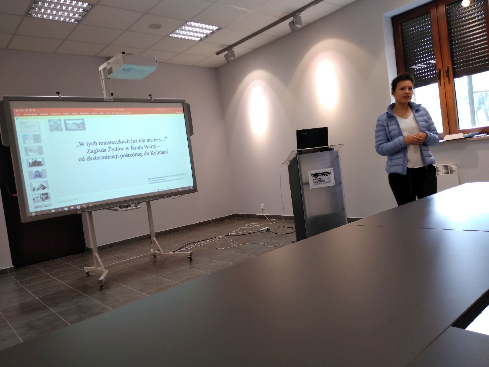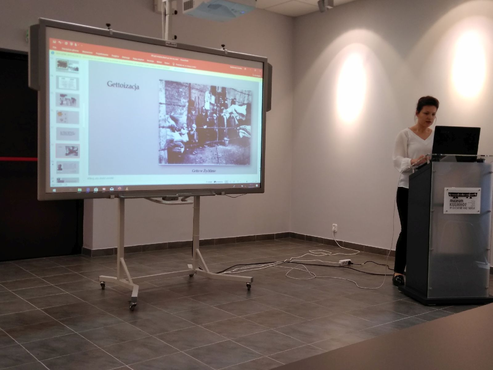 WycieczkÄ™ rozpoczÄ™liÅ›my od prezentacji multimedialnej przygotowanej przez pracownika Muzeum byÅ‚ego niemieckiego Obozu ZagÅ‚ady Kulmhof w CheÅ‚mnie nad Nerem paniÄ… MagdalenÄ™ Babik, która przybliżyÅ‚a uczestnikom wycieczki historiÄ™ tego miejsca. ObejrzeliÅ›my również film z naocznym Å›wiadkiem tamtych wydarzeÅ„, który byÅ‚ wtedy dzieckiem.