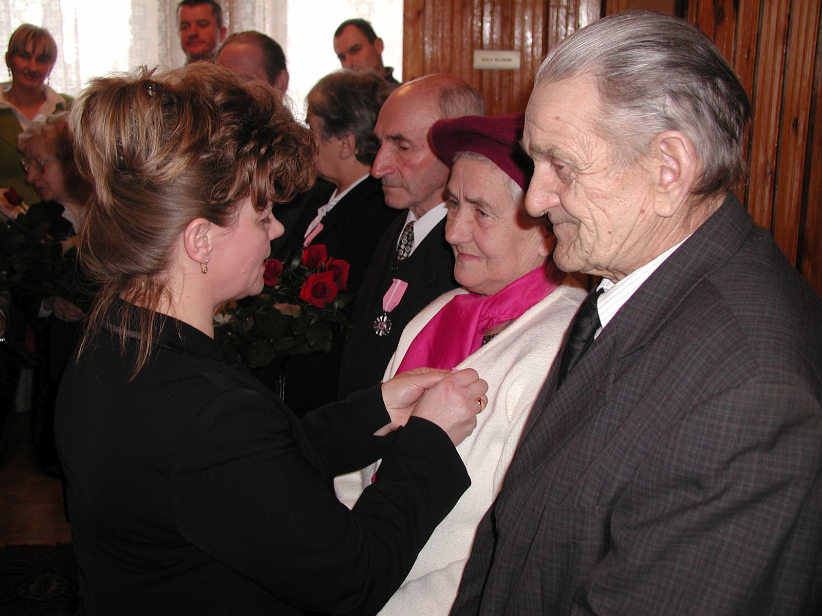 Uroczystość miała charakter rodzinny. Oprócz dostojnych Jubilatów uczestniczyli w niej dzieci, wnuczęta i prawnuki. Medale w imieniu Prezydenta RP wręczyły Wójt Gminy Bożena Dominiak i Kierownik USC Urszula Kikosicka, które złożyły wszystkim zebranym Jubilatom najserdeczniejsze życzenia. Dostojni Jubilaci oprócz medali otrzymali kwiaty i jubileuszowe pamiątkowe dokumenty zawarcia związku małżeńskiego.