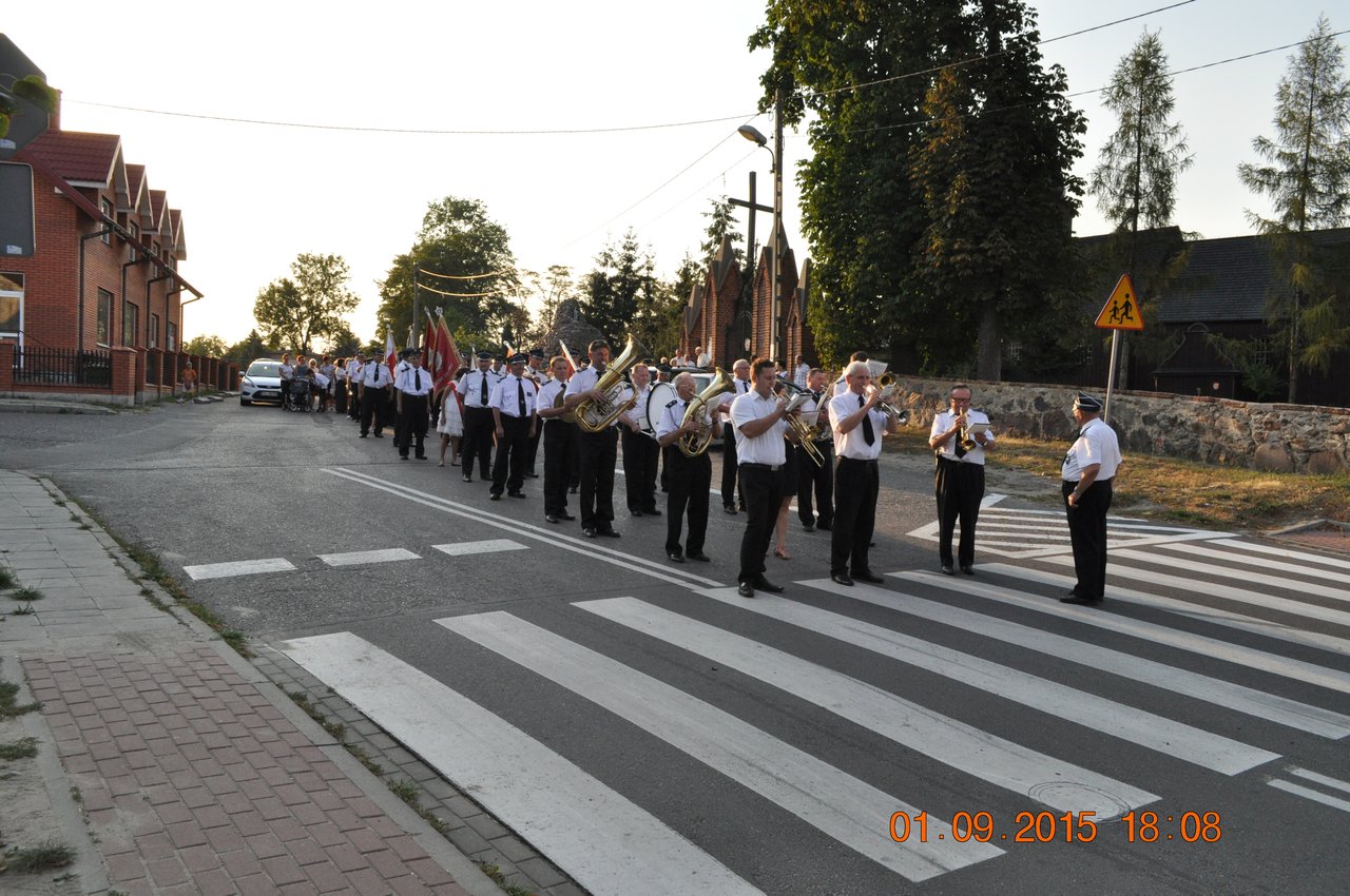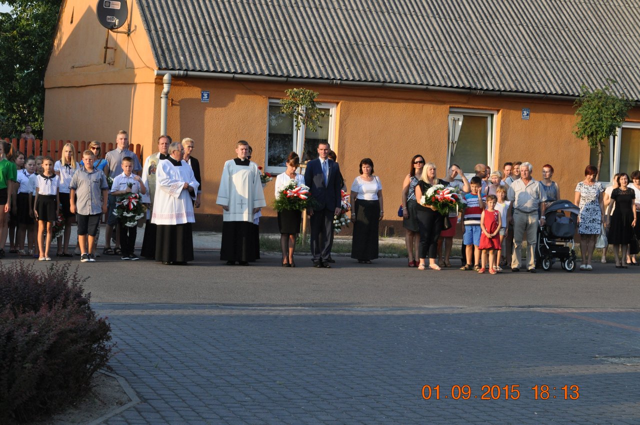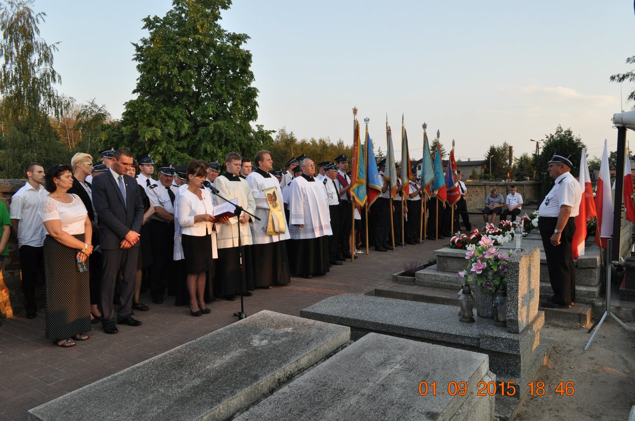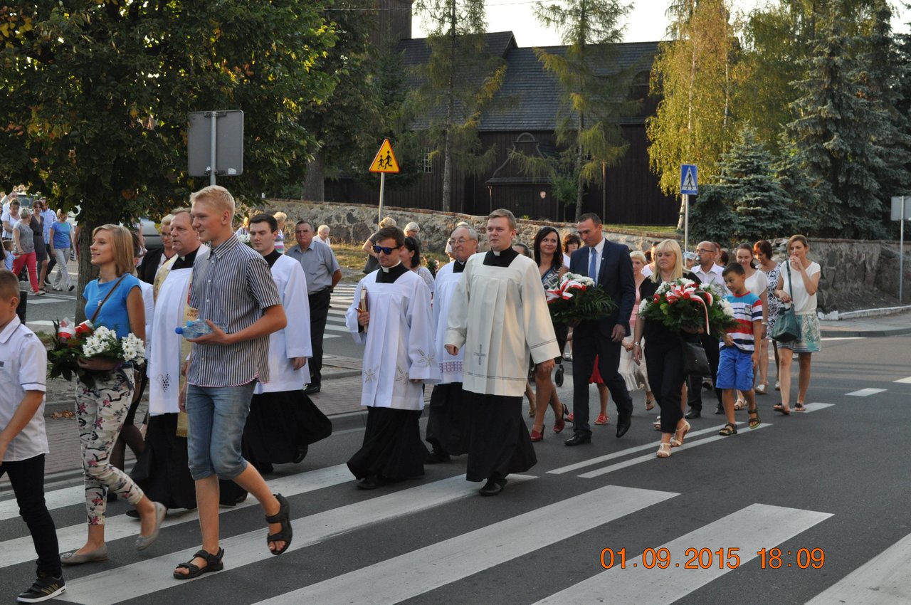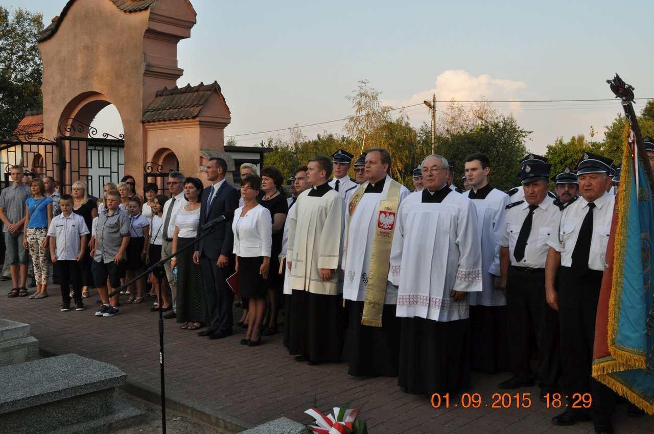 Po zbiórce przed Domem Strażaka władze gminy, poczty sztandarowe, delegacje jednostek OSP, placówek oświatowych i mieszkańcy gminy na czele z orkiestrą dętą udali się do kościoła parafialnego. Mszę św. w intencji poległych w obronie naszej ojczyzny odprawili kapłani Krzysztof Pietryga, Michał Pietrzak i Maciej Adamski. W liturgii uczestniczyli również diakon Sebastian oraz klerycy Sylwester i Bartłomiej. - 76 lat temu ludzie przeżywali tragedię, brali na siebie cios zadany w polskie serce. Nawet najmłodsze dziecko tutaj obecne wie jaką rocznicę obchodzimy. Dziś z wielką miłością pochylamy się nad grobami tych, którzy wyszli w 1939 r. bronić polskich miast i wsi. Dziękujemy, że możemy się modlić nad ich grobami o pokój na świecie, bo czegóż więcej nam trzeba. Tego pokoju i współpracy między narodami potrzeba dzisiaj światu - powiedział w kazaniu ks. proboszcz Krzysztof Pietryga.