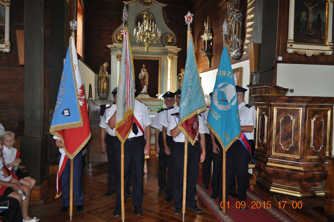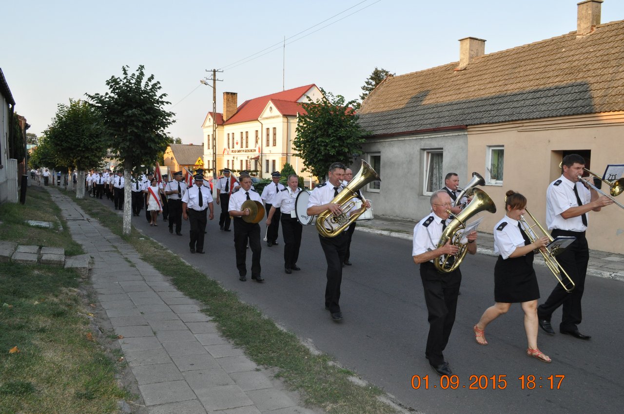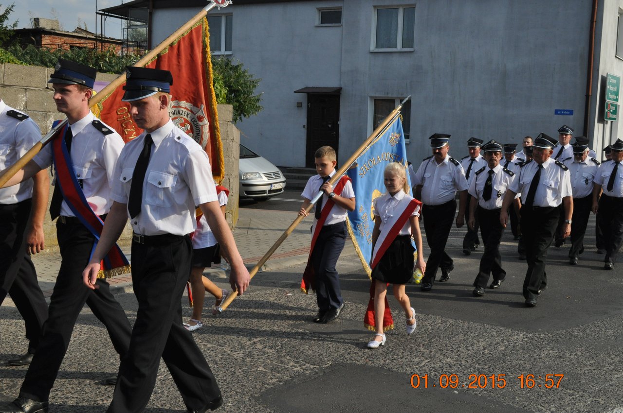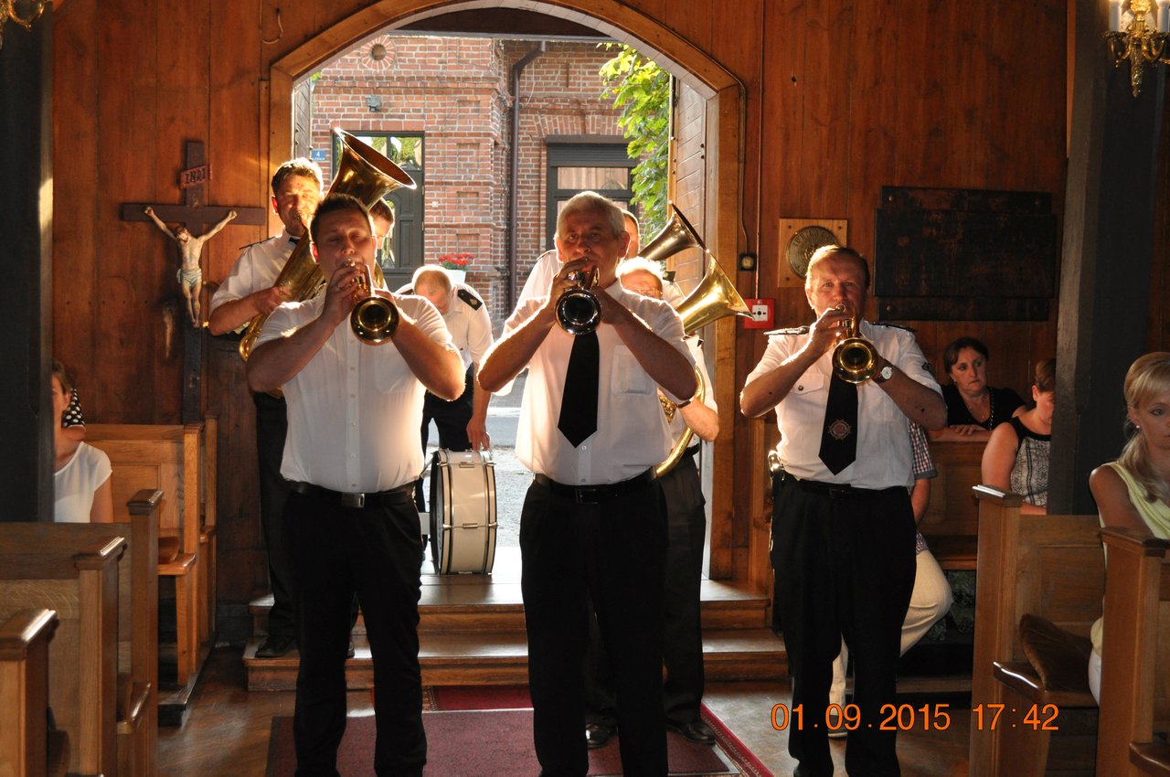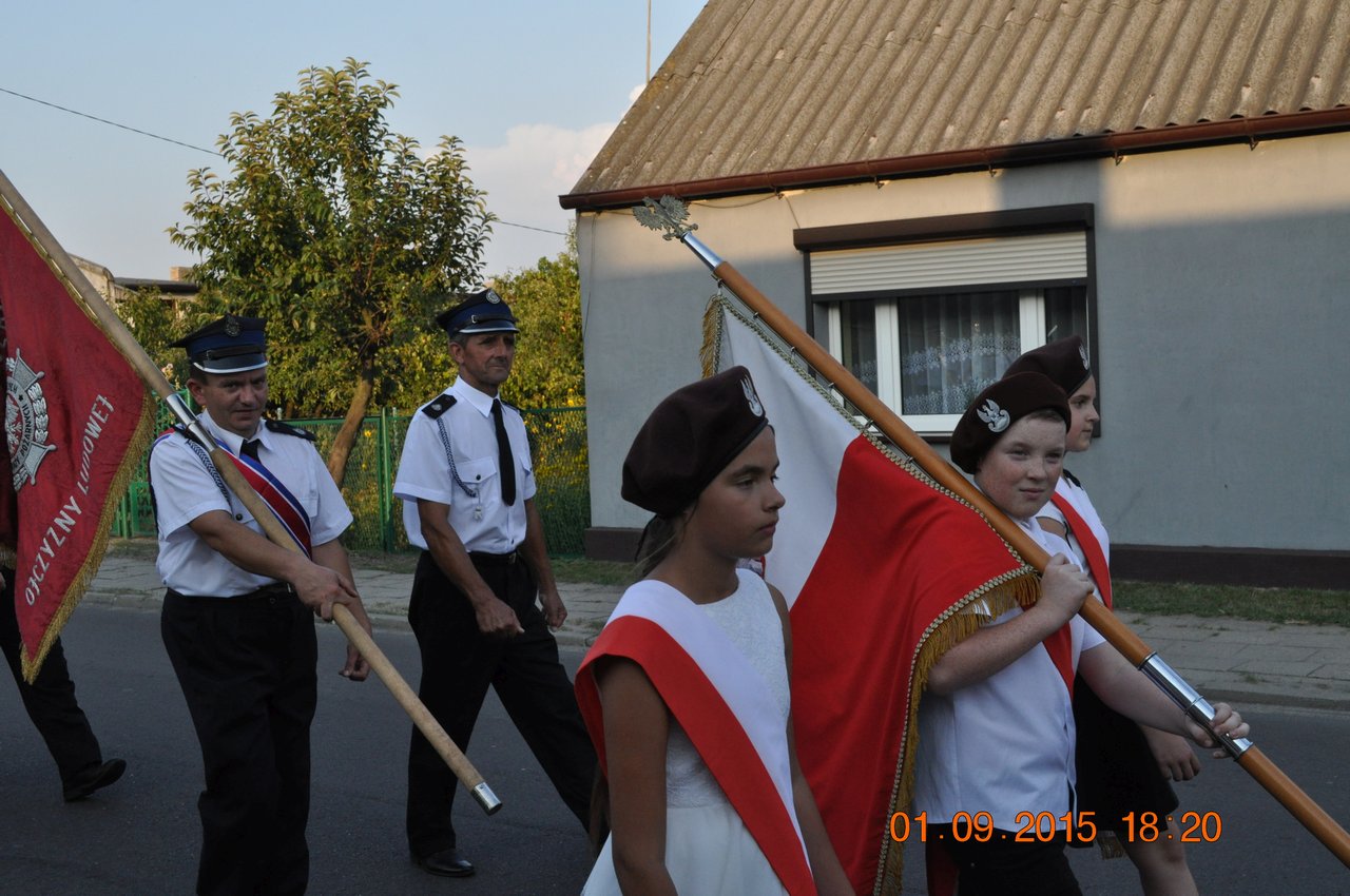 Po zbiórce przed Domem Strażaka władze gminy, poczty sztandarowe, delegacje jednostek OSP, placówek oświatowych i mieszkańcy gminy na czele z orkiestrą dętą udali się do kościoła parafialnego. Mszę św. w intencji poległych w obronie naszej ojczyzny odprawili kapłani Krzysztof Pietryga, Michał Pietrzak i Maciej Adamski. W liturgii uczestniczyli również diakon Sebastian oraz klerycy Sylwester i Bartłomiej. - 76 lat temu ludzie przeżywali tragedię, brali na siebie cios zadany w polskie serce. Nawet najmłodsze dziecko tutaj obecne wie jaką rocznicę obchodzimy. Dziś z wielką miłością pochylamy się nad grobami tych, którzy wyszli w 1939 r. bronić polskich miast i wsi. Dziękujemy, że możemy się modlić nad ich grobami o pokój na świecie, bo czegóż więcej nam trzeba. Tego pokoju i współpracy między narodami potrzeba dzisiaj światu - powiedział w kazaniu ks. proboszcz Krzysztof Pietryga.