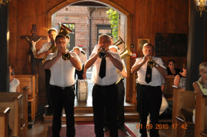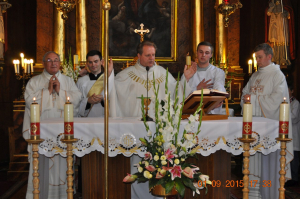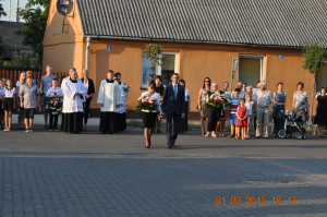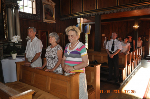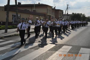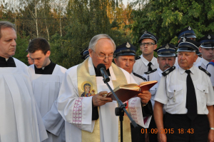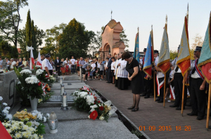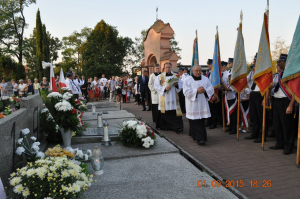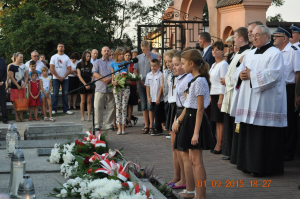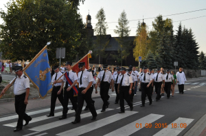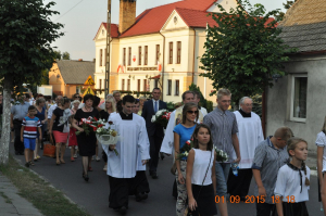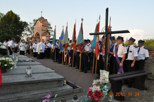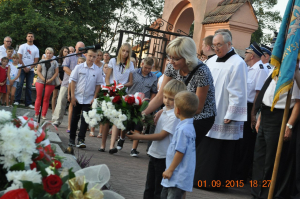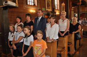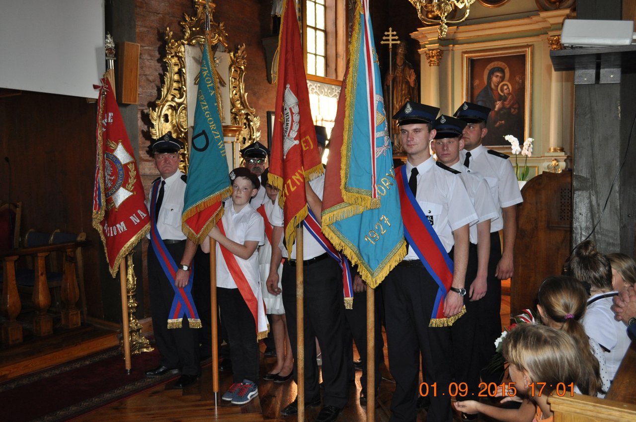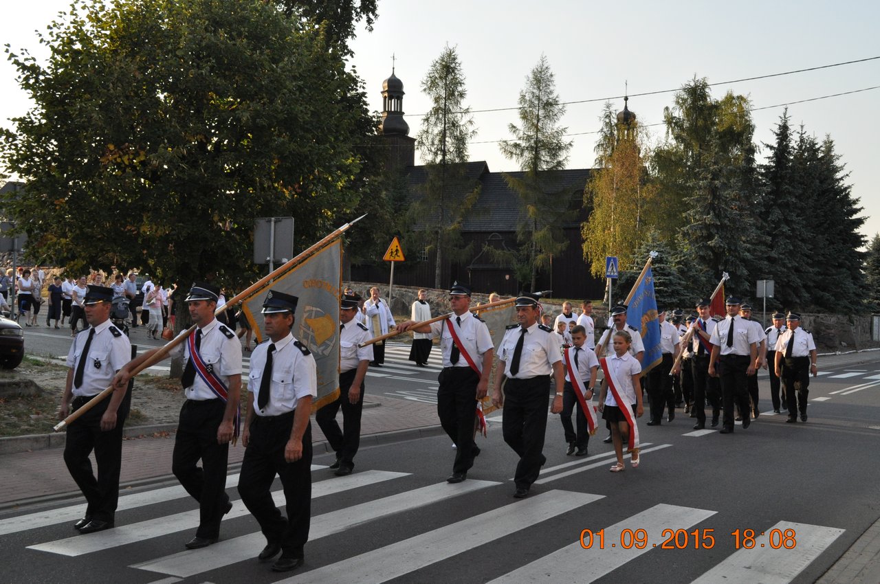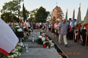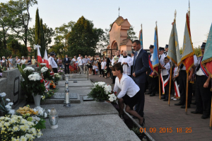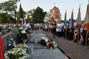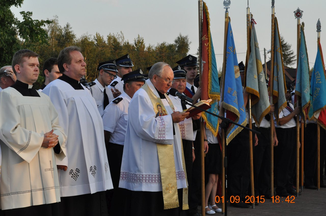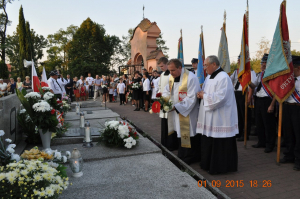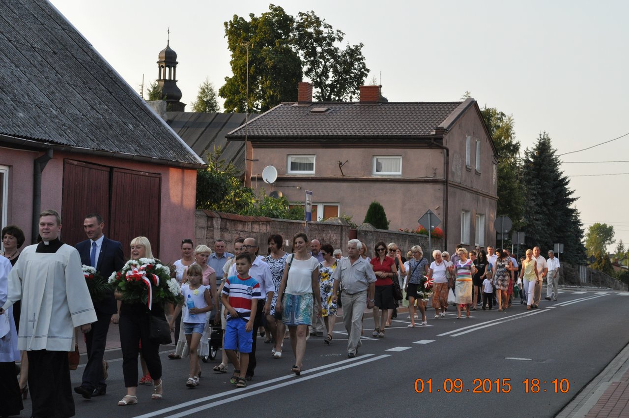 Po zbiórce przed Domem Strażaka władze gminy, poczty sztandarowe, delegacje jednostek OSP, placówek oświatowych i mieszkańcy gminy na czele z orkiestrą dętą udali się do kościoła parafialnego. Mszę św. w intencji poległych w obronie naszej ojczyzny odprawili kapłani Krzysztof Pietryga, Michał Pietrzak i Maciej Adamski. W liturgii uczestniczyli również diakon Sebastian oraz klerycy Sylwester i Bartłomiej. - 76 lat temu ludzie przeżywali tragedię, brali na siebie cios zadany w polskie serce. Nawet najmłodsze dziecko tutaj obecne wie jaką rocznicę obchodzimy. Dziś z wielką miłością pochylamy się nad grobami tych, którzy wyszli w 1939 r. bronić polskich miast i wsi. Dziękujemy, że możemy się modlić nad ich grobami o pokój na świecie, bo czegóż więcej nam trzeba. Tego pokoju i współpracy między narodami potrzeba dzisiaj światu - powiedział w kazaniu ks. proboszcz Krzysztof Pietryga.
