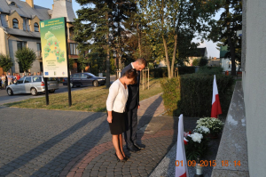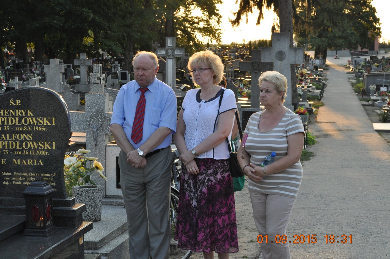 Po nabożeństwie przemaszerowano przed tablicę na budynku Urzędu Gminy upamiętniającą mieszkańców Grzegorzewa i okolic poległych podczas wojny. Wiązankę biało-czerwonych kwiatów złożyli pani wójt Bożena Dominiak i przewodniczący rady gminy Waldemar Banasiak. Następnie udano się na cmentarz parafialny, gdzie na zbiorowej mogile ofiar nalotu hitlerowskiego lotnictwa na Chojny złożono wiązanki kwiatów. Pani wójt odczytała apel poległych, w którym oddano hołd mieszkańcom gminy poległym we wrześniu 1939 r., pomordowanym w Katyniu, walczącym w podziemiu zbrojnym z hitlerowskim okupantem, zamęczonym kapłanom i Żołnierzom Wyklętym. - 1 września gromadzimy się na naszym cmentarzu, aby oddać hołd tym, którzy poświęcili dobro najwyższe - swoje życie. Ważne jest, że jesteśmy i pamiętamy. Ta pamięć trwa. Przecież każda polska rodzina doświadczyła nie tylko heroizmu walki, ale i brutalności, prześladowań oraz masowych zbrodni okupantów. Dlatego wszyscy powinniśmy zatrzymać się i w zadumie wspomnieć tych, którzy walczyli i ginęli, abyśmy mogli dziś żyć w wolnym kraju. Ważna jest pamięć o drodze, którą musiała przejść Polska, aby stać się krajem niepodległym i suwerennym - mówiła w swoim wystąpieniu pani wójt. Odmówiono modlitwę w intencji ofiar wojny.