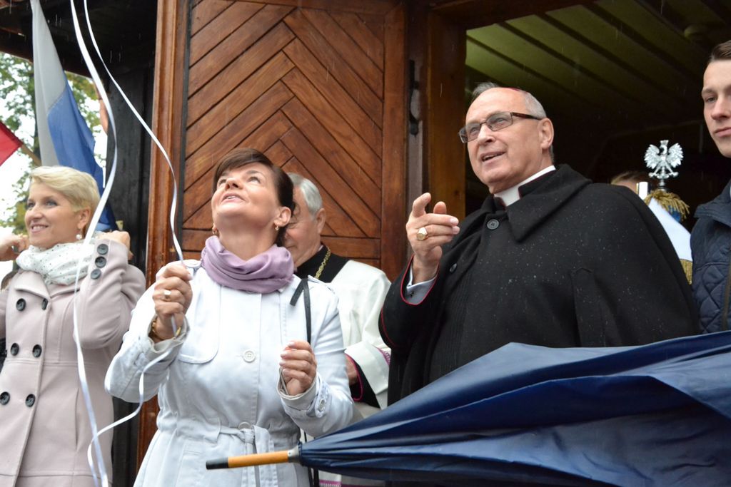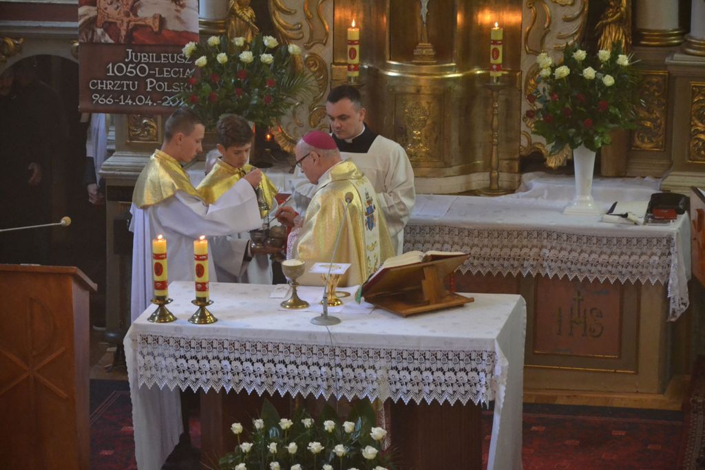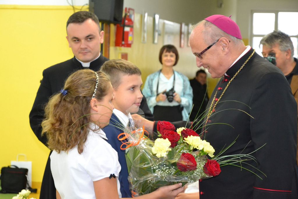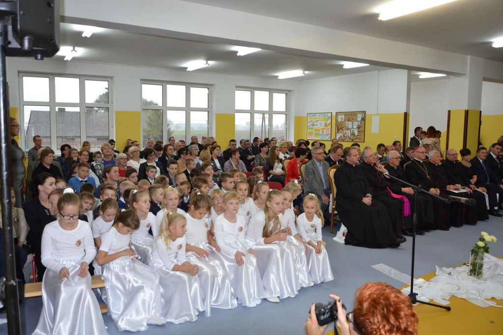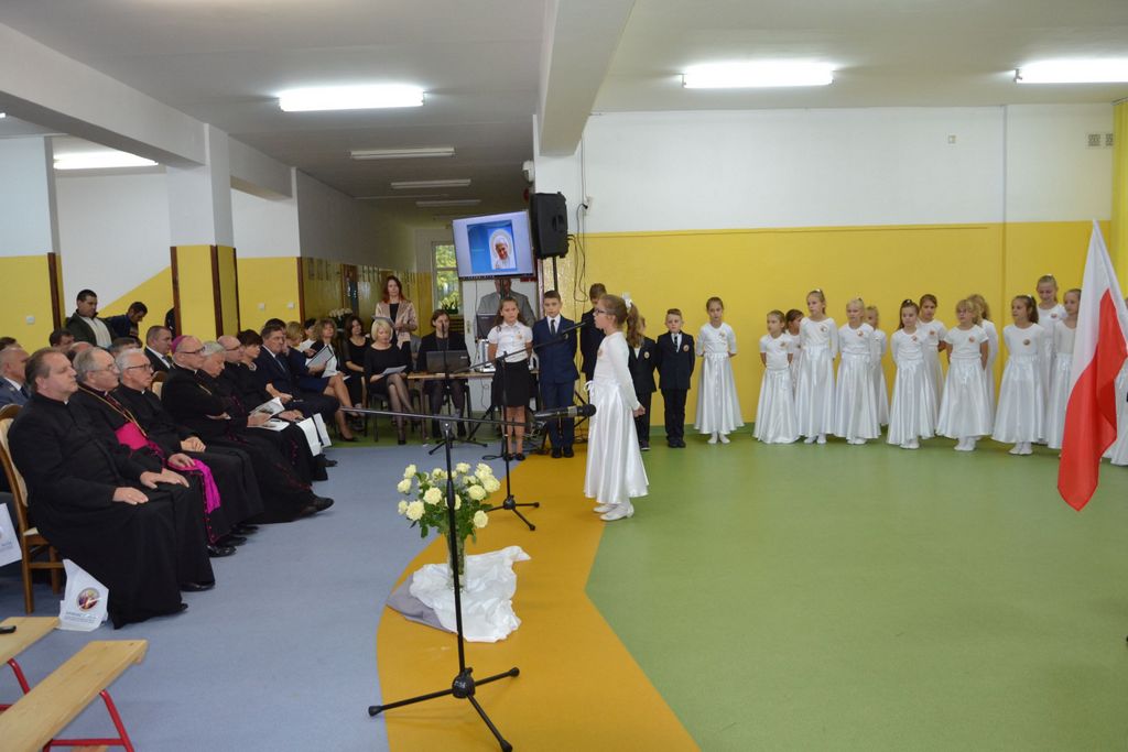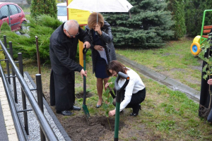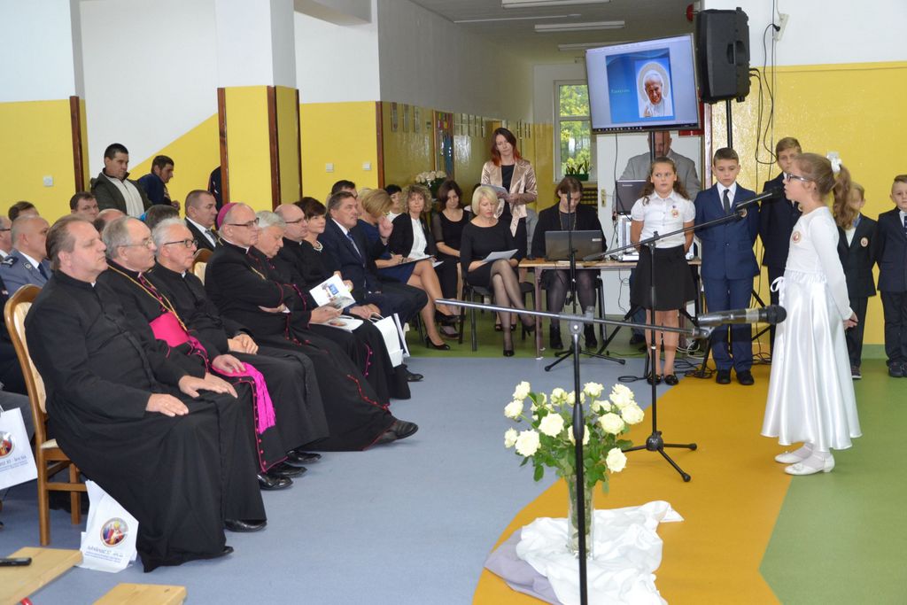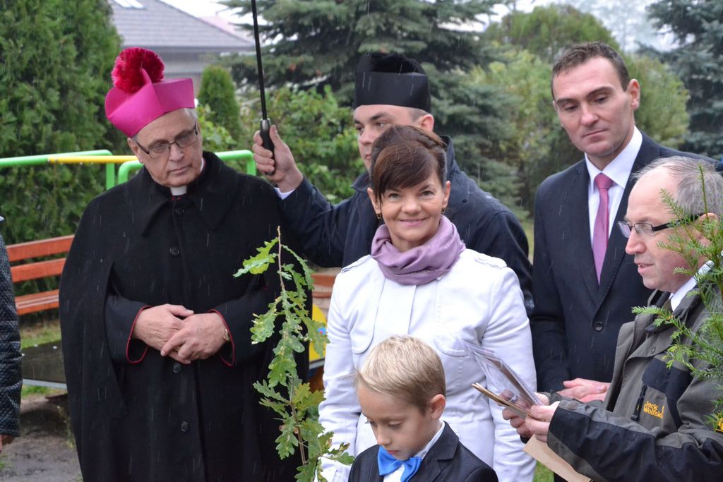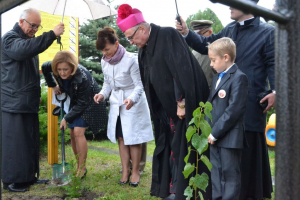 Po uroczystej Mszy ÅšwiÄ™tej wypuszczono w niebo balony, w których znajdowaÅ‚y siÄ™ przesÅ‚ania Ojca ÅšwiÄ™tego Jana PawÅ‚a II. Dalszy ciÄ…g uroczystoÅ›ci miaÅ‚ miejsce w budynku szkoÅ‚y. Na pamiÄ…tkÄ™ chrztu Polski i jubileuszu zasadzono drzewa z udziaÅ‚em KsiÄ™dza Biskupa WiesÅ‚awa Alojzego Meringa, przedstawicieli wÅ‚adz samorzÄ…dowych na czele z PaniÄ… Wójt BożenÄ… Dominiak oraz spoÅ‚ecznoÅ›ci szkolnej. Zaproszeni na uroczystość goÅ›cie mieli okazjÄ™ obejrzeć dwie wystawy. Jedna z nich byÅ‚a poÅ›wiÄ™cona naszemu Patronowi, a druga zatytuÅ‚owana „ 10 lat minęło …” upamiÄ™tniaÅ‚a najważniejsze wydarzenia z życia szkoÅ‚y w ciÄ…gu ostatniej dekady. Przygotowani pod kierunkiem nauczycieli uczniowie zaprezentowali część artystycznÄ…. MÅ‚odzi artyÅ›ci uczcili pamięć o Papieżu wierszami, piosenkami i taÅ„cem, a z gÅ‚oÅ›ników popÅ‚ynÄ…Å‚ gÅ‚os Patrona z ważnymi przesÅ‚aniami skierowanymi do mÅ‚odzieży. WystÄ™p nagrodzono gromkimi brawami, po czym zebrani goÅ›cie przekazali na rÄ™ce dyrekcji szkoÅ‚y Pani Iwony ZiÄ™tek gratulacje i serdeczne życzenia.