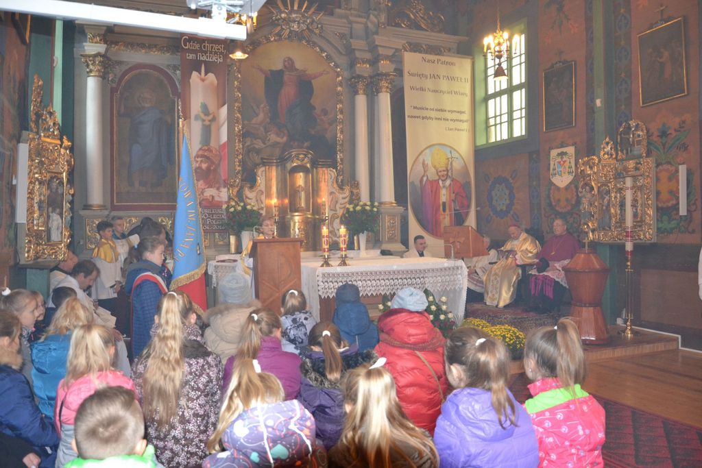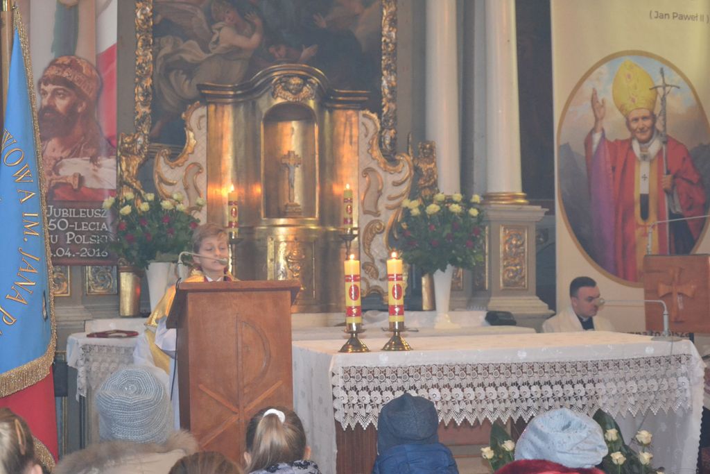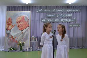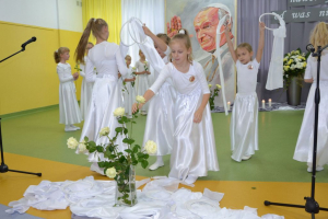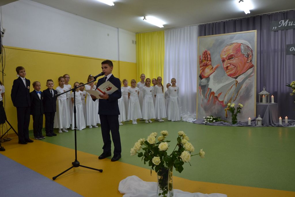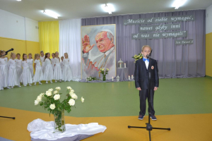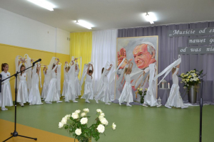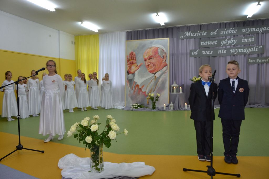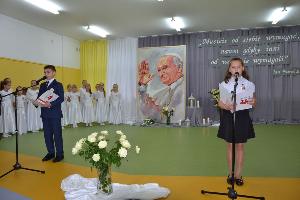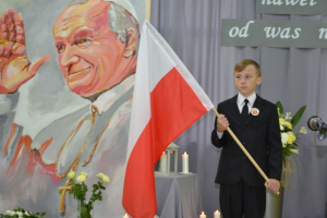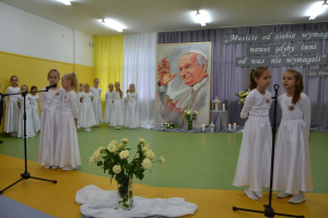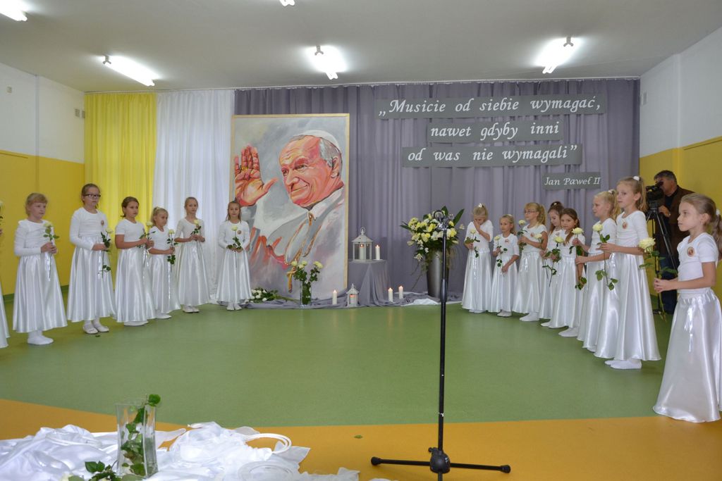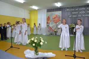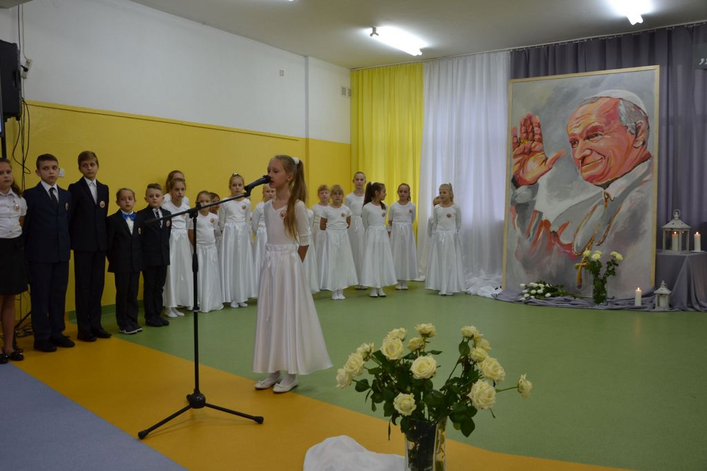 WażnÄ… częściÄ… nabożeÅ„stwa byÅ‚o odczytanie przez przedstawicieli szkoÅ‚y Aktu Zawierzenia Janowi PawÅ‚owi II : „ÅšwiÄ™ty Janie Pawle II, umacniaj nas na drodze realizacji Twojego przesÅ‚ania,Wspieraj nasze twórcze inicjatywy. BÄ…dź inspiracjÄ… do poszukiwania nowych zadaÅ„ i odpowiedziÄ… na pytania, które stawia przed nami życie. Ojcze ÅšwiÄ™ty natchnij nas siłą, abyÅ›my żyjÄ…c TwojÄ… naukÄ…, mogli przekazać Twoje dziedzictwo nastÄ™pnym pokoleniom.