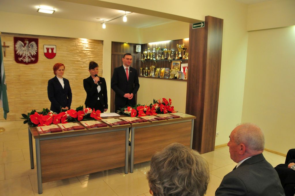 Uroczystego odznaczenia dokonała Wójt Gminy – Bożena Dominiak, Przewodniczący Rady Gminy – Waldemar Banasiak i Kierownik Urzędu Stanu Cywilnego – Anna Wawrzyniak.