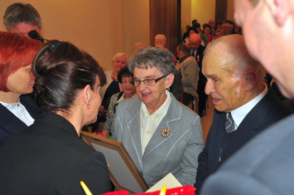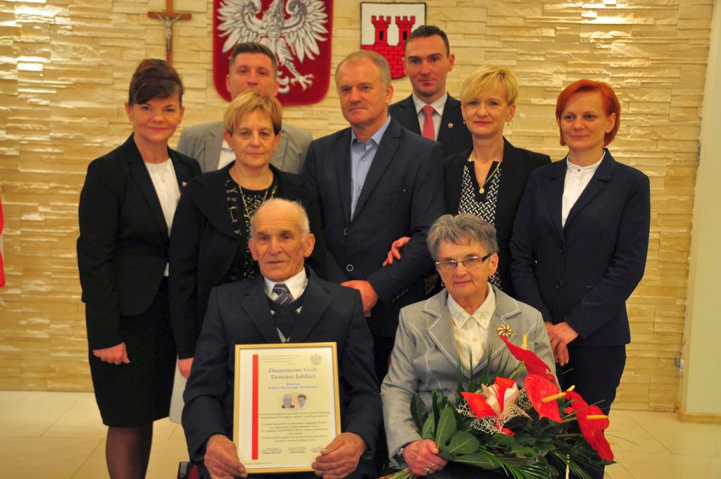 Podczas jubileuszu szczególne słowa uznania Pani Wójt skierowała do Państwa Marii i Feliksa małżonków Nuszkiewicz z Grzegorzewa, którzy 17 grudnia 2016 roku obchodzić będą 61. rocznicę ślubu. To dla nas wielki zaszczyt, że w naszej gminie jest para małżeńska, która przeżyła z sobą 61 lat.