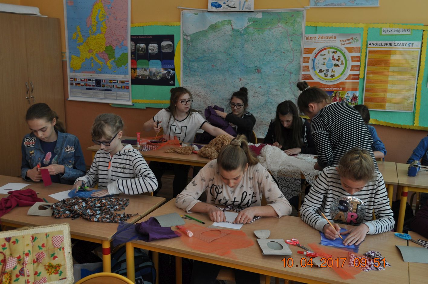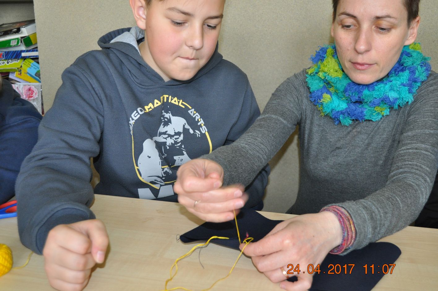 W pierwszym cyklu warsztatów 10 kwietnia 2017r. dzieci ze szkół podstawowych z terenu gminy Grzegorzew zapoznały się z technikami rękodzieła artystycznego. - Podczas zajęć dzieci projektowały użytkowe kolorowe ramki. Jak łatwo zrobić ozdobną ramkę do zdjęć, by w pięknej oprawie zatrzymać miłe wspomnienia? Trochę dobrej zabawy, kilka niepotrzebnych materiałów – i gotowe. Kolejne warsztaty odbyły się 24 kwietnia 2017 i obejmowały wykonanie woreczki, na co się chce. Opakowania foliowe są plagą naszych czasów. Z niepotrzebnych materiałów uszyjemy piękne ozdobne woreczki, w których możemy komuś podarować prezent, albo – przechowywać różne przedmioty: przybory szkolne, bieliznę. Można też trzymać w nich mydełka zapachowe i w tej sposób „ upachnić ” własną szafę.