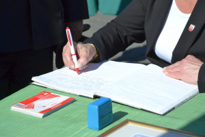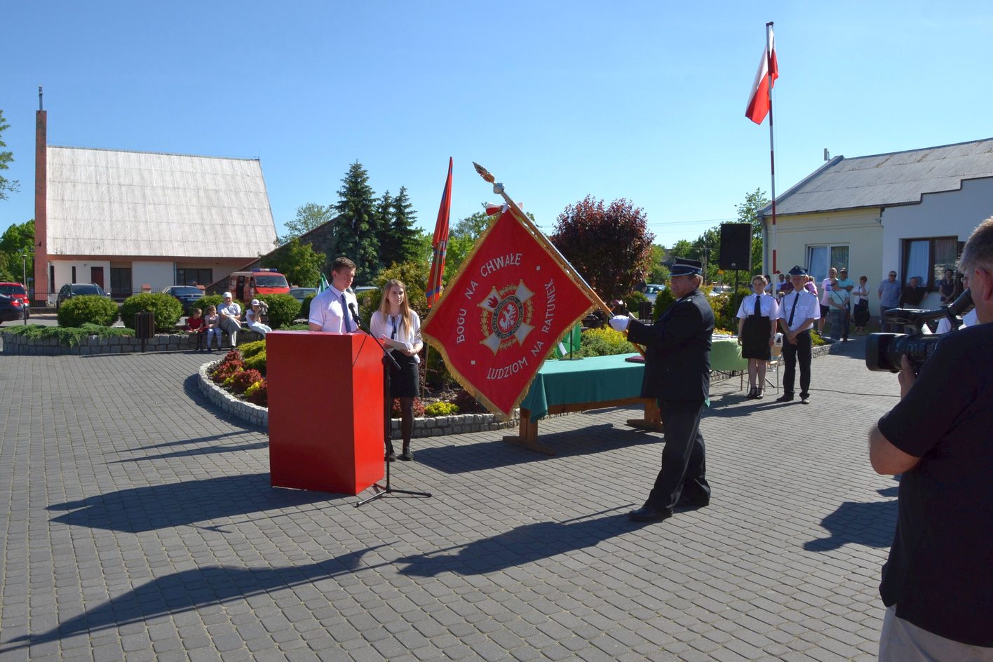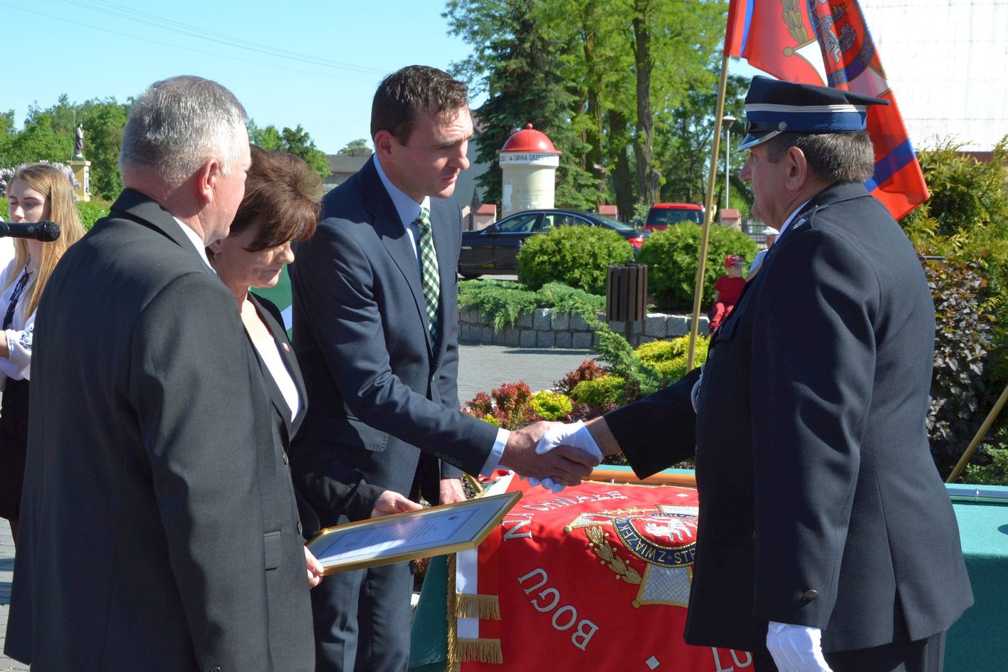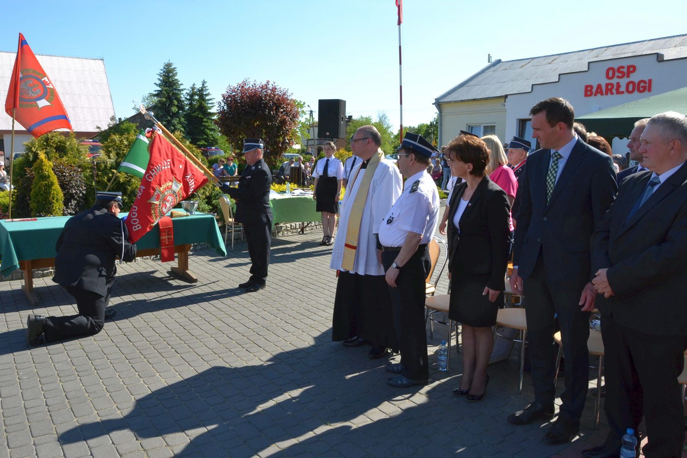 Sztandar zostaÅ‚ ufundowany przez SamorzÄ…d Gminy i spoÅ‚eczeÅ„stwo. Akt ufundowania sztandaru w 85-lecie powstania Jednostki Ochotniczej Straży Pożarnej w BarÅ‚ogach odczytaÅ‚a i wrÄ™czyÅ‚a Bożena Dominiak Wójt Gminy w Grzegorzewie wraz z przewodniczÄ…cym rady Waldemarem Banasiakiem i przedstawicielem spoÅ‚eczeÅ„stwa Henrykiem PowietrzyÅ„skim.