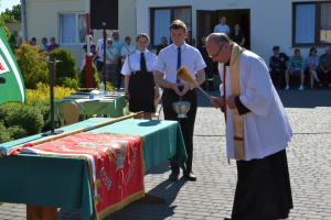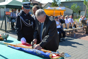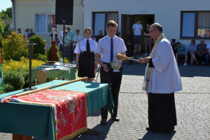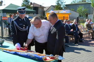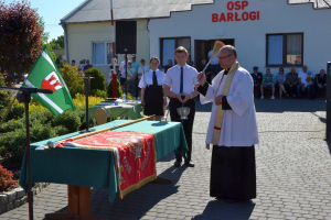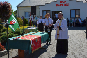 Dalsze uroczystoÅ›ci odbywaÅ‚y siÄ™ na placu przed budynkiem OSP. Stary Sztandar pożegnali najstarsi druhowie z Jednostki Ochotniczej Straży Pożarnej w BarÅ‚ogach: Marian Urbaniak, BolesÅ‚aw KwaÅ›ny, Józef Zygmunt. Sztandar bÄ™dzie przechowywany w izbie pamiÄ™ci w miejscowej jednostce. PoÅ›wiÄ™cenia nowego sztandaru dokonaÅ‚ kapelan strażaków ks.Wojciech Szczepankiewicz.