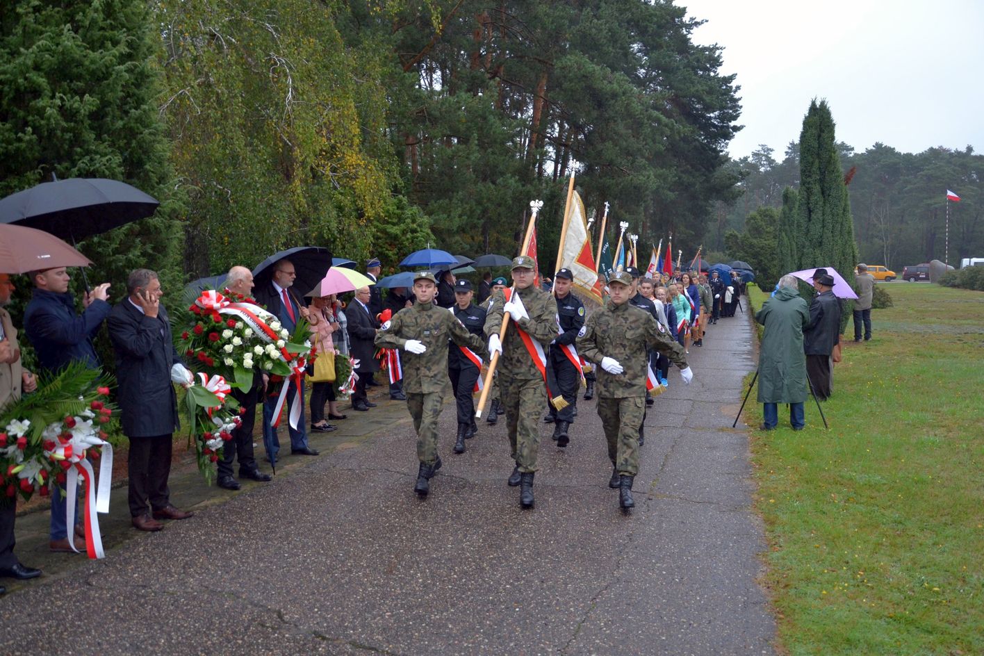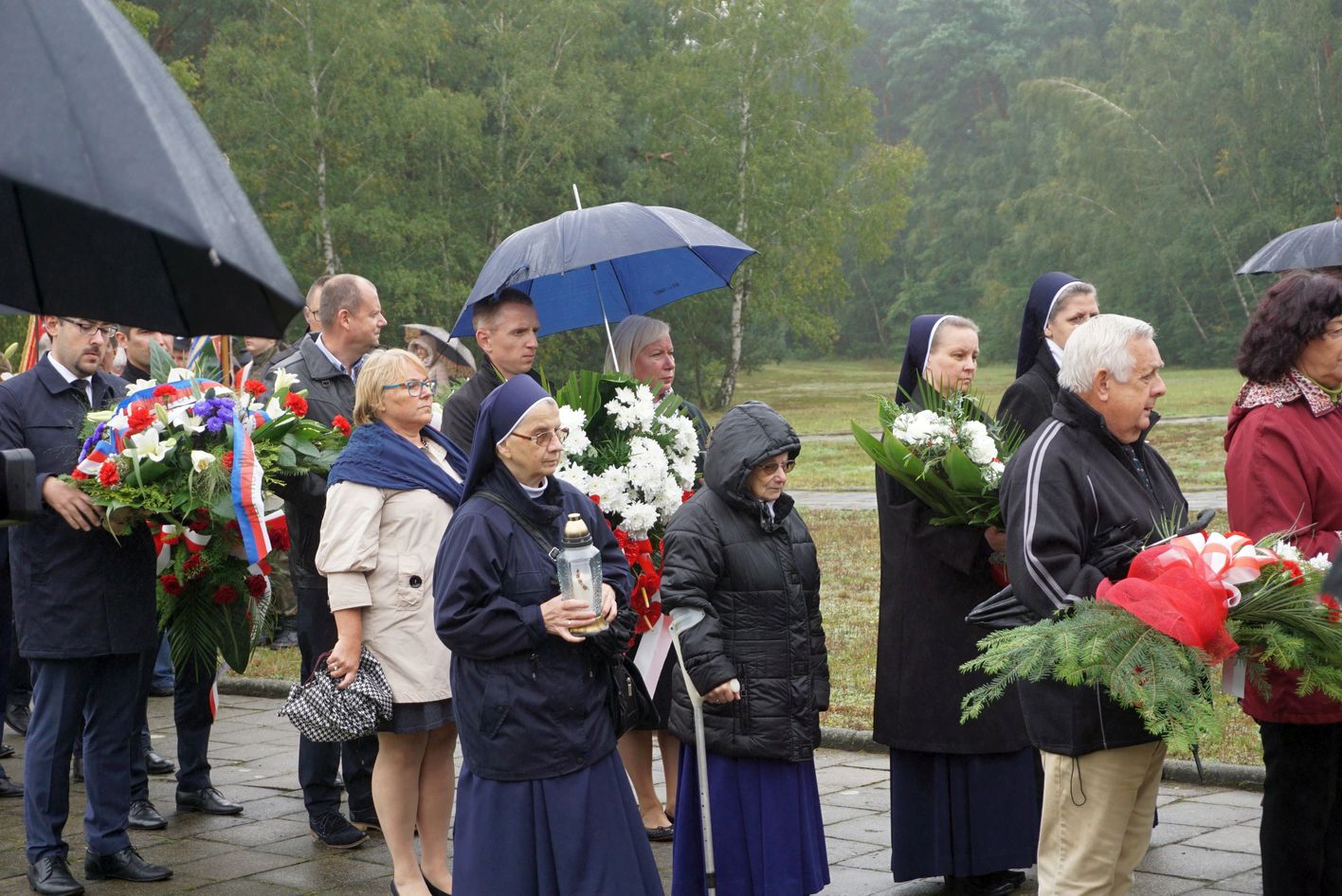 Obchody rozpoczęły się o godz. 12:00 pod pomnikiem z napisem ,,Pamiętamy”, upamiętniającym ofiary obozu gdzie obecni goście złożyli wieńce i kwiaty oraz zapalili znicze. Ze względu na padający deszcz uroczysta Msza Święta odbyła się w Kościele Parafialnym pw. Narodzenia Najświętszej Maryi Panny w Chełmnie. Nabożeństwu przewodniczył ks. Biskup Wiesław Alojzy Mering. Wszystkich zebranych powitał ks. proboszcz Grzegorz Grochowski.
