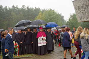 Homilię wygłosił ks. prał. Michał Pietrzak, który podkreślił znaczenie kształtowania narodowej tożsamości ,,Pamięć i tożsamość, bo pamięć to znaczy być sobą”-mówił ks. prałat. Wicepremier Minister Kultury prof. Piotr Gliński w liście do obecnych napisał ,,składamy hołd tysiącom ofiar tych nieludzkich zbrodni, których niemy krzyk do dziś słychać wśród szumu drzew posadzonych na ich mogiłach i rozrzuconych prochach”.