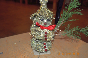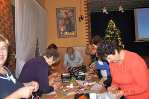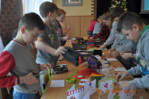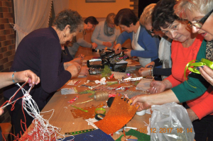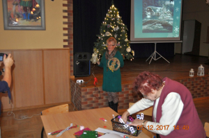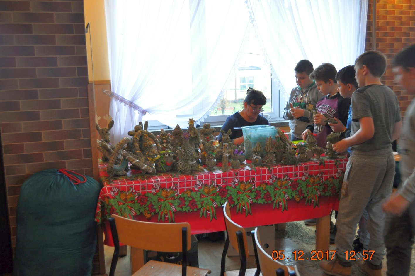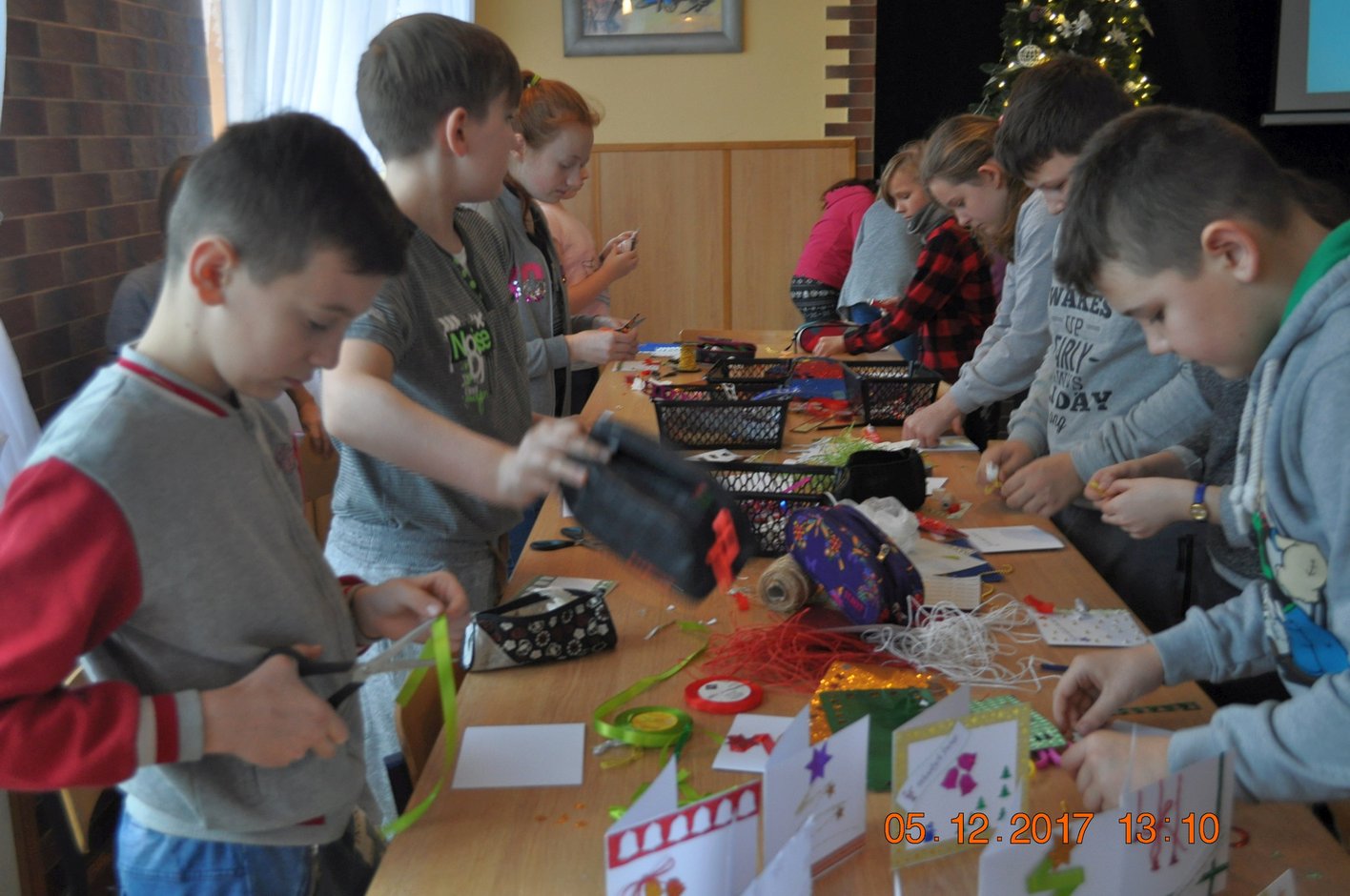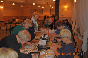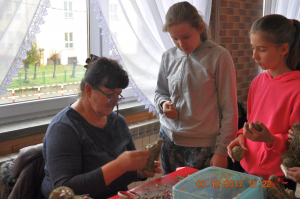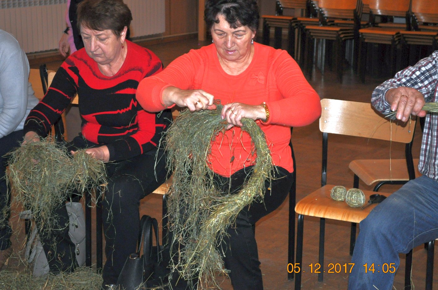 Zarówno dzieci jak i Seniorki z ogromnym zapaÅ‚em i zainteresowaniem zwijali kule z siana a nastÄ™pnie owijali je nićmi. Na naszych oczach powstawaÅ‚y przepiÄ™kne ozdoby Å›wiÄ…teczne anioÅ‚ki, baÅ‚wanki, choinki i inne ozdoby.