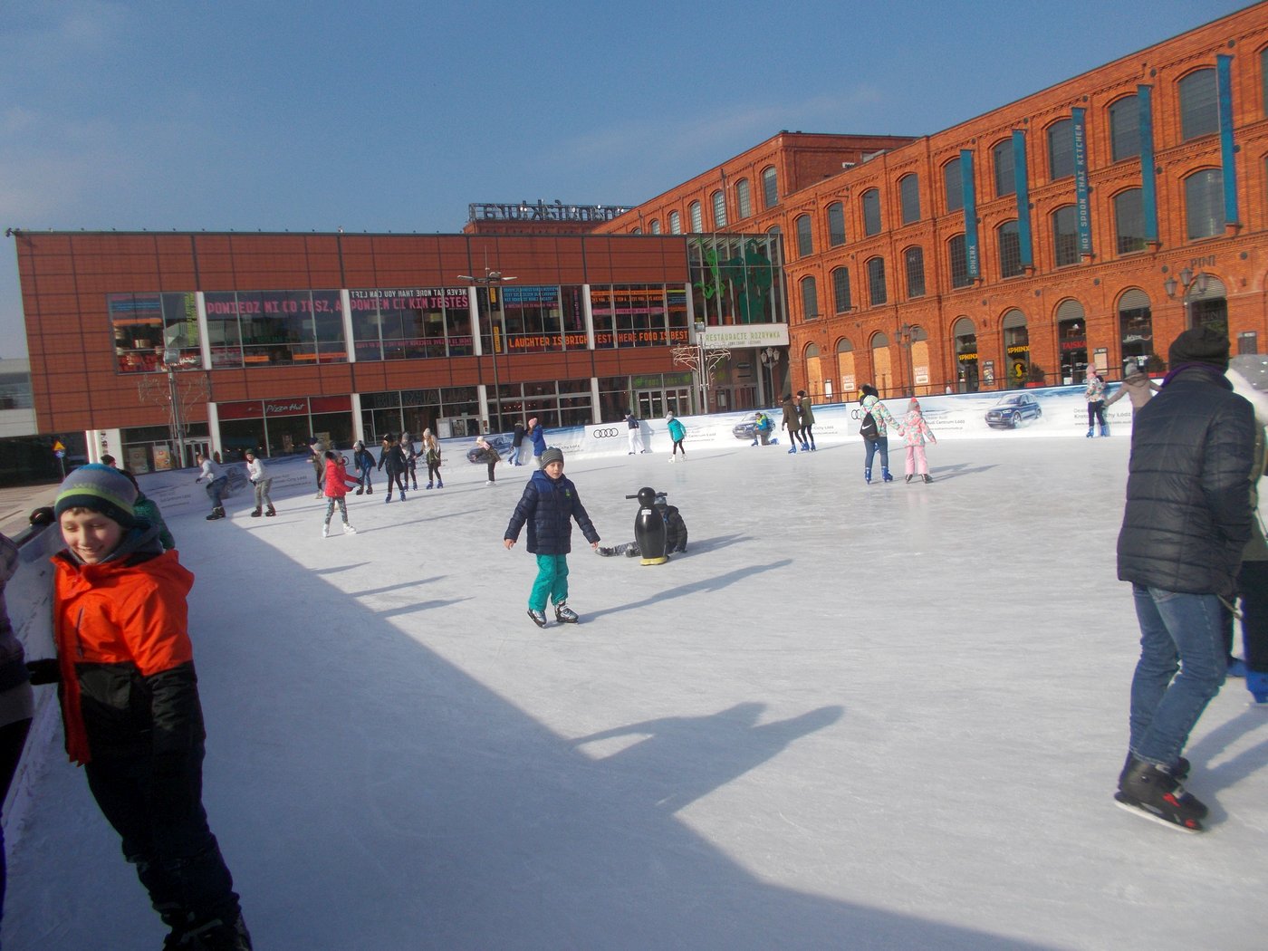Wycieczka rozpoczęła się od pobytu na lodowisku ,,Manufaktura”. Mając do dyspozycji całe lodowisko mogliśmy obserwować wzloty i upadki nowicjuszy i zaawansowanych łyżwiarzy. Niektórzy wjeżdżali na taflę odważnie, a inni robili to trzymając się bandy, żeby mieć się, czego chwycić w najgorszym momencie. Mimo bolących kolan i kostek zabawa była niepowtarzalna. Zawsze towarzyszył wszystkim uśmiech. Zabawa na lodowisku zachęciła nas do aktywnego spędzania wolnego czasu.
