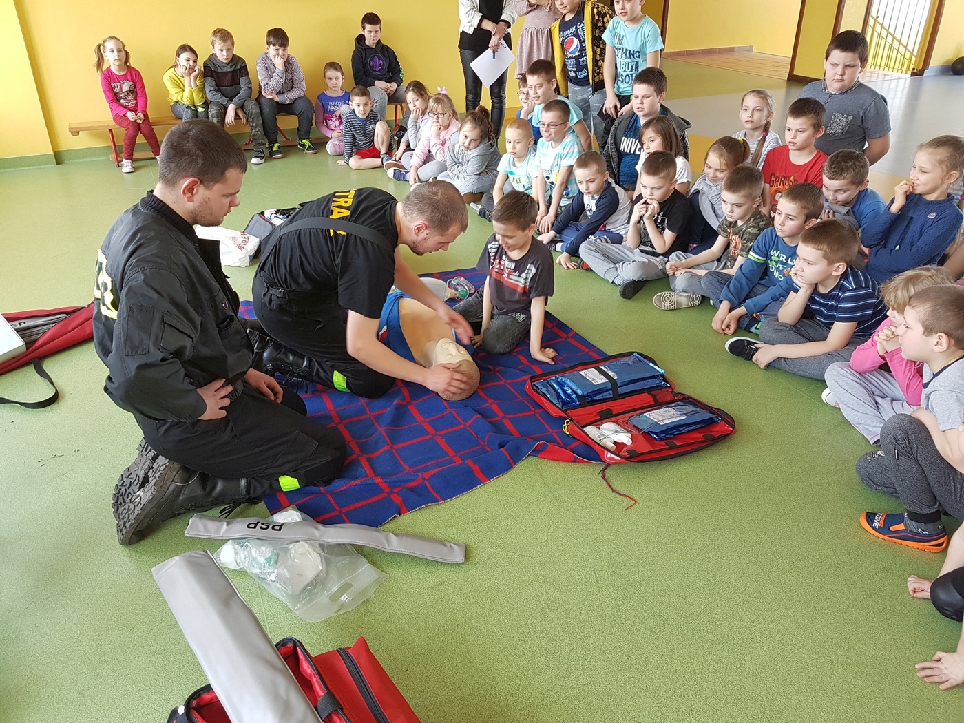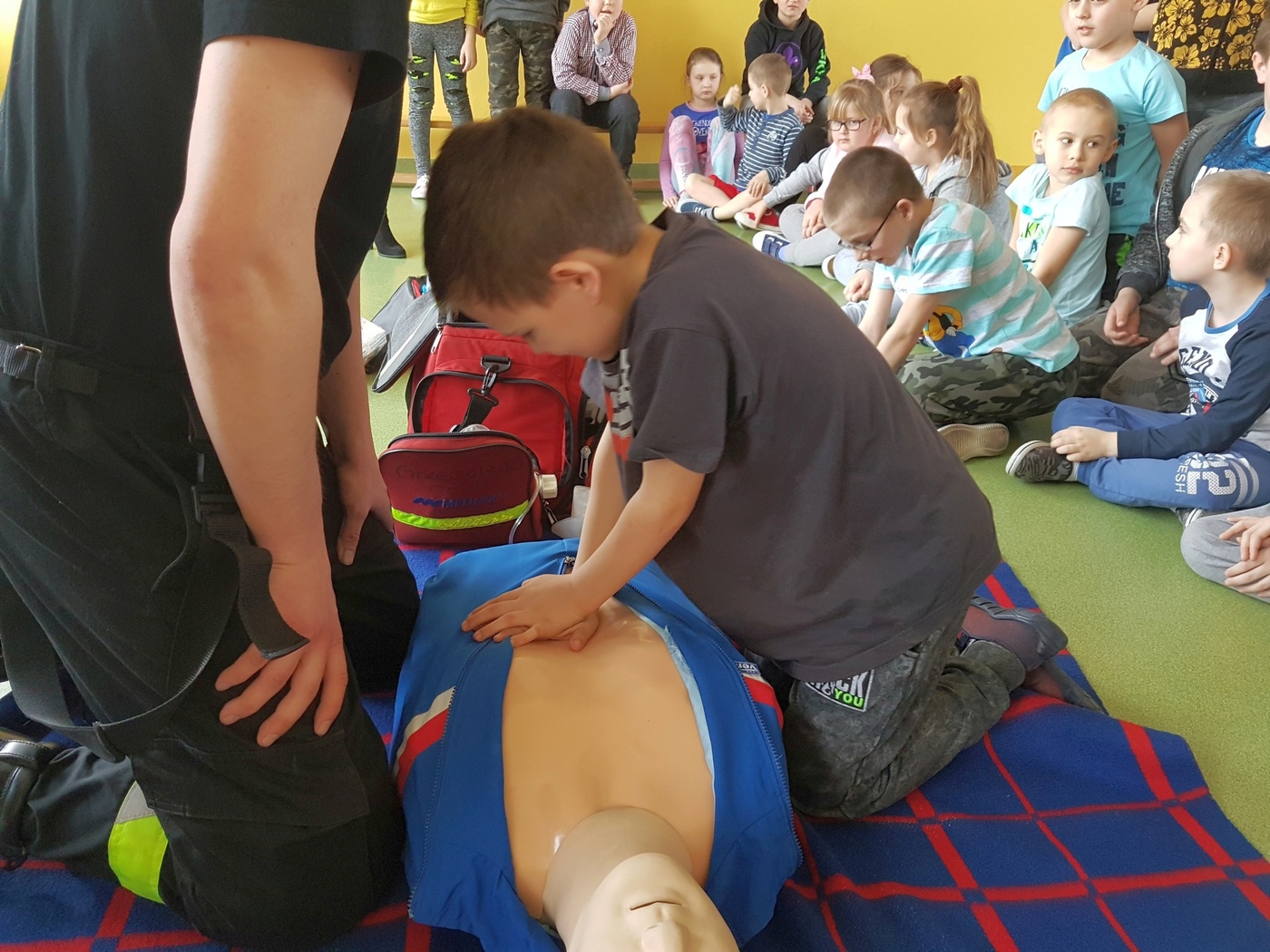 Praktyczne pokazy udzielenia pierwszej pomocy cieszyÅ‚y siÄ™ ogromnym zainteresowaniem wÅ›ród najmÅ‚odszych.Â