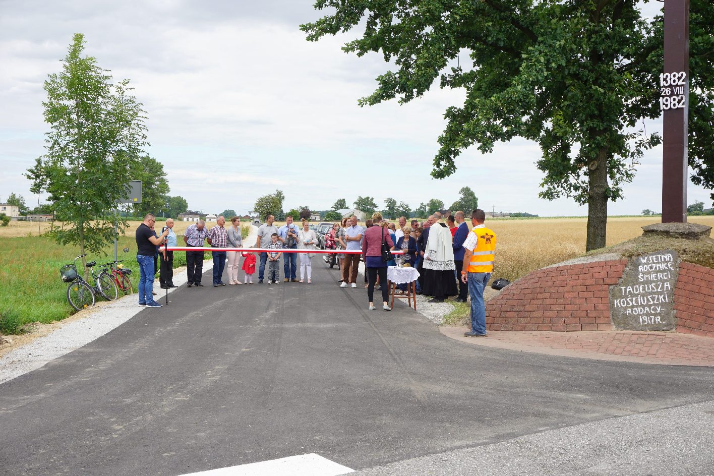 Uroczystość odbyÅ‚a siÄ™ tuż obok wyjÄ…tkowego i patriotycznego miejsca w BorysÅ‚awicach KoÅ›cielnych – Kopca ku czci Tadeusza KoÅ›ciuszki, gdzie przedstawiciele wÅ‚adz gminy, Rady Gminy Grzegorzew, mieszkaÅ„cy i wykonawca oraz ksiÄ…dz dokonali otwarcia drogi przecinajÄ…c biaÅ‚o-czerwonÄ… wstÄ™gÄ™, którÄ… Pani Wójt pocięła na mniejsze kawaÅ‚ki, by po wpisaniu na nie daty byÅ‚y pamiÄ…tkÄ… tego wyjÄ…tkowego wydarzenia.