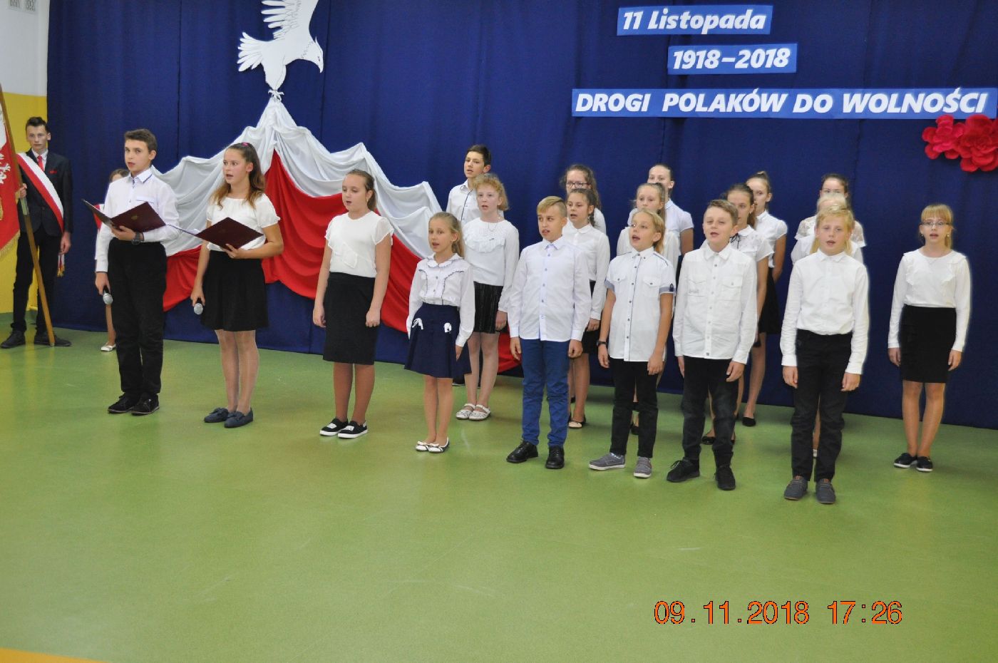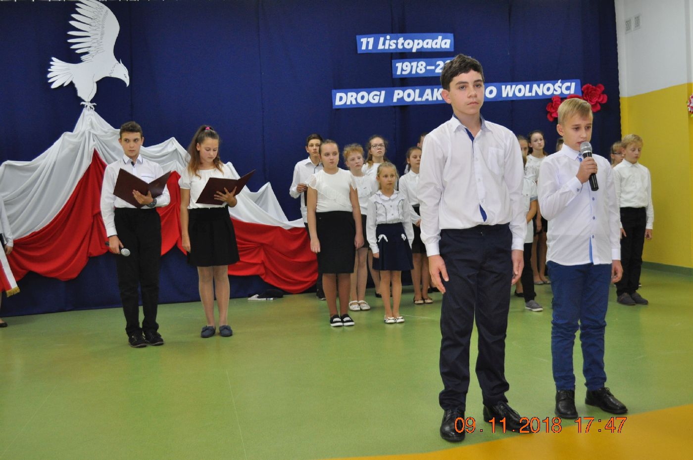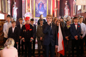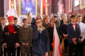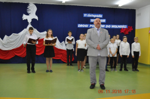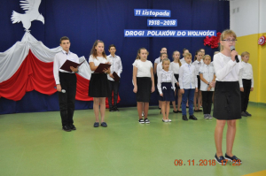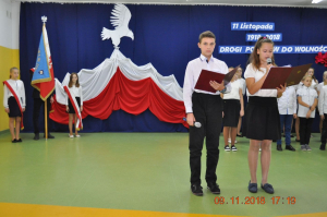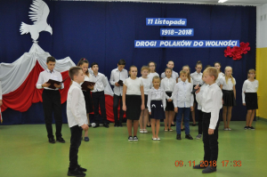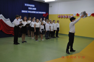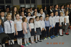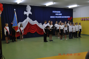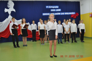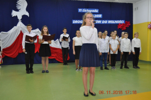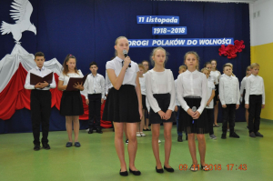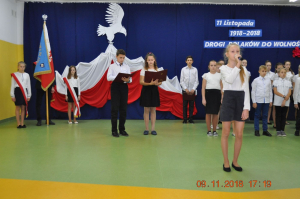 Z okazji wielkiego jubileuszu uczniowie wszystkich Szkół Podstawowych z naszej gminy przygotowali wzruszające montaże słowno-muzyczne aby uroczyście przeżyć nasze wielkie święto wolności.