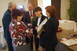 Nie wszystkie pary mogły przybyć na uroczystość. Pani Wójt razem z Przewodniczącym Rady Gminy oraz Kierownikiem Urzędu Stanu Cywilnego udali się do Państwa Heleny i Władysława małż. Jujka, którzy ze względów zdrowotnych nie mogli przybyć na uroczystość.