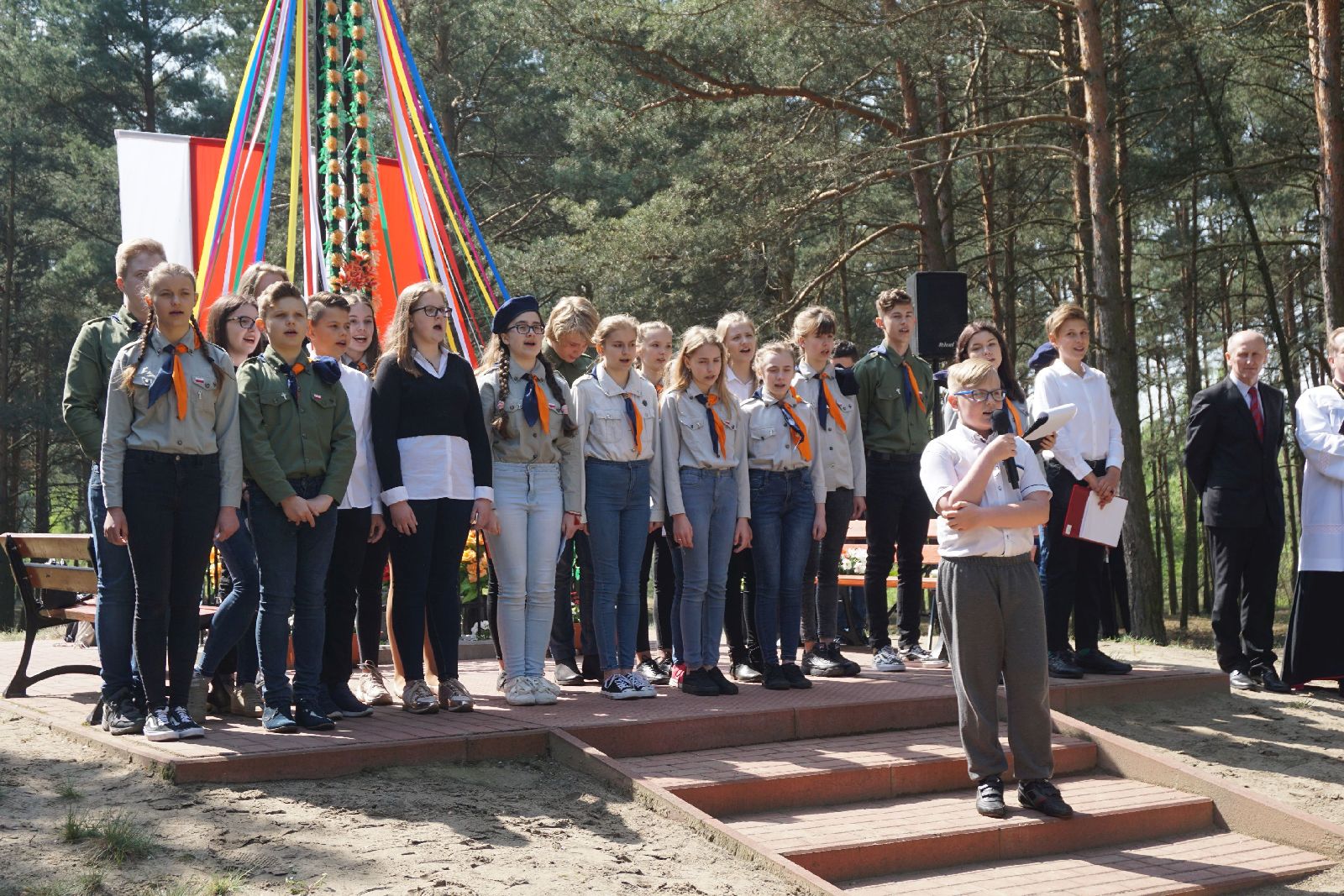 We wtorek, 30 kwietnia, uczniowie Zespołu Szkolno-Przedszkolnego w Grzegorzewie, przy krzyżu na ulicy Piaski, upamiętniającym to ważne, historyczne wydarzenie, zaprezentowali montaż słowno-muzyczny z okazji 228 rocznicy uchwalenia Konstytucji 3 Maja.
