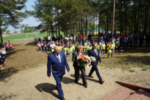 W uroczystości uczestniczyli: Wójt Gminy Grzegorzew- pani Bożena Dominiak. Przewodniczący Rady Gminy, Radni z Grzegorzewa, ksiądz kanonik Krzysztof Pietryga- proboszcz parafii Grzegorzew, Rada Sołecka Grzegorzewa na czele z sołtysem – Henrykiem Żurawikiem, Poczty Sztandarowe: Klubu Sportowego ,,Orzeł” Grzegorzew, Ochotniczej Straży Pożarnej w Grzegorzewie i Szkoły Podstawowej w Grzegorzewie, społeczność Zespołu Szkolno-Przedszkolnego oraz mieszkańcy ulicy Piaski opiekujący się tym szczególnym miejscem.