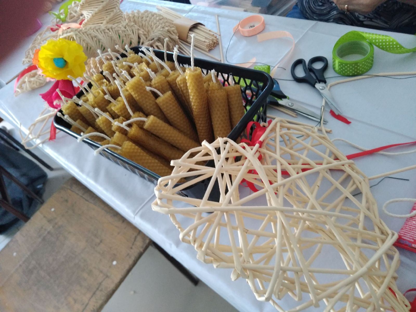 11 maja 2019r. Biblioteka w Grzegorzewie z okazji "Tygodnia Bibliotek" zorganizowała warsztaty z wyplatania z wikliny papierowej oraz warsztaty robienia świec z węzy pszczelarskiej w Hali Sportowej w Grzegorzewie.