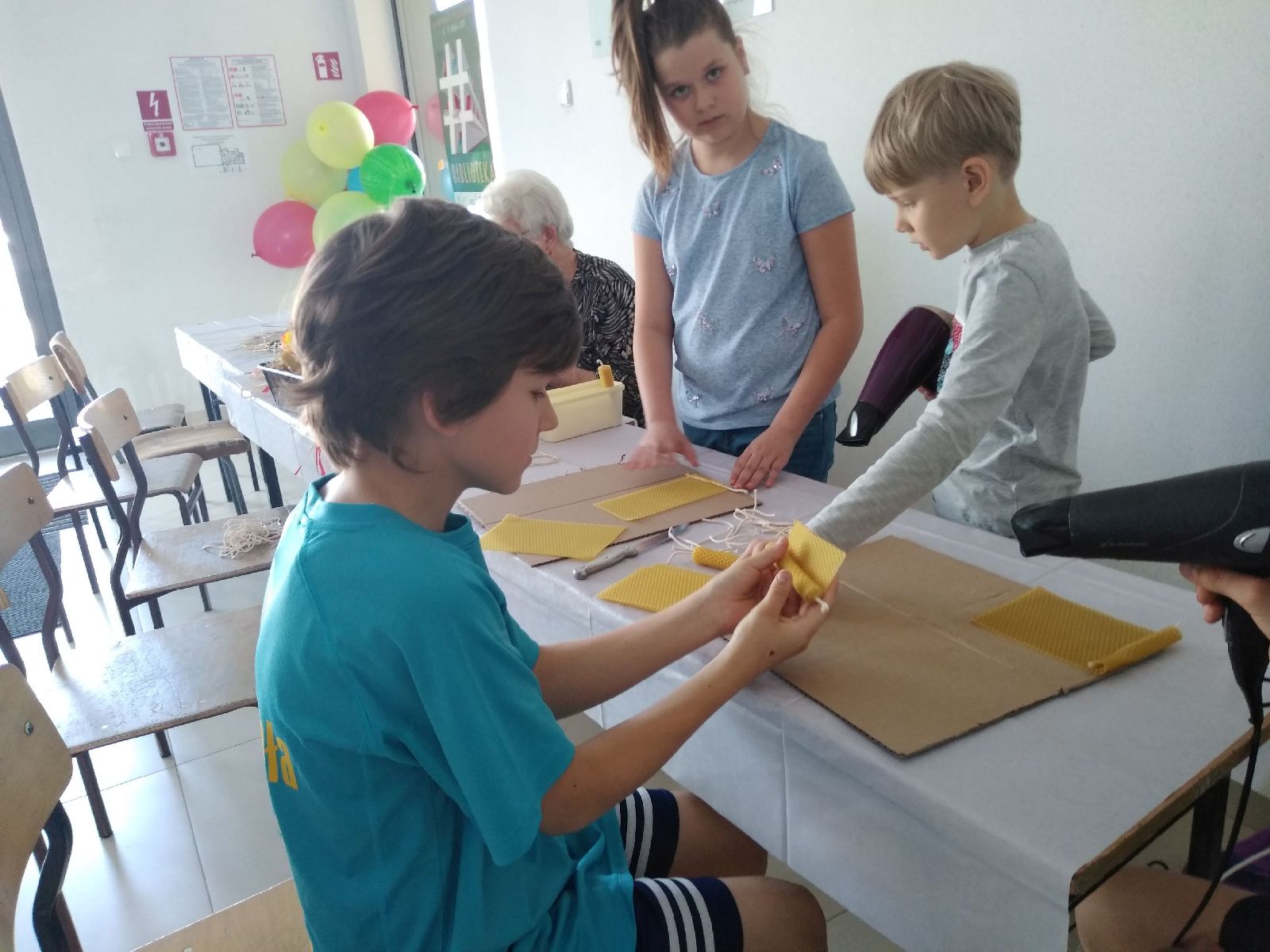 Również tego dnia odbyÅ‚y siÄ™ warsztaty robienia Å›wiec z wÄ™zy pszczelarskiej, które poprowadziÅ‚a pani Agnieszka Malesza –Dyrektor Biblioteki.