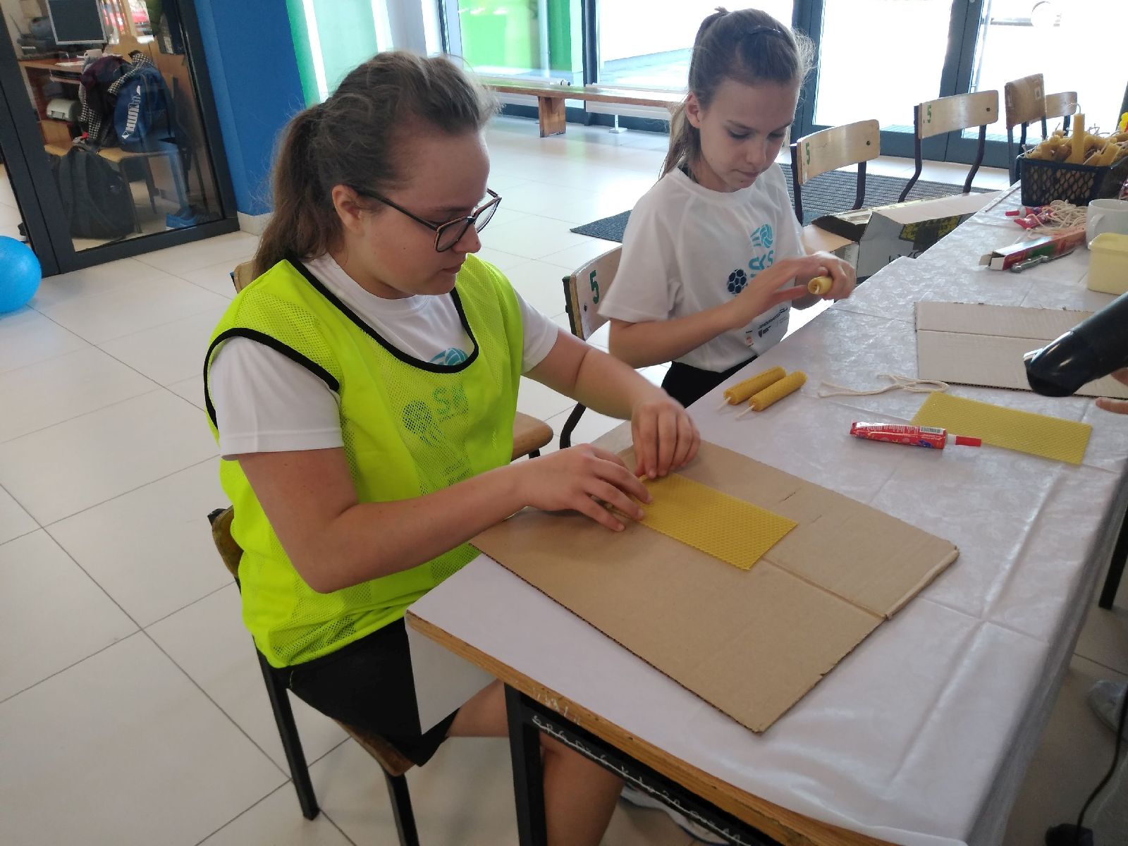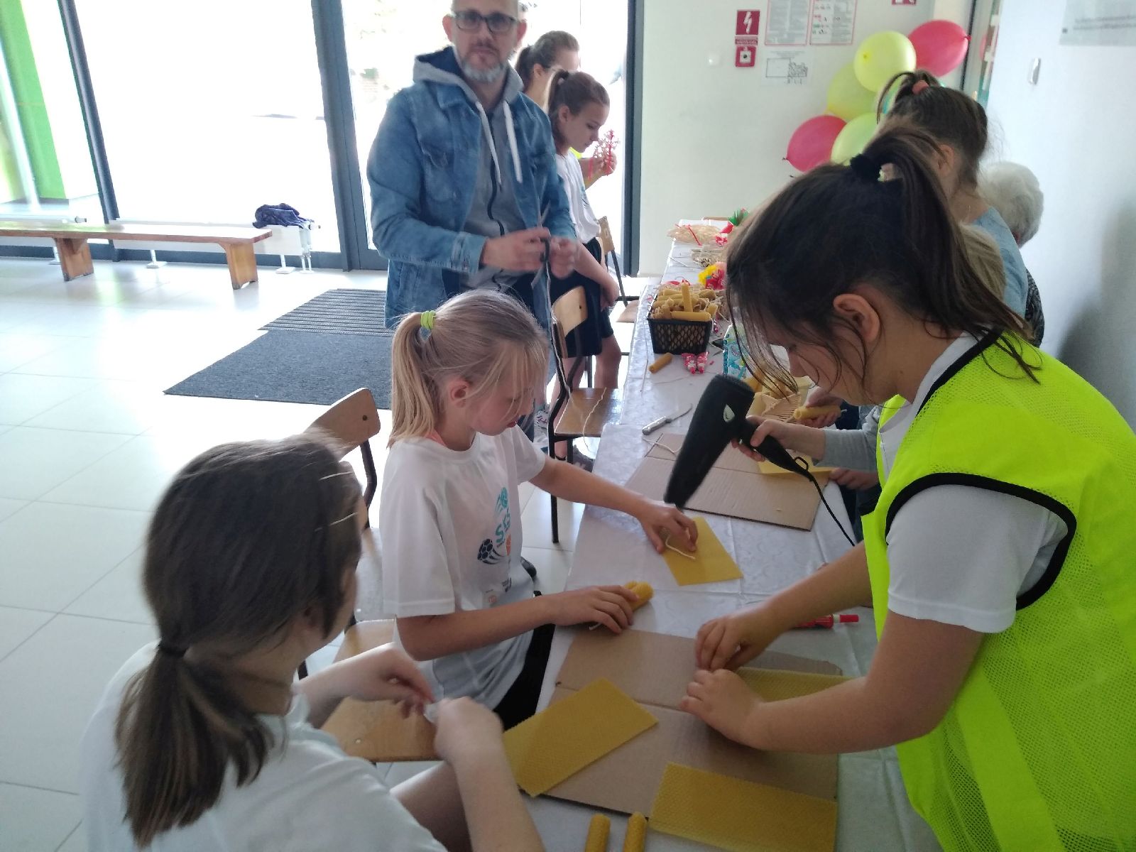 Każdy z uczestników warsztatów otrzymaÅ‚ zestaw do robienia Å›wiec : plaster wÄ™zy pszczelarskiej oraz knot baweÅ‚niany. Gdy już wszystko mieliÅ›my, zabraliÅ›my siÄ™ do pracy i zaczÄ™liÅ›my zwijać Å›wiecÄ™. Plaster z wÄ™zy pszczelarskiej delikatnie podgrzaliÅ›my i całą dÅ‚oniÄ… zaczÄ™liÅ›my zwijać Å›wiece. I tak Å›wiece byÅ‚y już gotowe . A na korytarzu Hali Sportowej w Grzegorzewie czuć byÅ‚o piÄ™kny zapach unoszÄ…cego siÄ™ naturalnego wosku pszczelego.