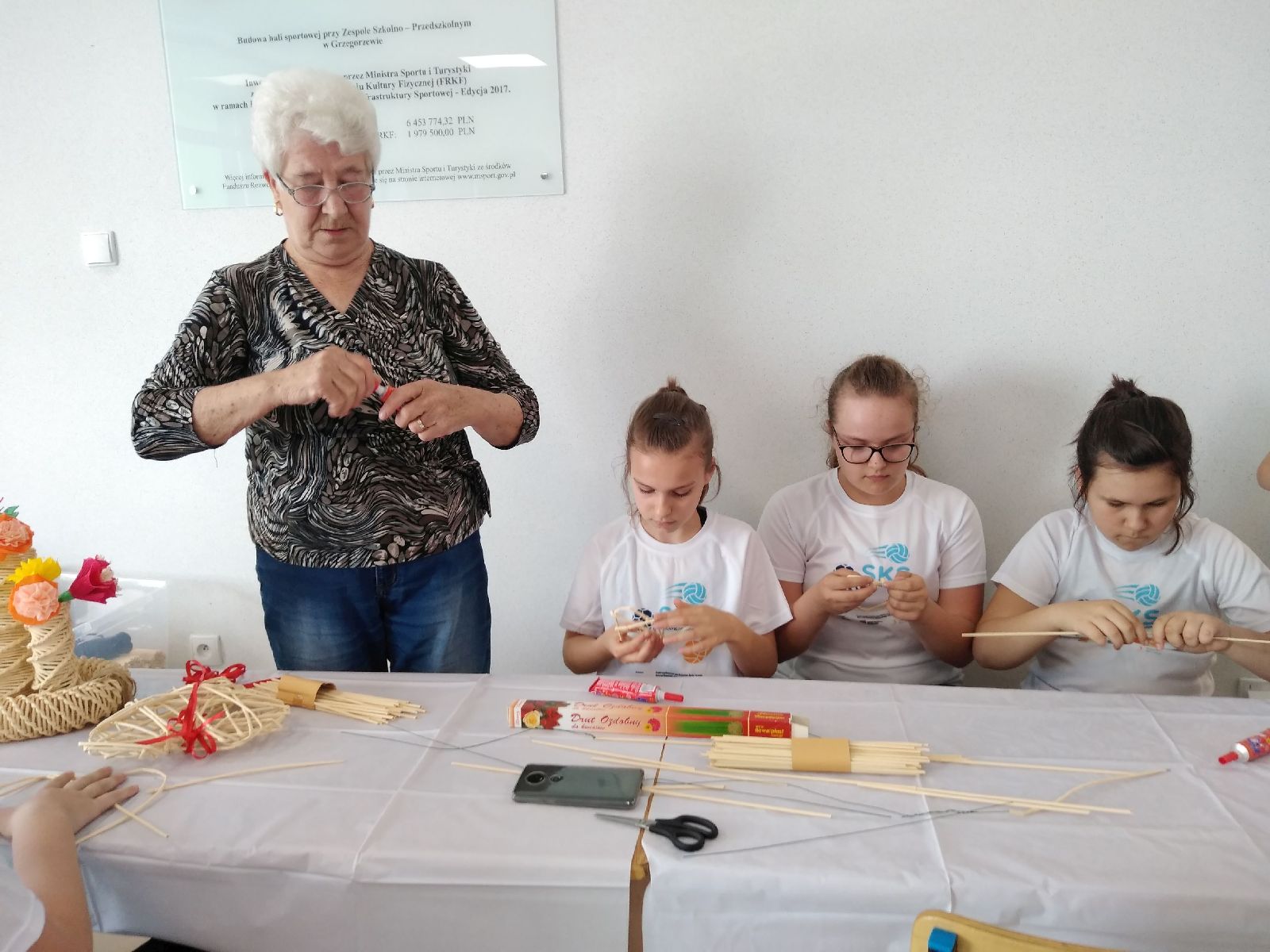 ZajÄ™cia z plecionkarstwa poprowadziÅ‚a doÅ›wiadczona ,,artystka lokalna’’ pani Stefania DorabiaÅ‚a, która wprowadziÅ‚a dzieci w Å›wiat wikliny papierowej i recyklingu .