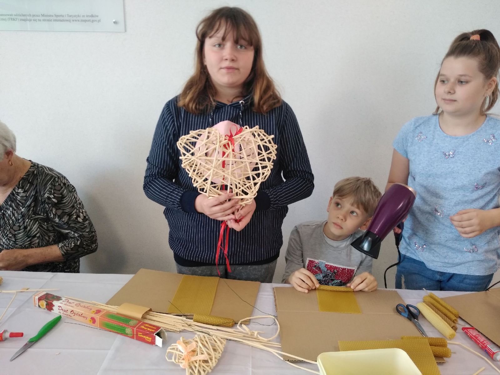 W trakcie warsztatów uczestnicy samodzielnie z skrÄ™conych papierowych rurek – tz.. tutek , plotÅ‚y serduszka. Dzieci z zapaÅ‚em podeszÅ‚y do zadania. Pierwsze próby zrobienia serduszka z wikliny papierowej wychodziÅ‚y nieco koÅ›lawo, ale tylko ćwiczenie czyni mistrza, wiÄ™c już druga próba daÅ‚a pożądany rezultat. I na naszych oczach powstaÅ‚y przepiÄ™kne serduszka z wikliny papierowej.