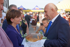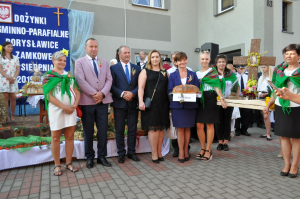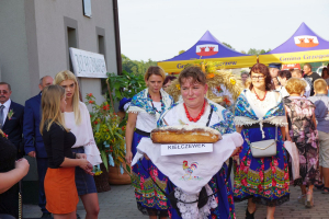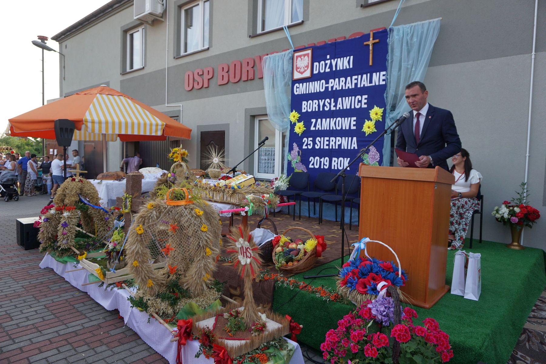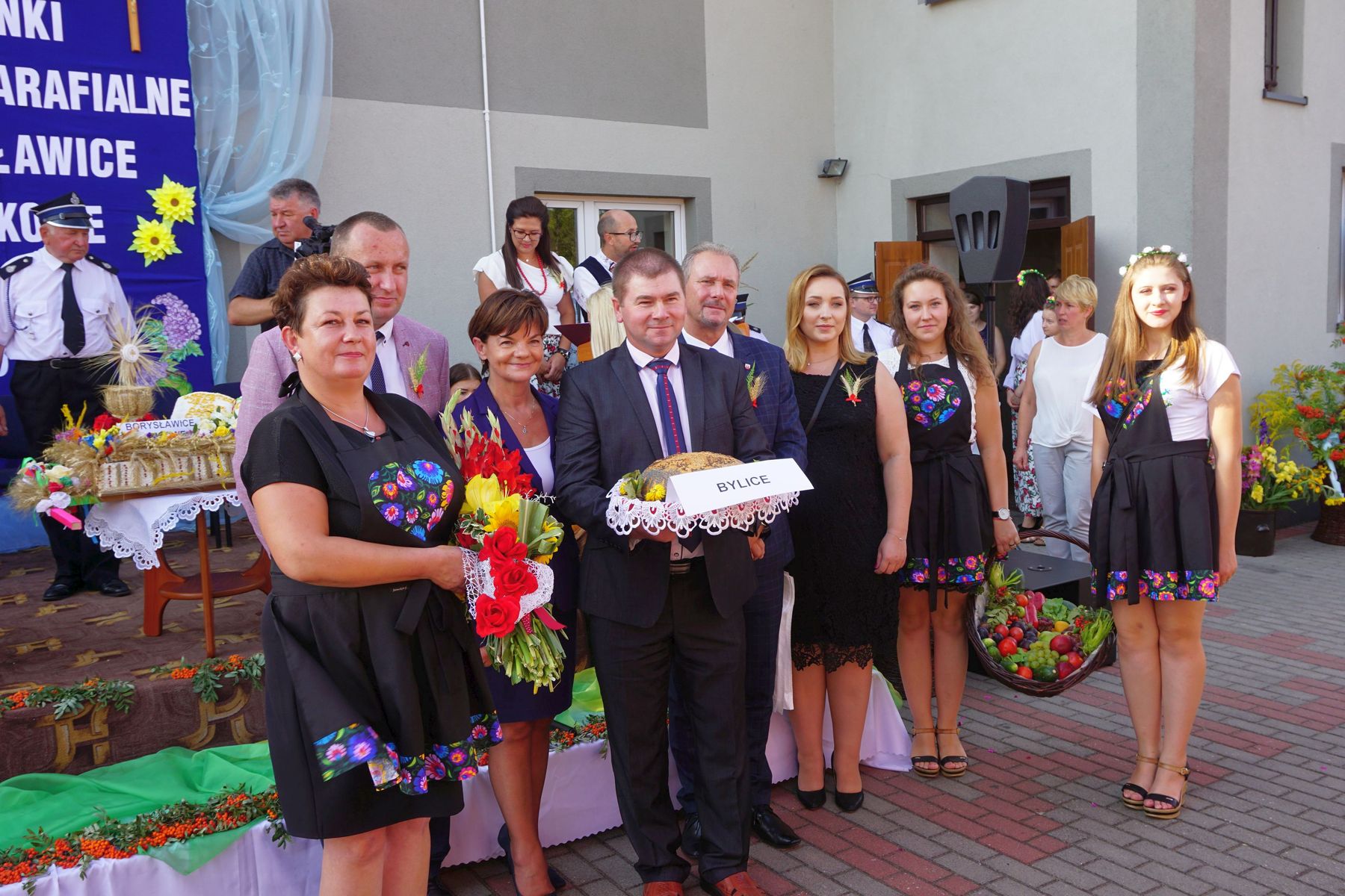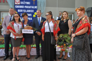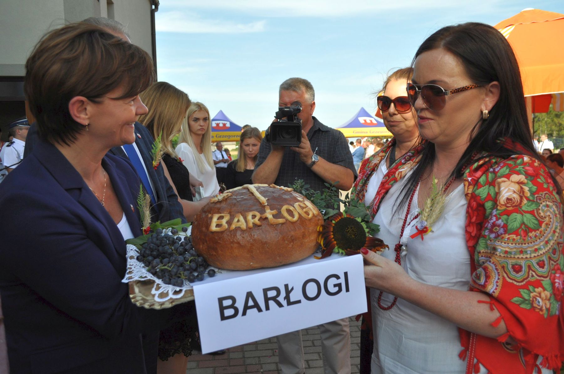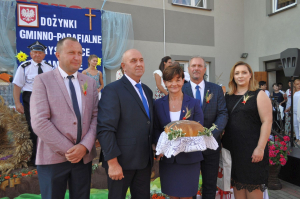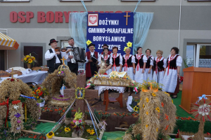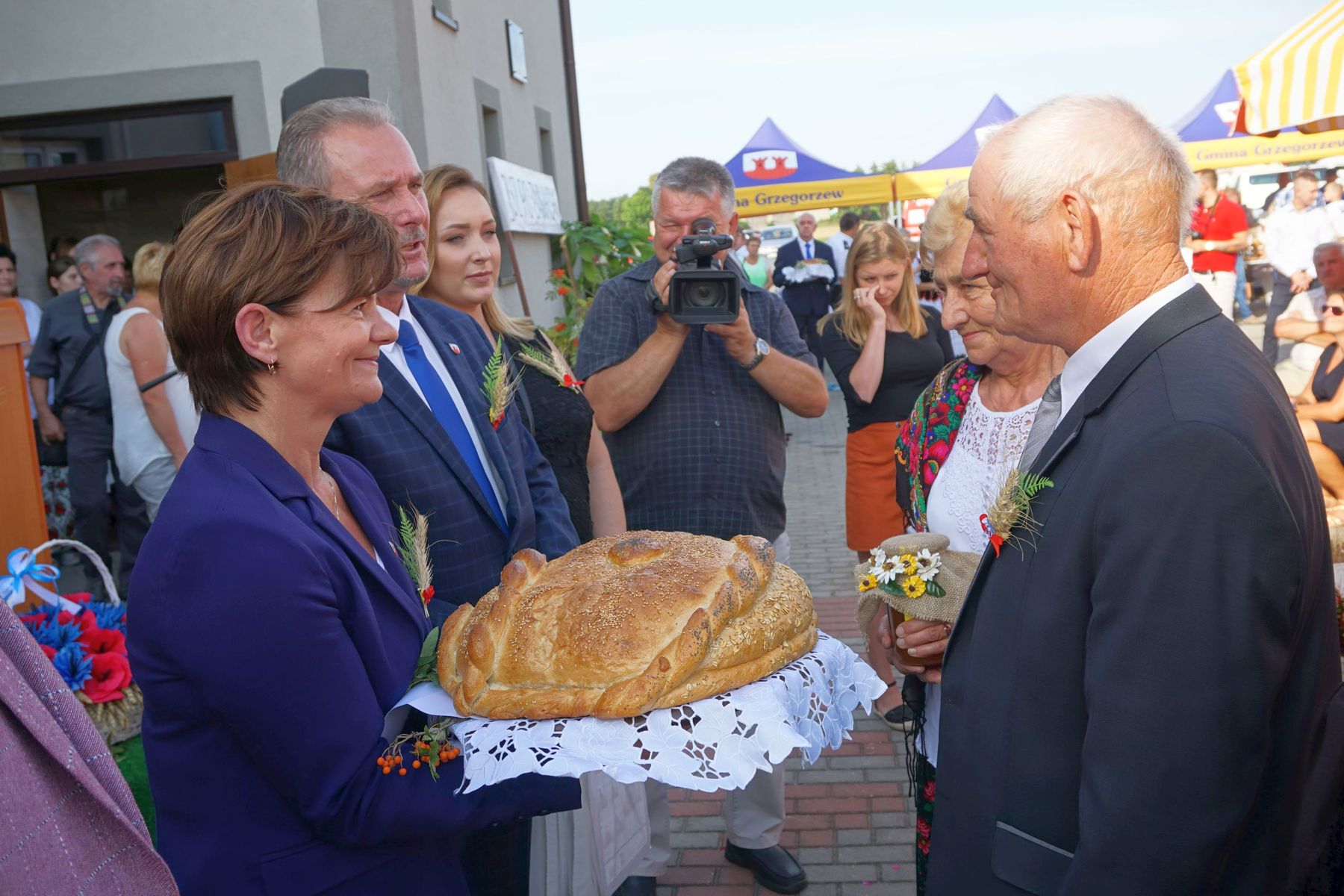 Uroczystości dożynkowe rozpoczęła Msza Święta dziękczynna w intencji rolników, którą sprawowali Proboszcz Parafii pw. Wniebowzięcia NMP w Borysławicach Kościelnych Ks. Andrzej Piesik i Ks. Andrzej Działdowski Proboszcz Parafii Św. Rocha w Barłogach. Kapłani przyjęli z rąk Starostów Dożynek Anny Miszczak i Sebastiana Durkiewicza, delegacji sołectw Gminy Grzegorzew oraz miejscowości Krzykosy, Dąbrówka i Złota z Parafii Borysławice, bochny chleba i owoce ziemi symbolizujące trud pracy rolnika. Po Mszy Św. w kolorowym korowodzie, w asyście Pocztów Sztandarowych oraz Gminnej Orkiestry Dętej, przemaszerowaliśmy na plac przy remizie Ochotniczej Straży Pożarnej, gdzie odbył się ceremoniał dożynkowy – przekazanie chlebów i wspólne nimi się dzielenie. Uroczystość prowadzili Monika Szymczak i Andrzej Sikorski. Dary dożynkowe – chleb, wieńce, owoce, miód, wino, kwiaty złożyły delegacje ze wszystkich 13 sołectw gminy. Żyjemy w gminie rolniczej i dzisiaj nasz wzrok, naszą uwagę kierujemy w stronę pracujących na roli dziękując za ich trud i ciężką pracę – powiedziała Wójt Bożena Dominiak odbierając wspólnie z Przewodniczącym Rady Gminy Tadeuszem Sosnowskim dary z tegorocznych zbiorów.