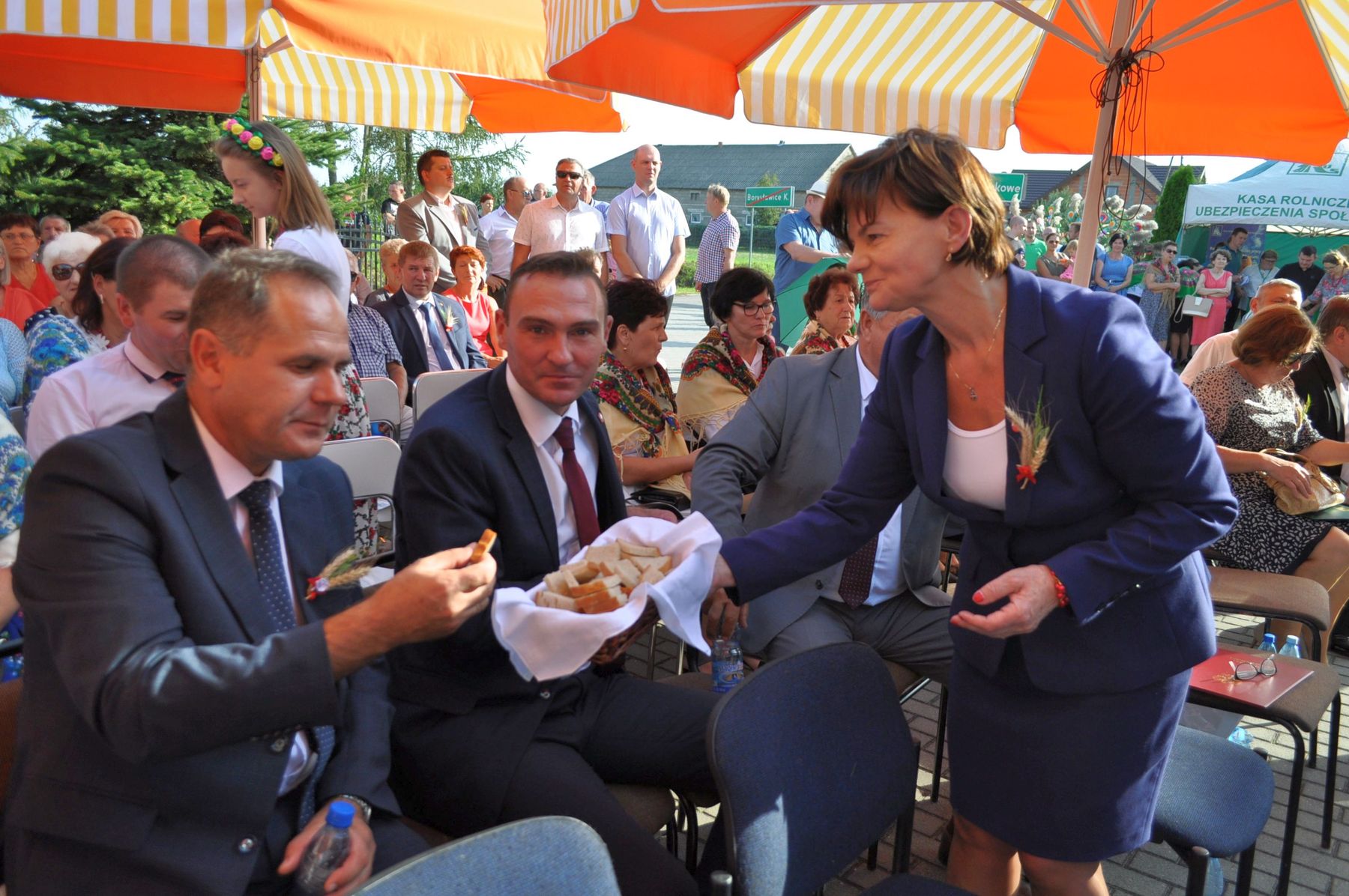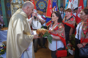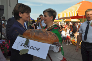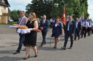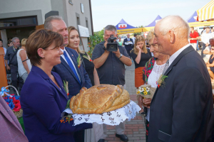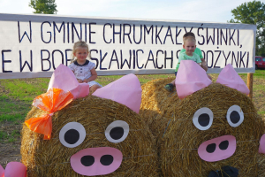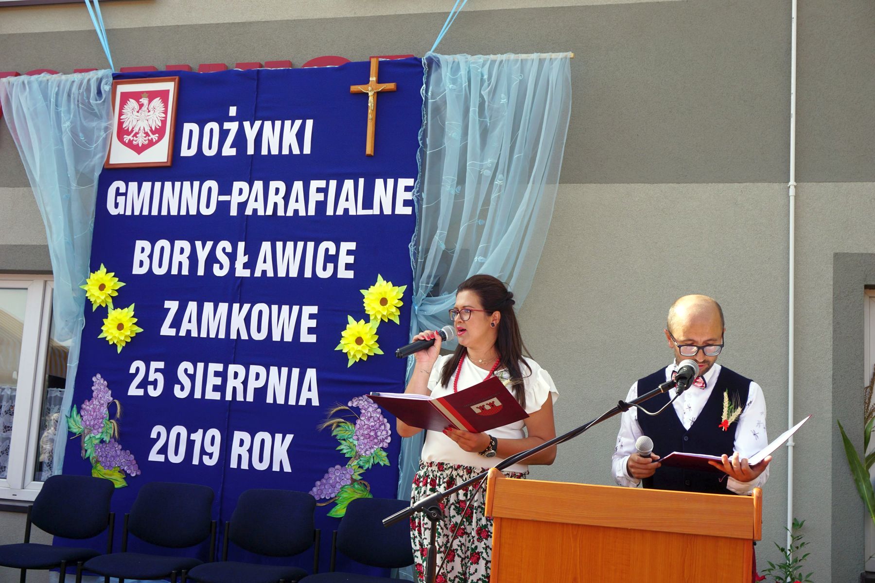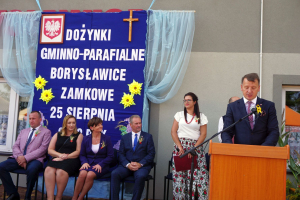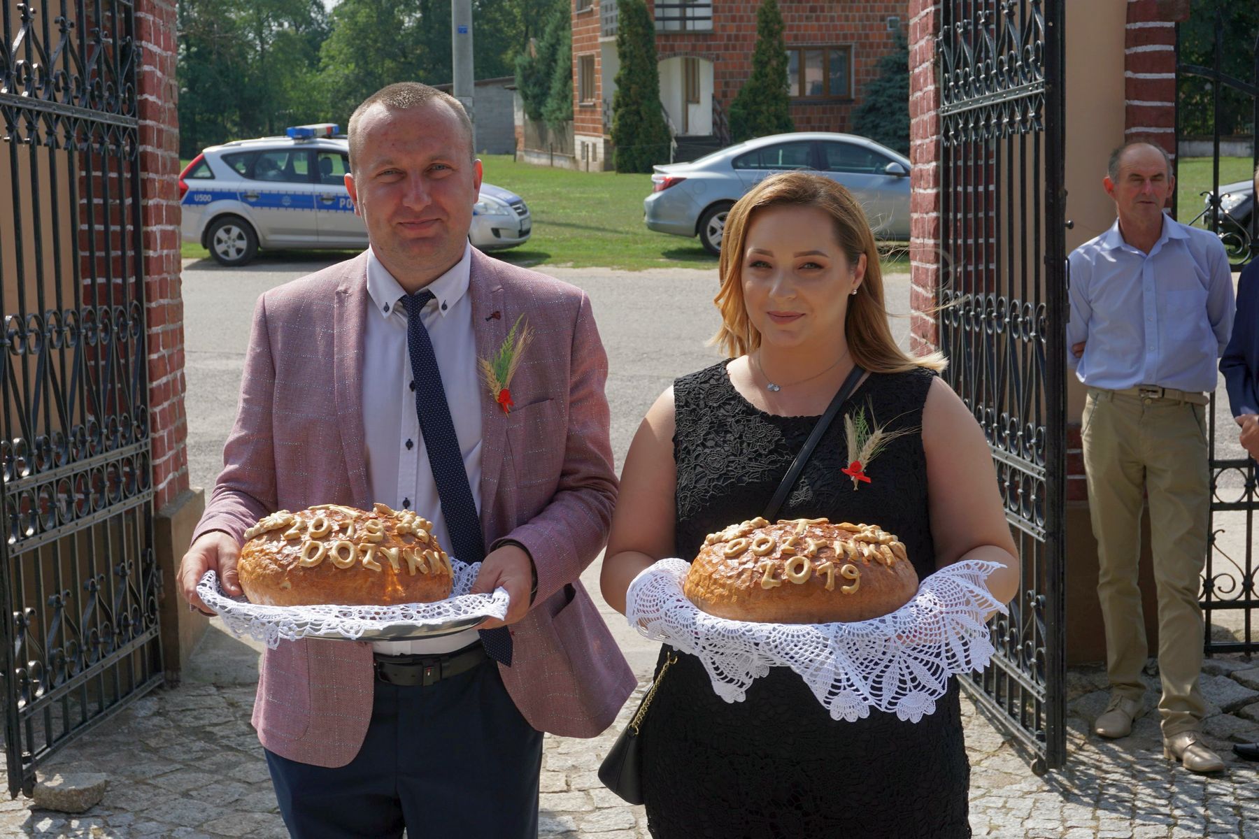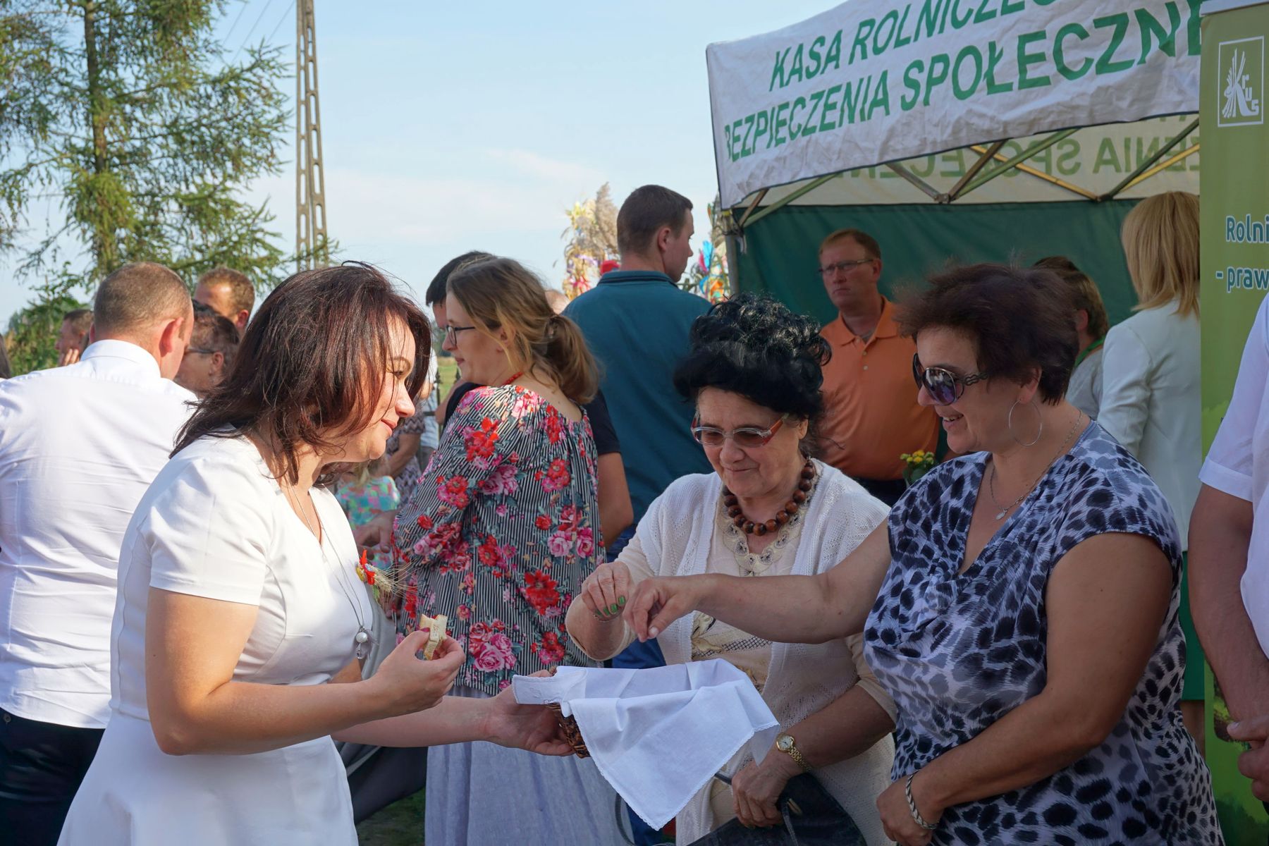 Uroczystości dożynkowe rozpoczęła Msza Święta dziękczynna w intencji rolników, którą sprawowali Proboszcz Parafii pw. Wniebowzięcia NMP w Borysławicach Kościelnych Ks. Andrzej Piesik i Ks. Andrzej Działdowski Proboszcz Parafii Św. Rocha w Barłogach. Kapłani przyjęli z rąk Starostów Dożynek Anny Miszczak i Sebastiana Durkiewicza, delegacji sołectw Gminy Grzegorzew oraz miejscowości Krzykosy, Dąbrówka i Złota z Parafii Borysławice, bochny chleba i owoce ziemi symbolizujące trud pracy rolnika. Po Mszy Św. w kolorowym korowodzie, w asyście Pocztów Sztandarowych oraz Gminnej Orkiestry Dętej, przemaszerowaliśmy na plac przy remizie Ochotniczej Straży Pożarnej, gdzie odbył się ceremoniał dożynkowy – przekazanie chlebów i wspólne nimi się dzielenie. Uroczystość prowadzili Monika Szymczak i Andrzej Sikorski. Dary dożynkowe – chleb, wieńce, owoce, miód, wino, kwiaty złożyły delegacje ze wszystkich 13 sołectw gminy. Żyjemy w gminie rolniczej i dzisiaj nasz wzrok, naszą uwagę kierujemy w stronę pracujących na roli dziękując za ich trud i ciężką pracę – powiedziała Wójt Bożena Dominiak odbierając wspólnie z Przewodniczącym Rady Gminy Tadeuszem Sosnowskim dary z tegorocznych zbiorów.