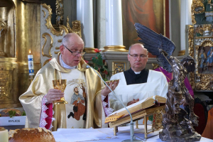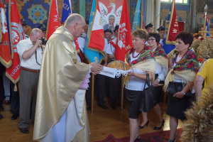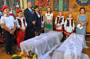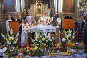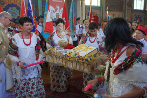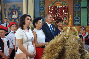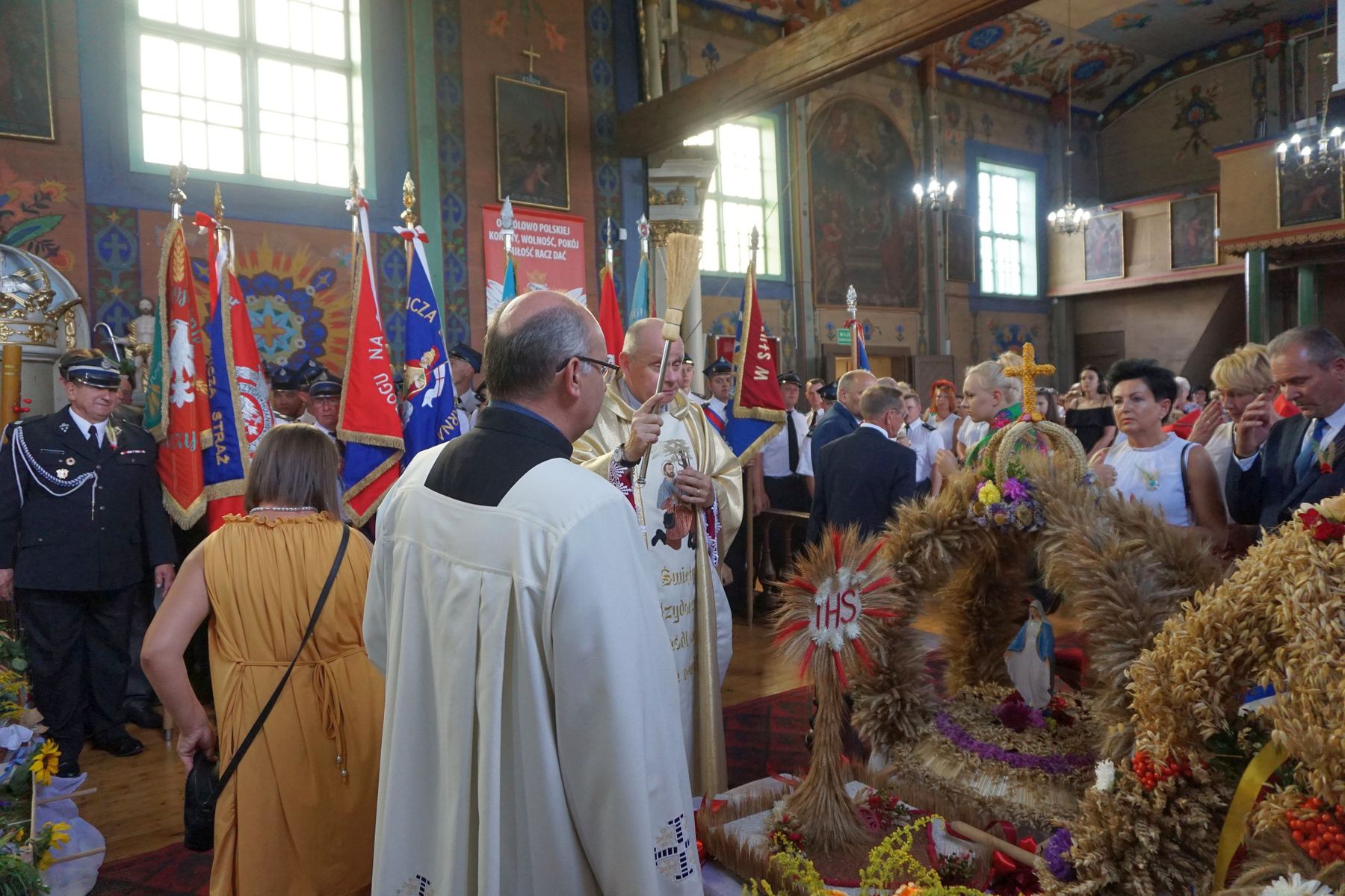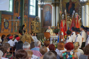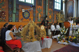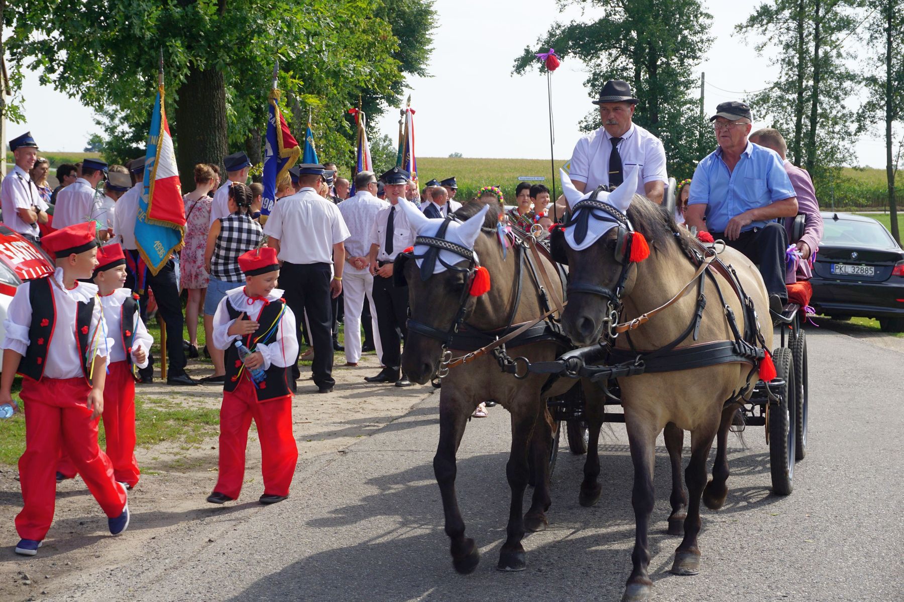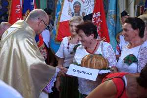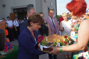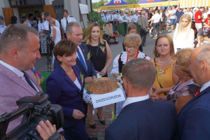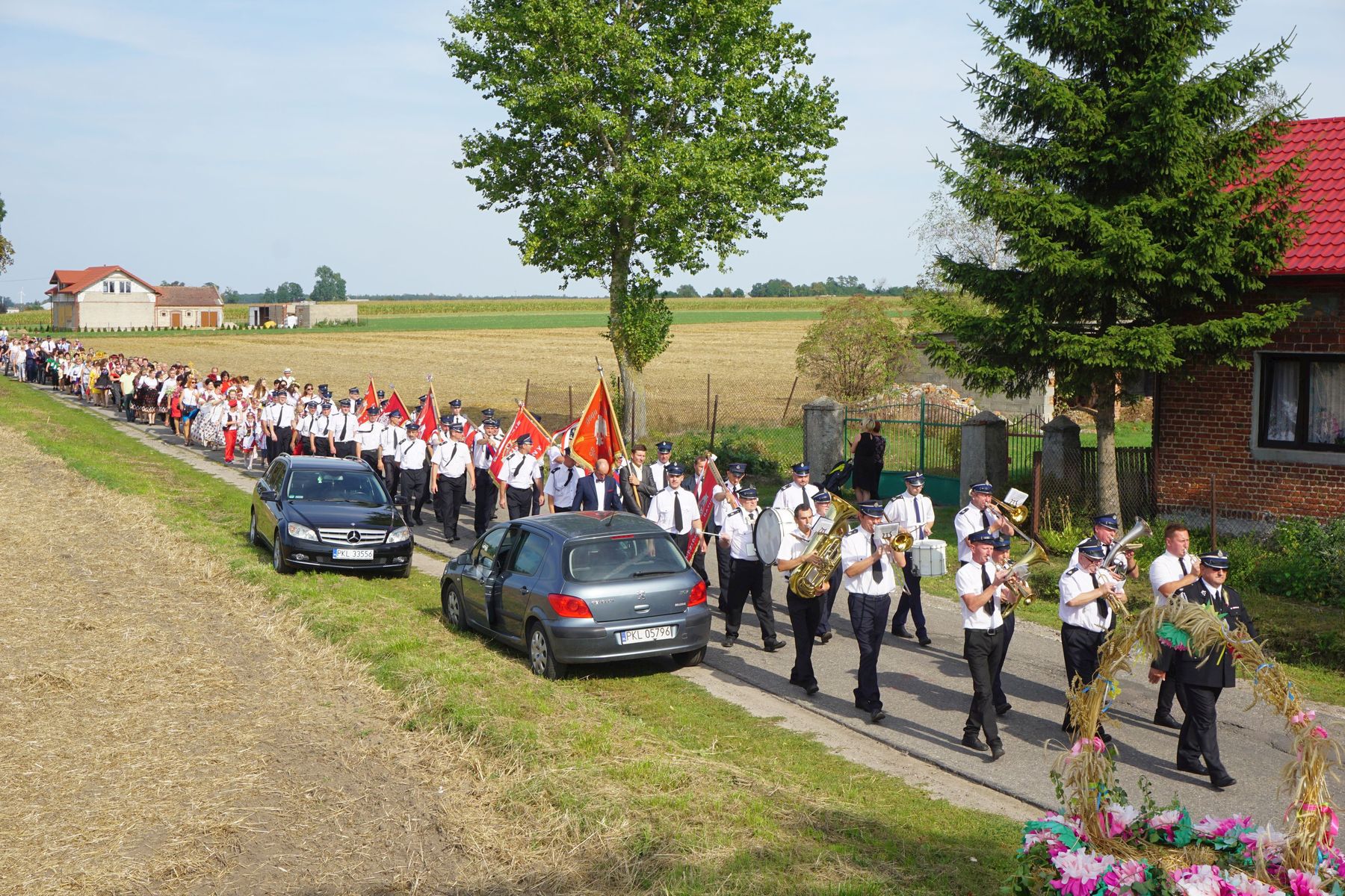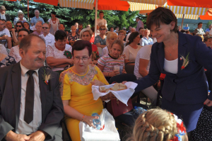 Uroczystości dożynkowe rozpoczęła Msza Święta dziękczynna w intencji rolników, którą sprawowali Proboszcz Parafii pw. Wniebowzięcia NMP w Borysławicach Kościelnych Ks. Andrzej Piesik i Ks. Andrzej Działdowski Proboszcz Parafii Św. Rocha w Barłogach. Kapłani przyjęli z rąk Starostów Dożynek Anny Miszczak i Sebastiana Durkiewicza, delegacji sołectw Gminy Grzegorzew oraz miejscowości Krzykosy, Dąbrówka i Złota z Parafii Borysławice, bochny chleba i owoce ziemi symbolizujące trud pracy rolnika. Po Mszy Św. w kolorowym korowodzie, w asyście Pocztów Sztandarowych oraz Gminnej Orkiestry Dętej, przemaszerowaliśmy na plac przy remizie Ochotniczej Straży Pożarnej, gdzie odbył się ceremoniał dożynkowy – przekazanie chlebów i wspólne nimi się dzielenie. Uroczystość prowadzili Monika Szymczak i Andrzej Sikorski. Dary dożynkowe – chleb, wieńce, owoce, miód, wino, kwiaty złożyły delegacje ze wszystkich 13 sołectw gminy. Żyjemy w gminie rolniczej i dzisiaj nasz wzrok, naszą uwagę kierujemy w stronę pracujących na roli dziękując za ich trud i ciężką pracę – powiedziała Wójt Bożena Dominiak odbierając wspólnie z Przewodniczącym Rady Gminy Tadeuszem Sosnowskim dary z tegorocznych zbiorów.