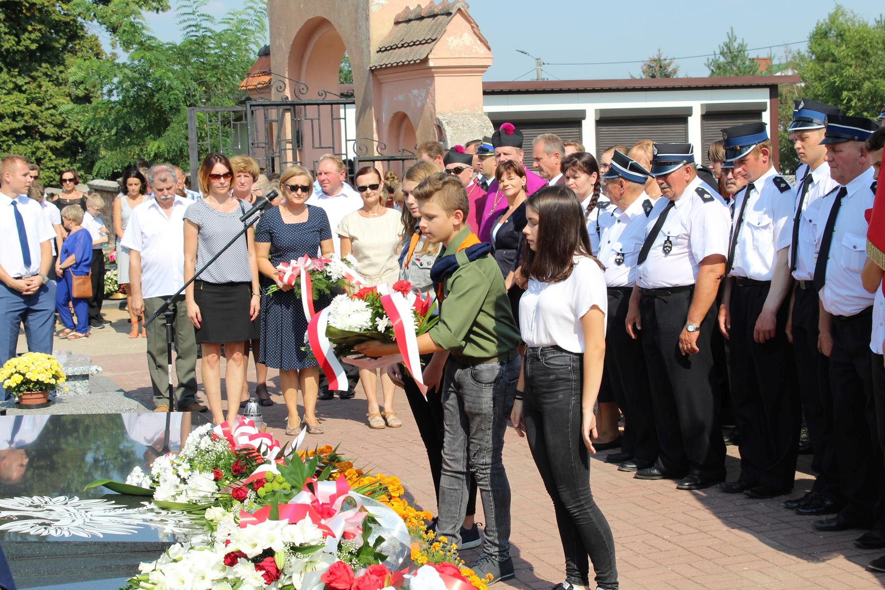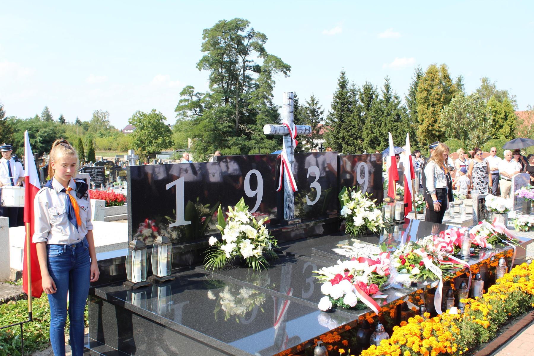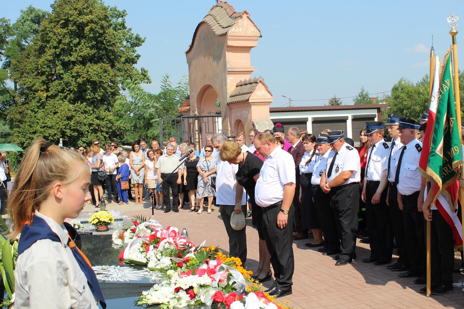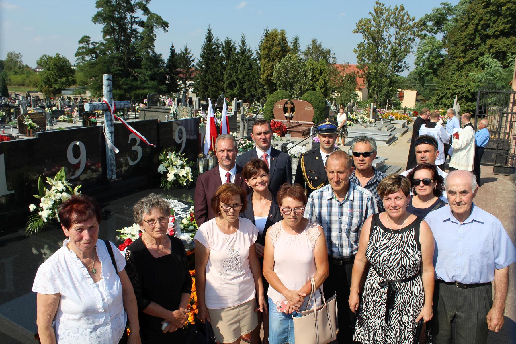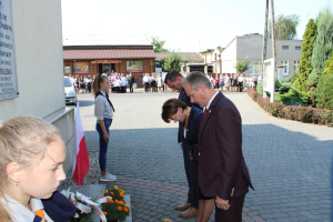 80 lat temu, 1 września 1939 roku, atak III Rzeszy na Rzeczpospolitą zapoczątkował II Wojnę Światową – największy konflikt zbrojny na świecie, największą tragedię XX wieku, najtragiczniejsze doświadczenie w historii ludzkości. Wrzesień 1939 roku na zawsze zmienił świat. Ocean zła rozlał się na ziemi. Przyszła NOC OKUPACJI. NOC, w której istotą była zbrodnia, której istotą był Oświęcim, istotą był Holocaust i istotą był Katyń. Polska została rozdarta pomiędzy hitlerowskie Niemcy i przez Związek Sowiecki, przez Hitlera i przez Stalina - mówiła w swoim wystąpieniu Wójt Gminy. 1 września gromadzimy się na naszym cmentarzu, aby oddać hołd tym, którzy poświęcili dobro najwyższe - swoje życie. Ważne jest, że jesteśmy i pamiętamy. Pamięć pokoleń trwa. Bez wczoraj nie ma dziś, a tym bardziej jutra, pamiętajmy ! – powiedziała wójt Bożena Dominiak.