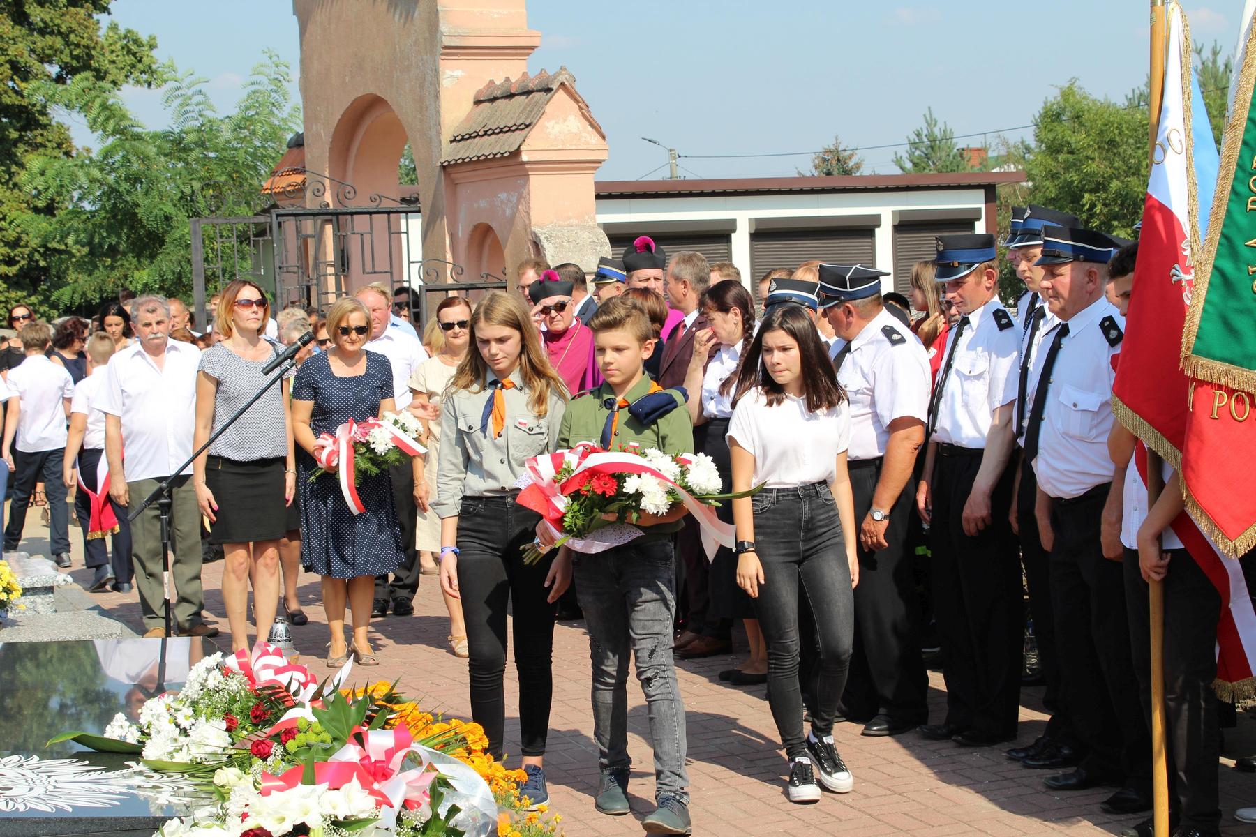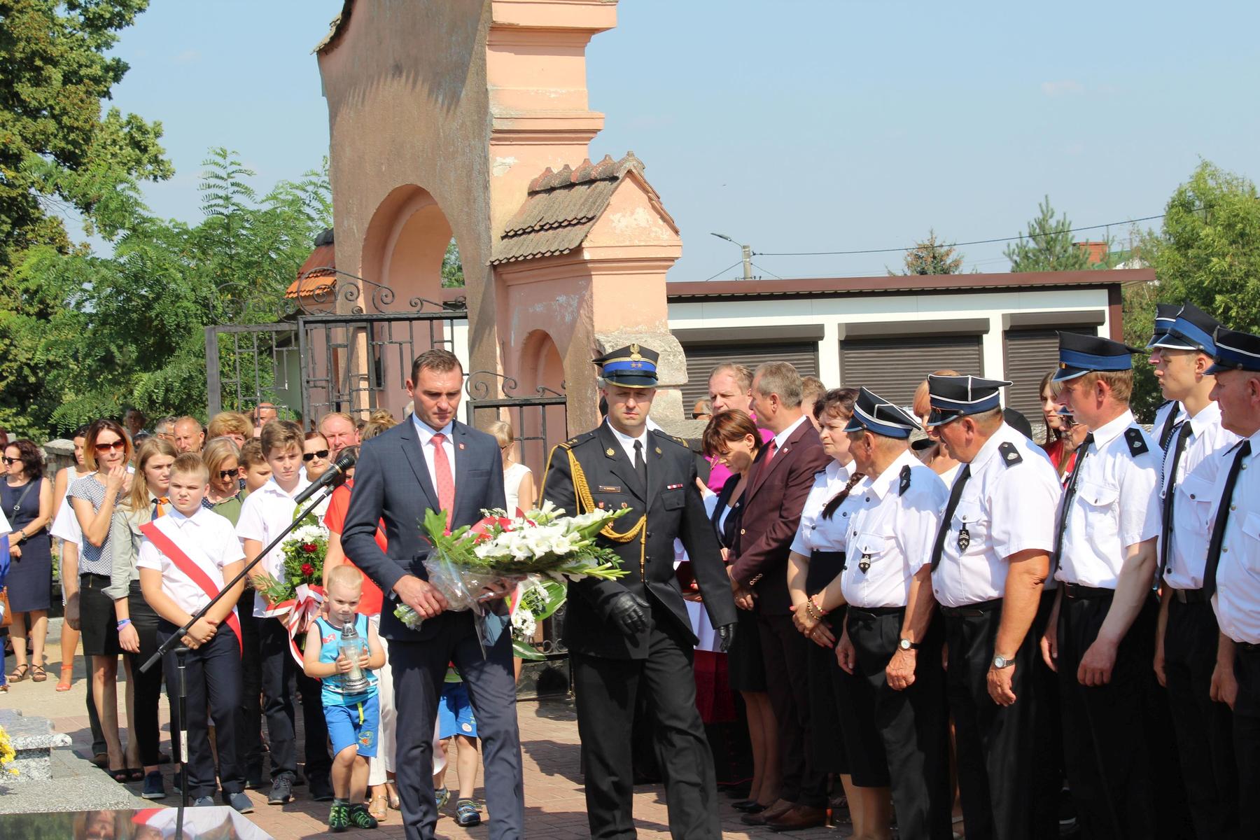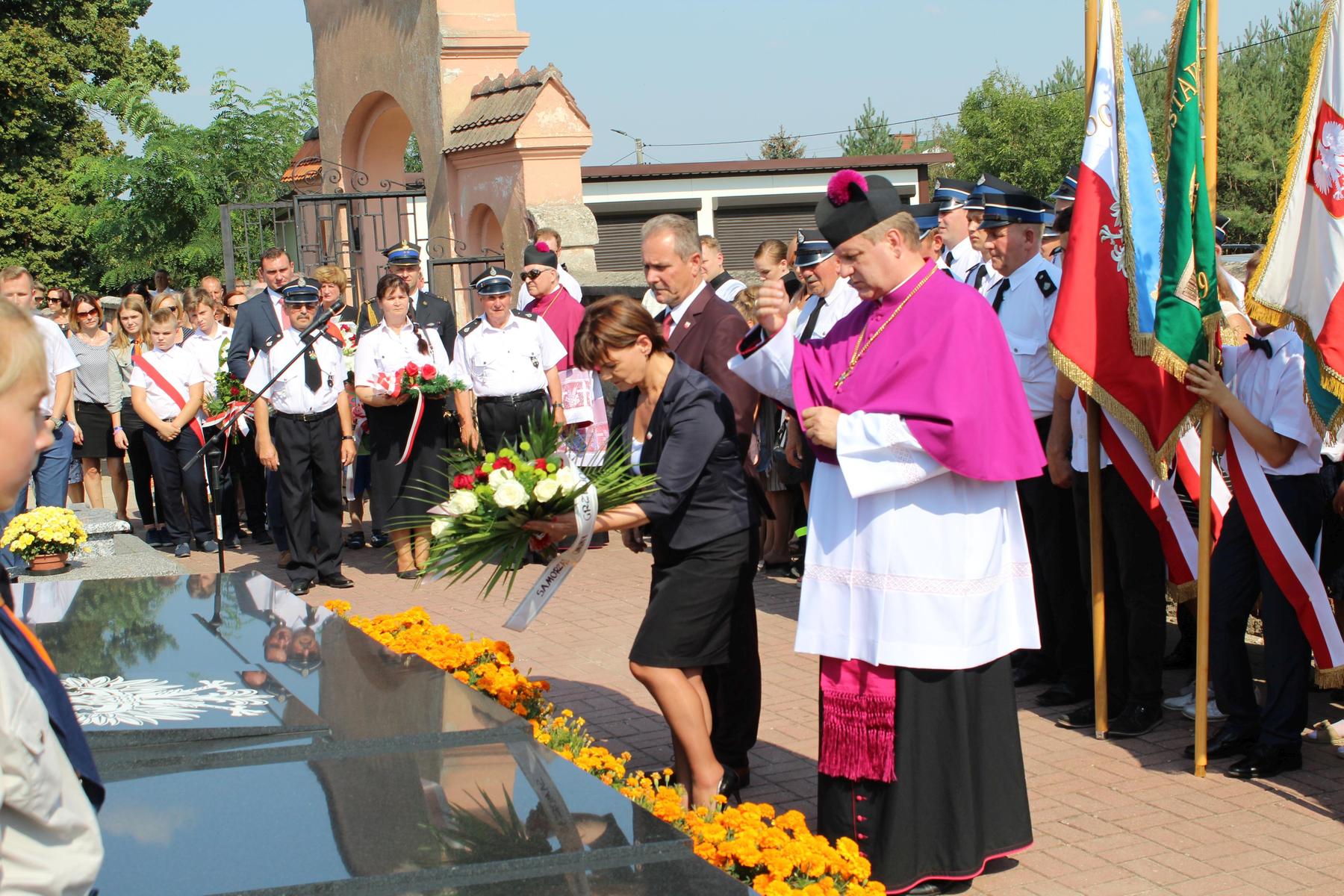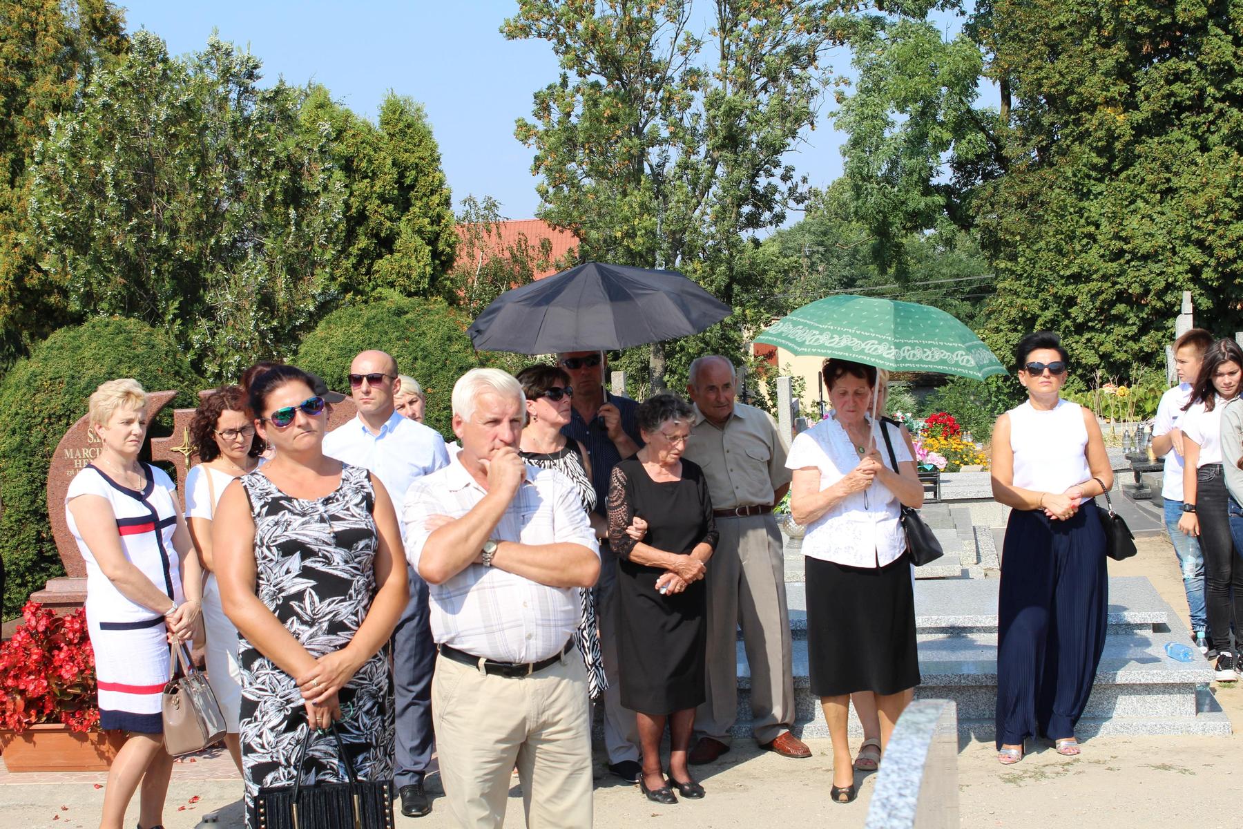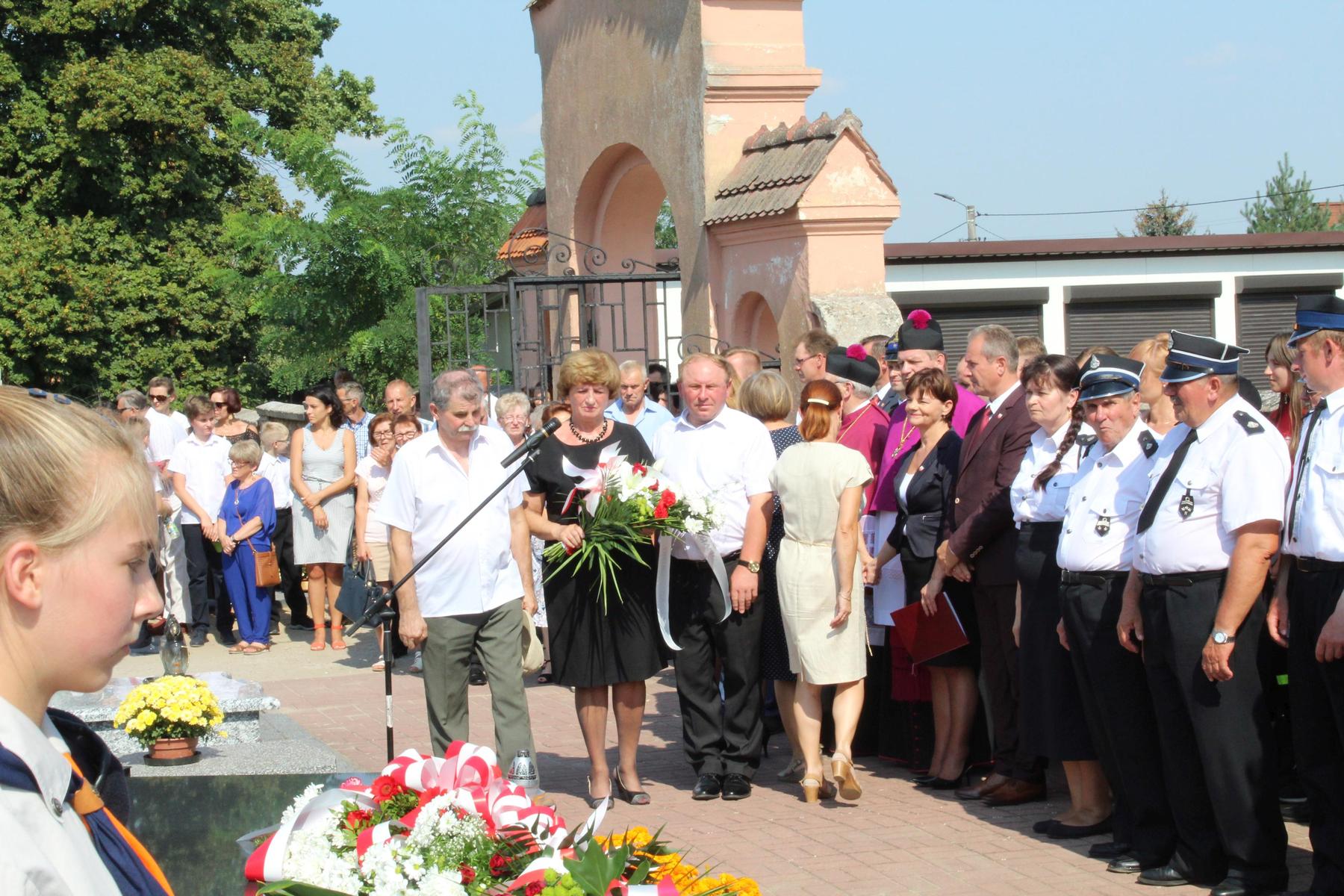 80 lat temu, 1 września 1939 roku, atak III Rzeszy na Rzeczpospolitą zapoczątkował II Wojnę Światową – największy konflikt zbrojny na świecie, największą tragedię XX wieku, najtragiczniejsze doświadczenie w historii ludzkości. Wrzesień 1939 roku na zawsze zmienił świat. Ocean zła rozlał się na ziemi. Przyszła NOC OKUPACJI. NOC, w której istotą była zbrodnia, której istotą był Oświęcim, istotą był Holocaust i istotą był Katyń. Polska została rozdarta pomiędzy hitlerowskie Niemcy i przez Związek Sowiecki, przez Hitlera i przez Stalina - mówiła w swoim wystąpieniu Wójt Gminy. 1 września gromadzimy się na naszym cmentarzu, aby oddać hołd tym, którzy poświęcili dobro najwyższe - swoje życie. Ważne jest, że jesteśmy i pamiętamy. Pamięć pokoleń trwa. Bez wczoraj nie ma dziś, a tym bardziej jutra, pamiętajmy ! – powiedziała wójt Bożena Dominiak.