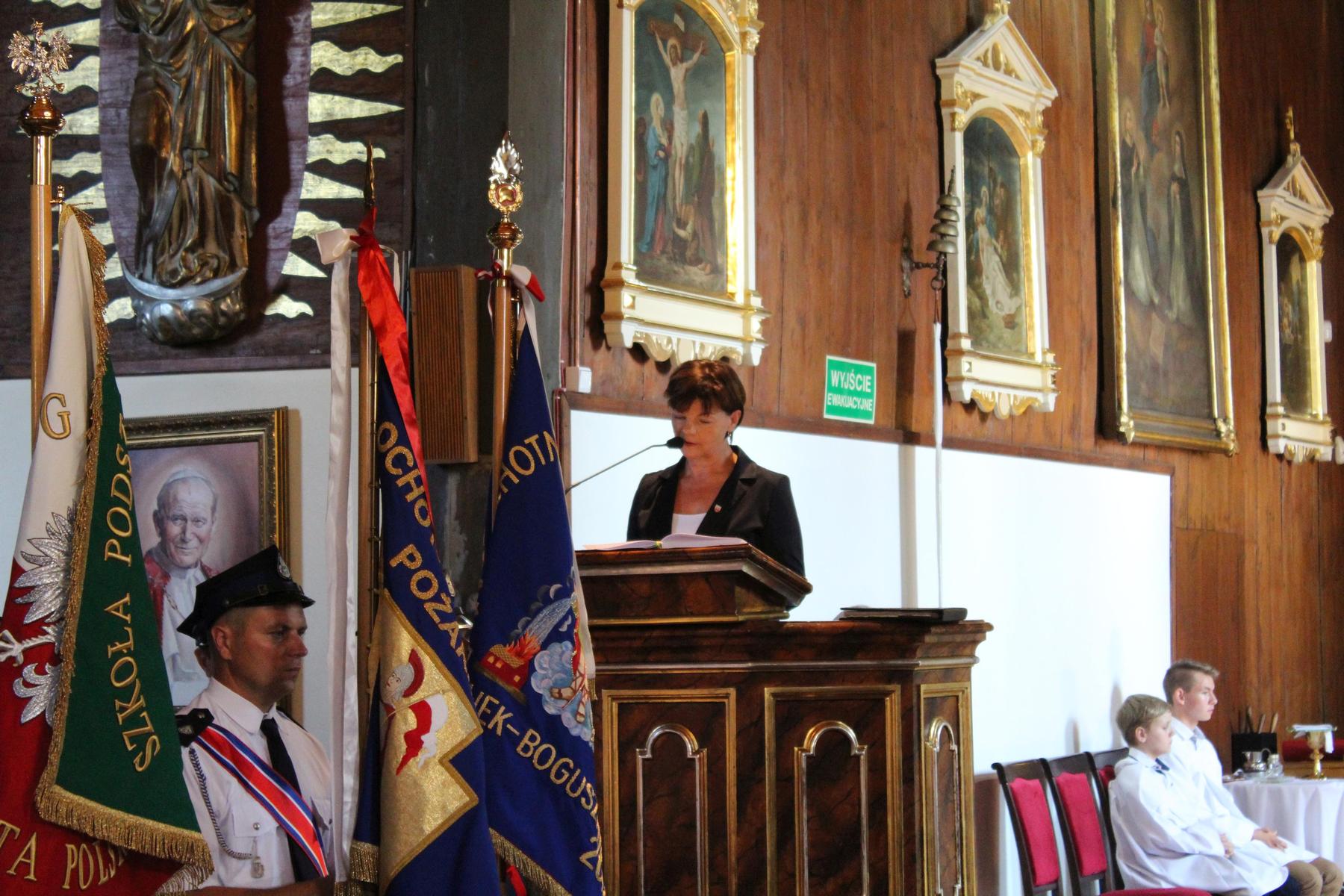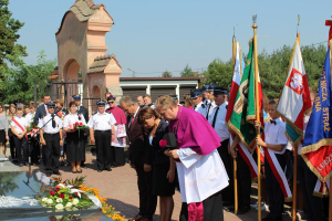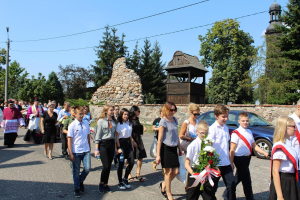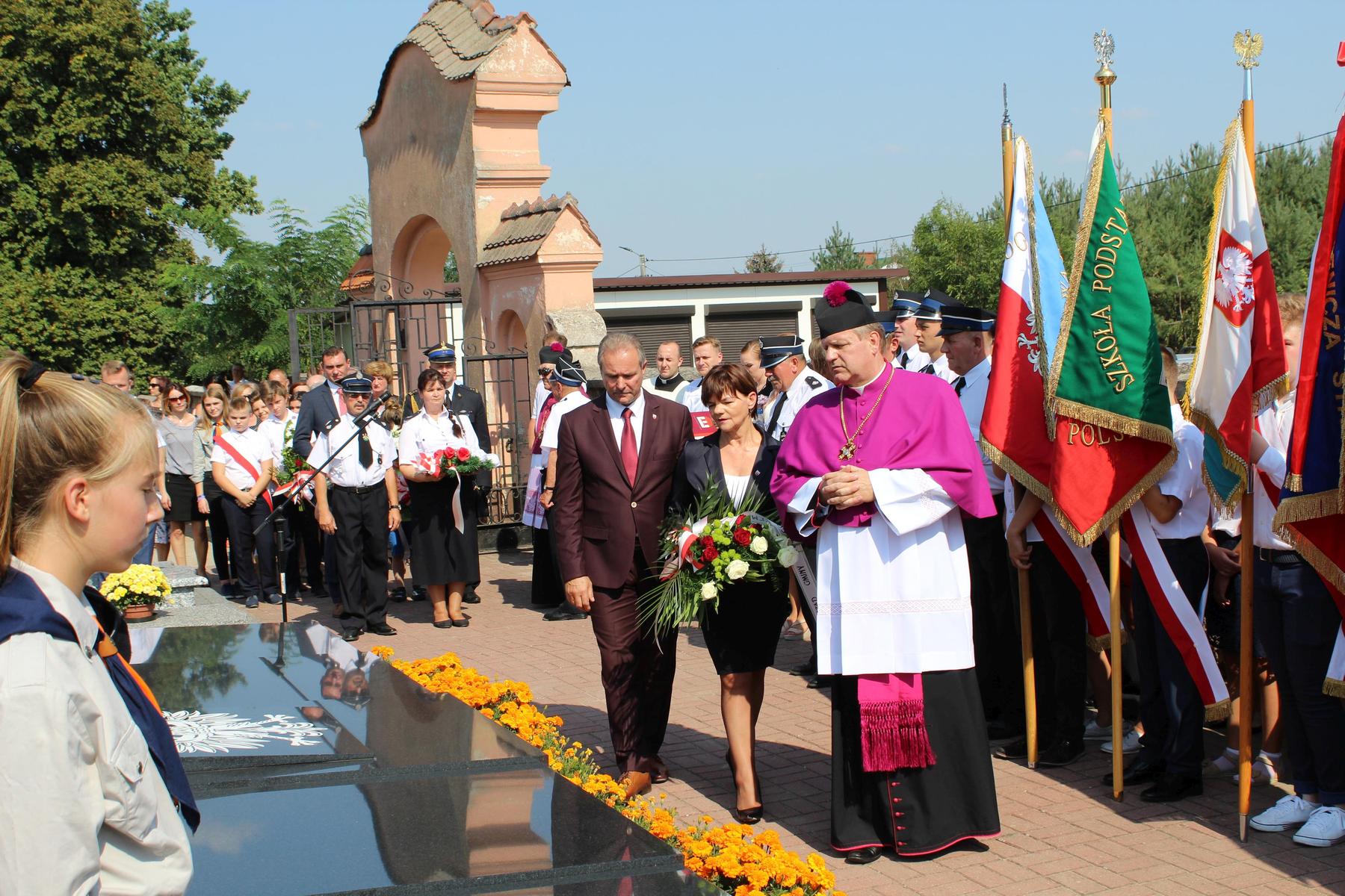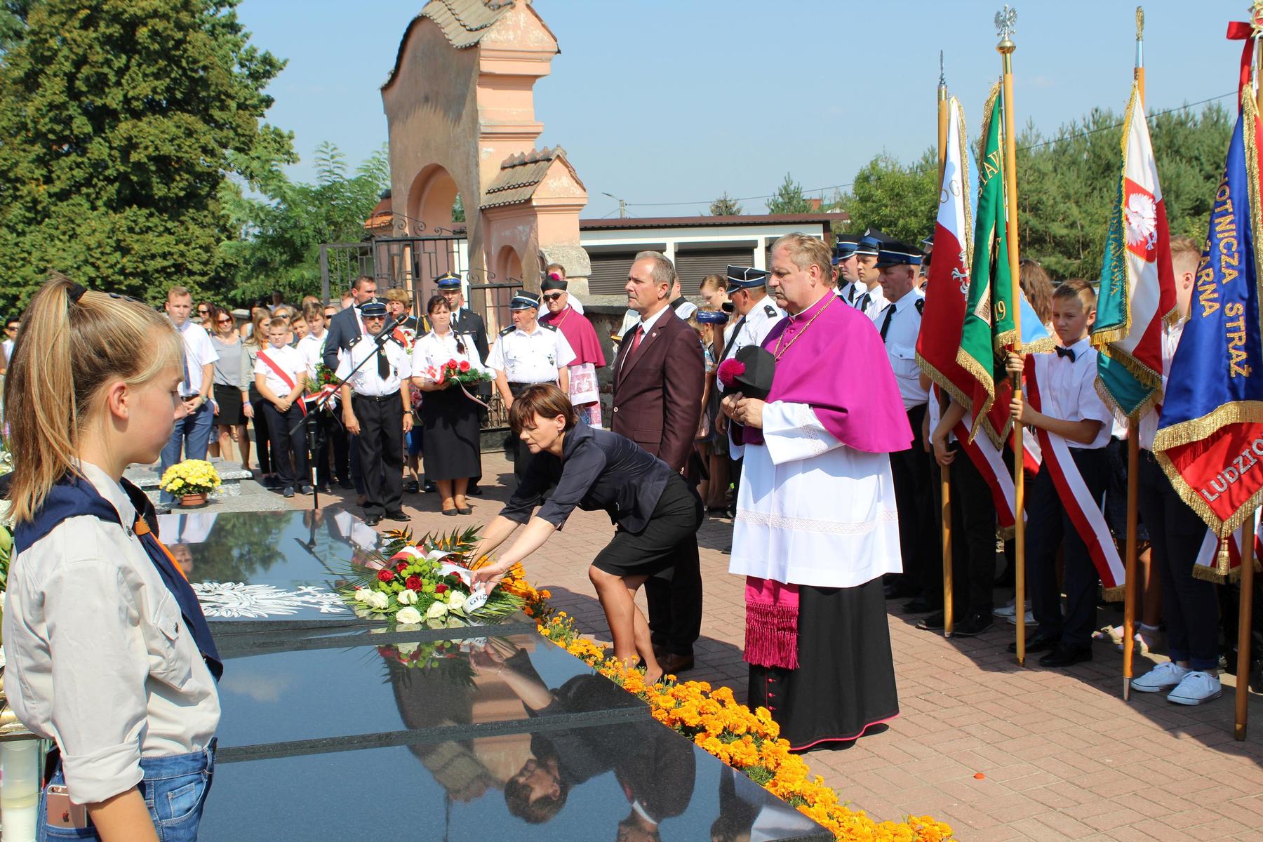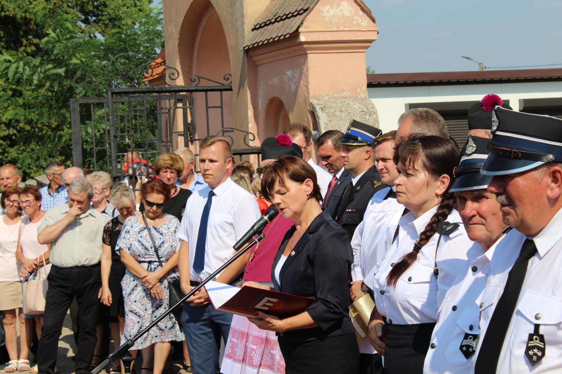 80 lat temu, 1 września 1939 roku, atak III Rzeszy na Rzeczpospolitą zapoczątkował II Wojnę Światową – największy konflikt zbrojny na świecie, największą tragedię XX wieku, najtragiczniejsze doświadczenie w historii ludzkości. Wrzesień 1939 roku na zawsze zmienił świat. Ocean zła rozlał się na ziemi. Przyszła NOC OKUPACJI. NOC, w której istotą była zbrodnia, której istotą był Oświęcim, istotą był Holocaust i istotą był Katyń. Polska została rozdarta pomiędzy hitlerowskie Niemcy i przez Związek Sowiecki, przez Hitlera i przez Stalina - mówiła w swoim wystąpieniu Wójt Gminy. 1 września gromadzimy się na naszym cmentarzu, aby oddać hołd tym, którzy poświęcili dobro najwyższe - swoje życie. Ważne jest, że jesteśmy i pamiętamy. Pamięć pokoleń trwa. Bez wczoraj nie ma dziś, a tym bardziej jutra, pamiętajmy ! – powiedziała wójt Bożena Dominiak.