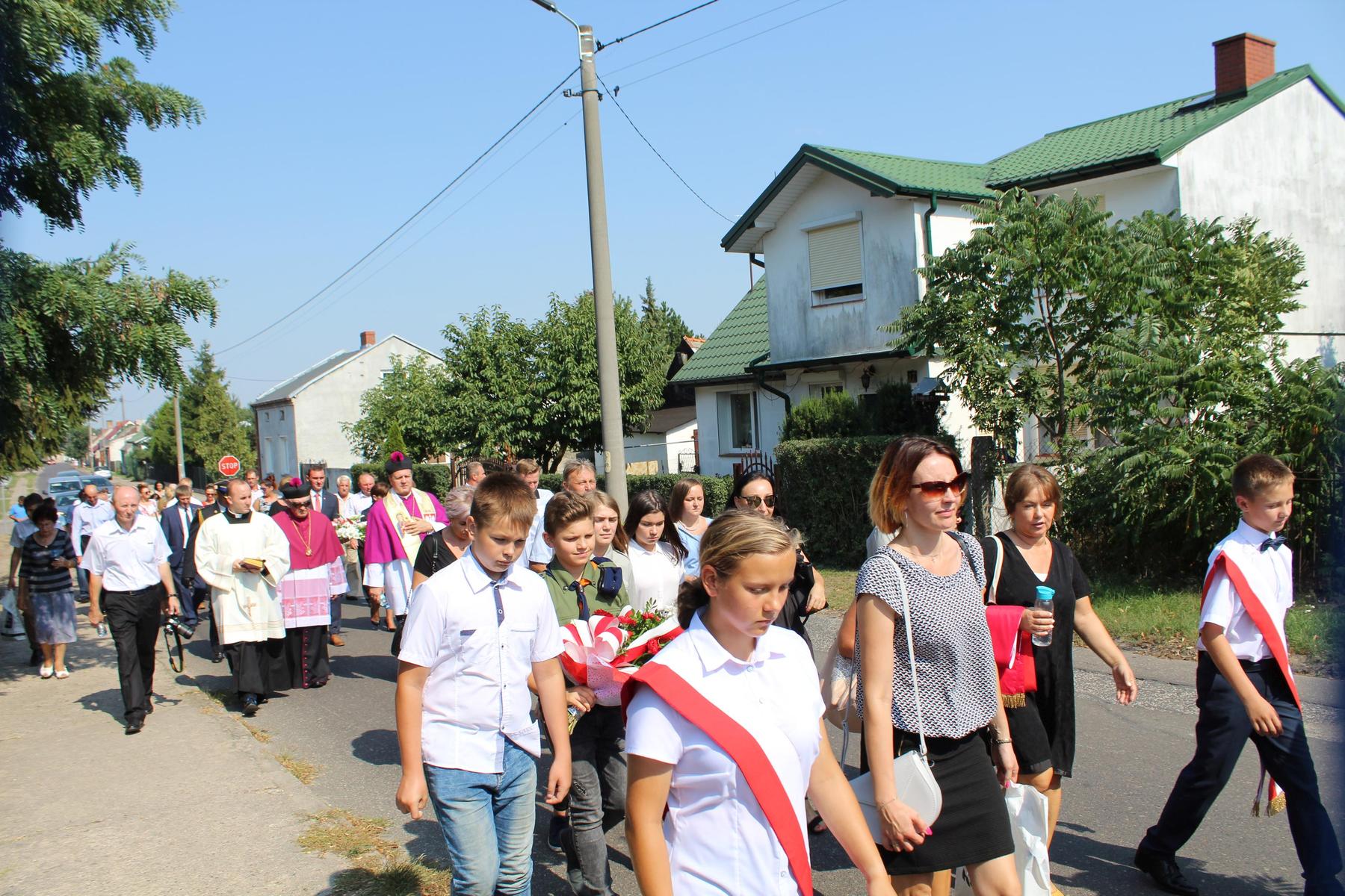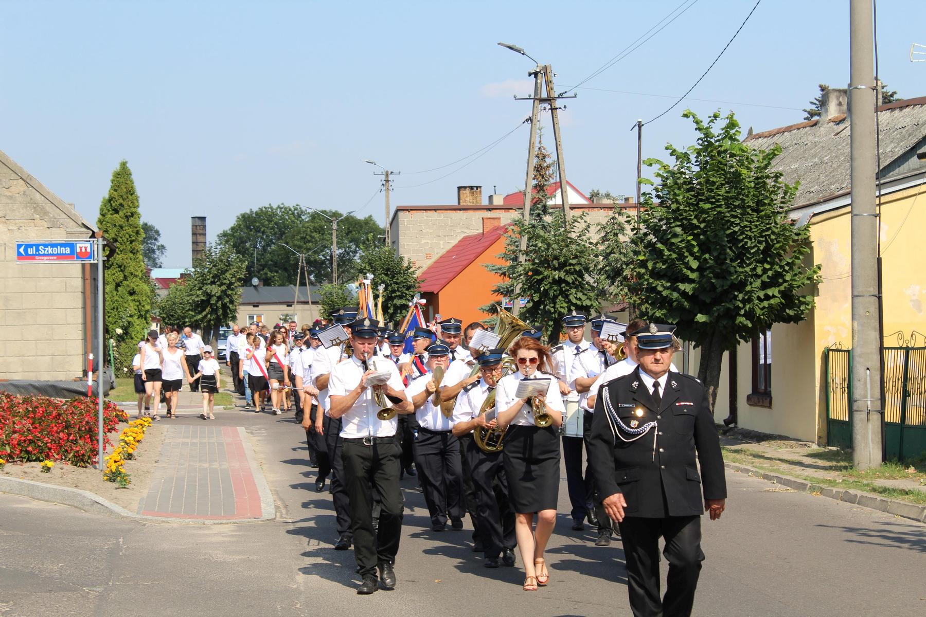 Po zbiórce przed Domem Strażaka władze gminy, poczty sztandarowe, delegacje jednostek OSP, placówek oświatowych i mieszkańcy gminy na czele z orkiestrą dętą udali się do kościoła parafialnego. Mszę św. w intencji poległych w obronie naszej ojczyzny odprawił Ksiądz Kanonik Krzysztof Pietryga – Proboszcz Parafii Wniebowzięcia NMP w Grzegorzewie. Po nabożeństwie przemaszerowano przed tablicę na budynku Urzędu Gminy upamiętniającą mieszkańców Grzegorzewa i okolic poległych podczas wojny. Wiązankę biało-czerwonych kwiatów złożyli wójt Bożena Dominiak, przewodniczący rady gminy Tadeusz Sosnowski oraz członek Zarządu Powiatu Kolskiego Waldemar Banasiak.