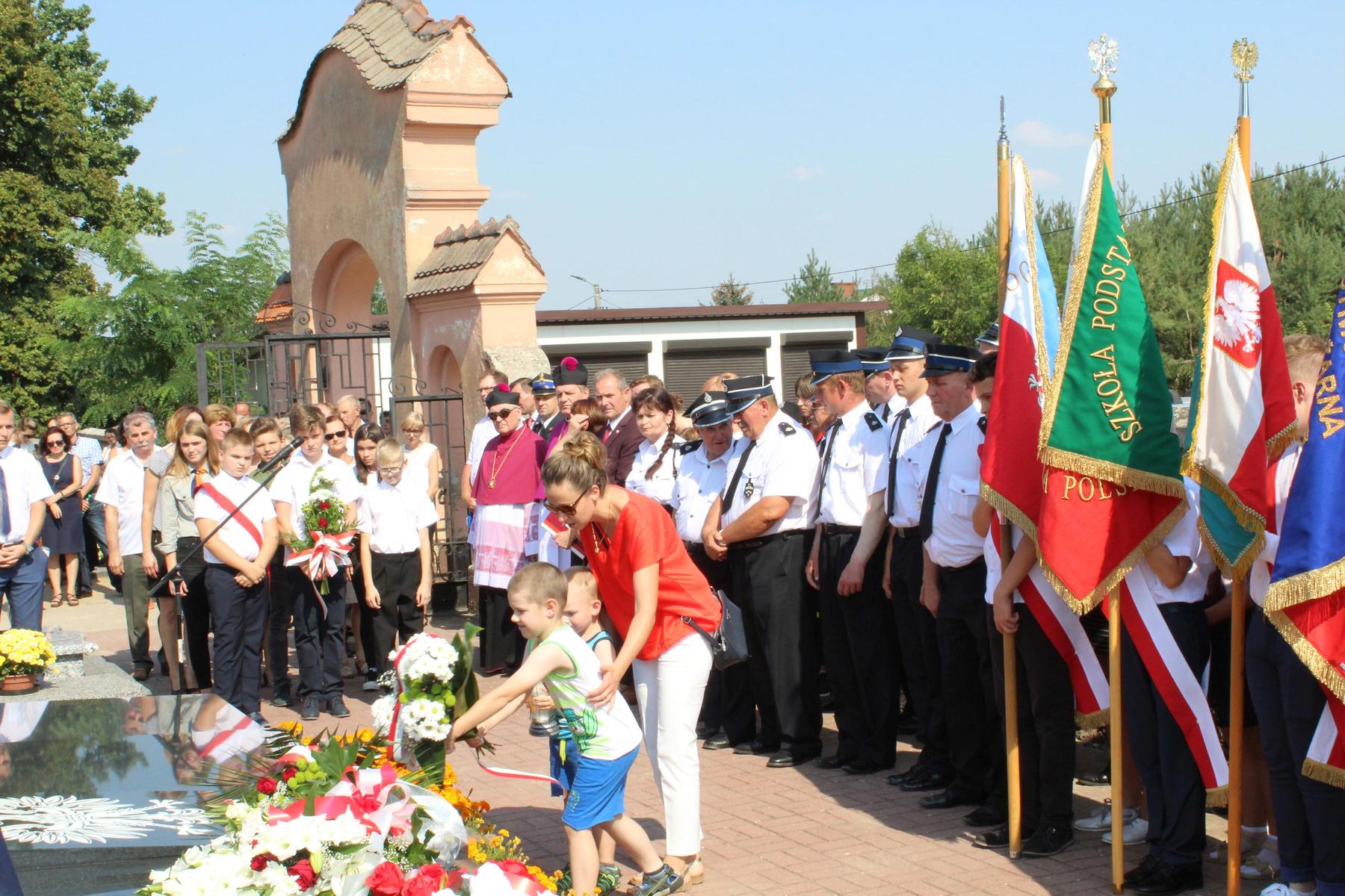 Następnie udano się na cmentarz parafialny, gdzie na zbiorowej mogile ofiar nalotu hitlerowskiego lotnictwa na Chojny, złożono wiązanki kwiatów. Wójt Gminy odczytała apel poległych, w którym oddano hołd mieszkańcom gminy poległym we wrześniu 1939 r., pomordowanym w Katyniu, walczącym w podziemiu zbrojnym z hitlerowskim okupantem, zamęczonym kapłanom i Żołnierzom Wyklętym. Odmówiono modlitwę w intencji ofiar wojny.