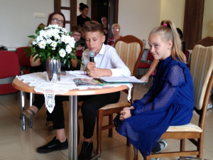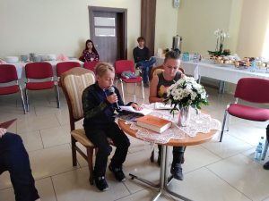 Czytaniu towarzyszyły warsztaty artystyczne dla dzieci prowadzone przez Panią Stefanię Dorabiałę. Jak co roku uczestników ,,Narodowego Czytania’’ spotkała miła niespodzianka. Wszyscy otrzymali z rąk Pani Wójt i Pani Dyrektor specjalne podziękowania oraz pamiątkowe egzemplarze czytanych nowel z okolicznościowym stemplem.