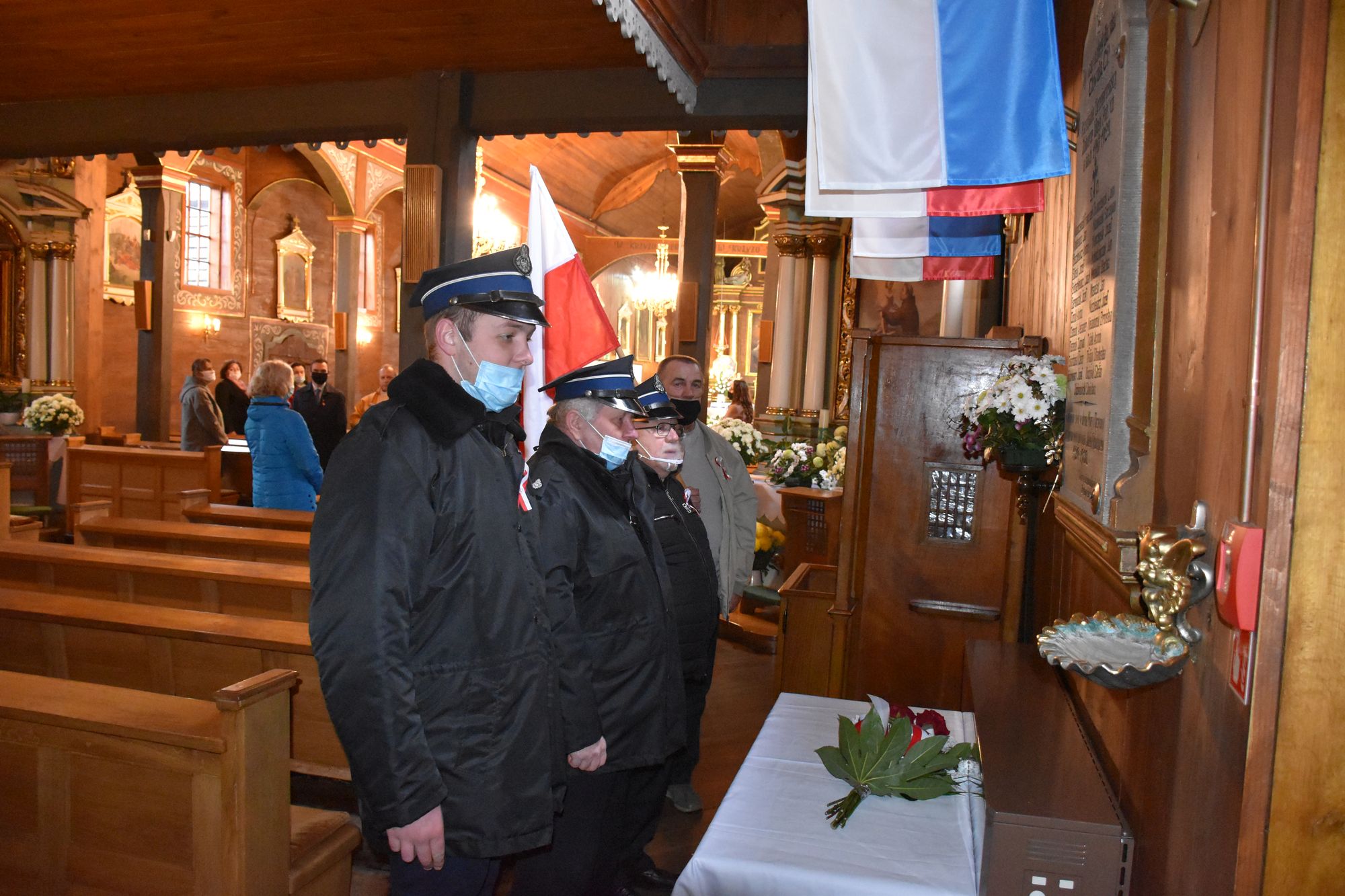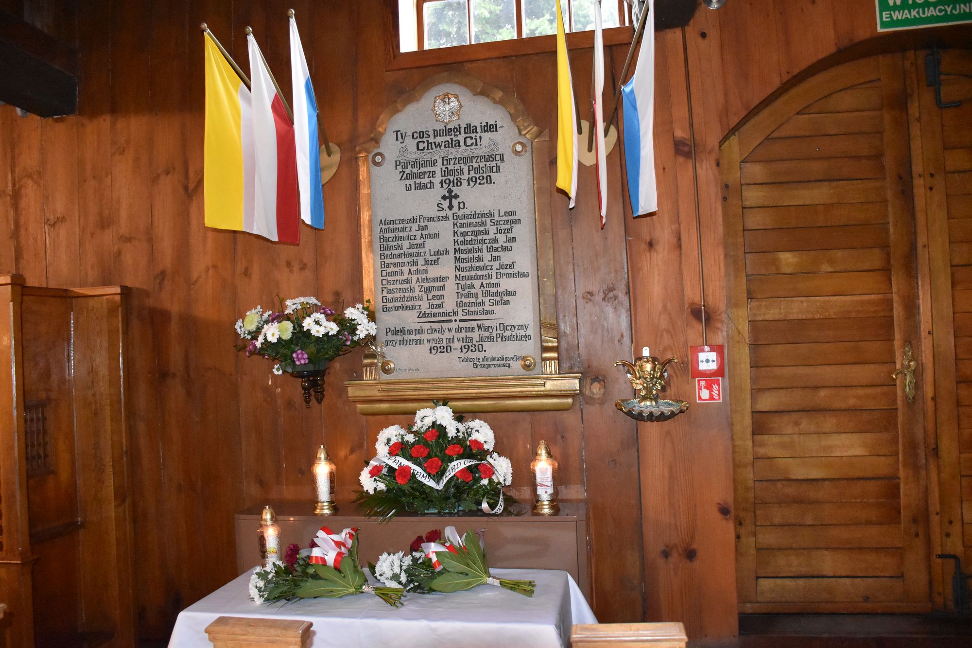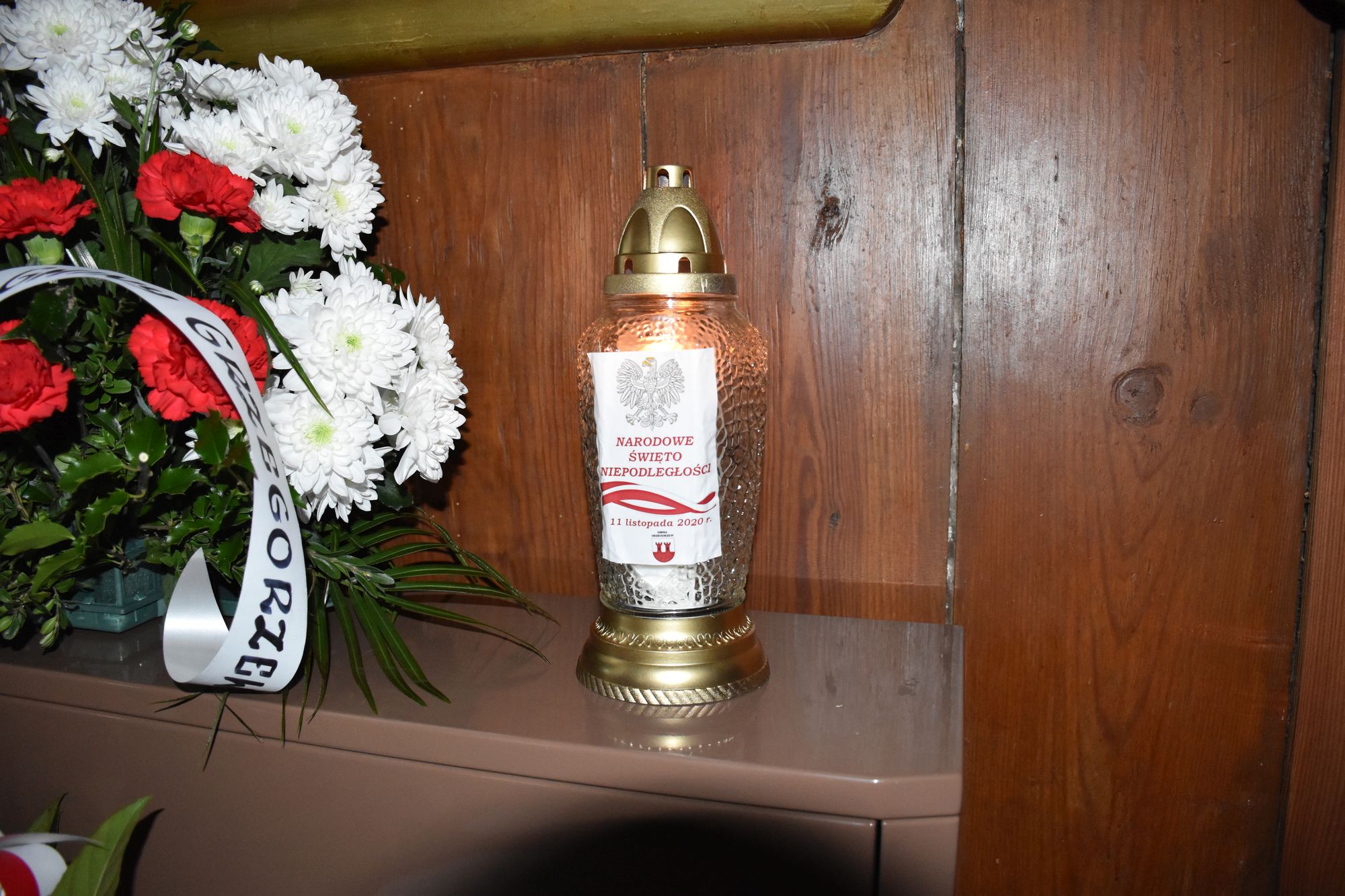 Dla uczczenia pamiÄ™ci Ojców NiepodlegÅ‚oÅ›ci delegacje zÅ‚ożyÅ‚y kwiaty i zapaliÅ‚y znicze przy tablicy upamiÄ™tniajÄ…cej polegÅ‚ych w obronie Ojczyzny w latach 1918 – 1920.
