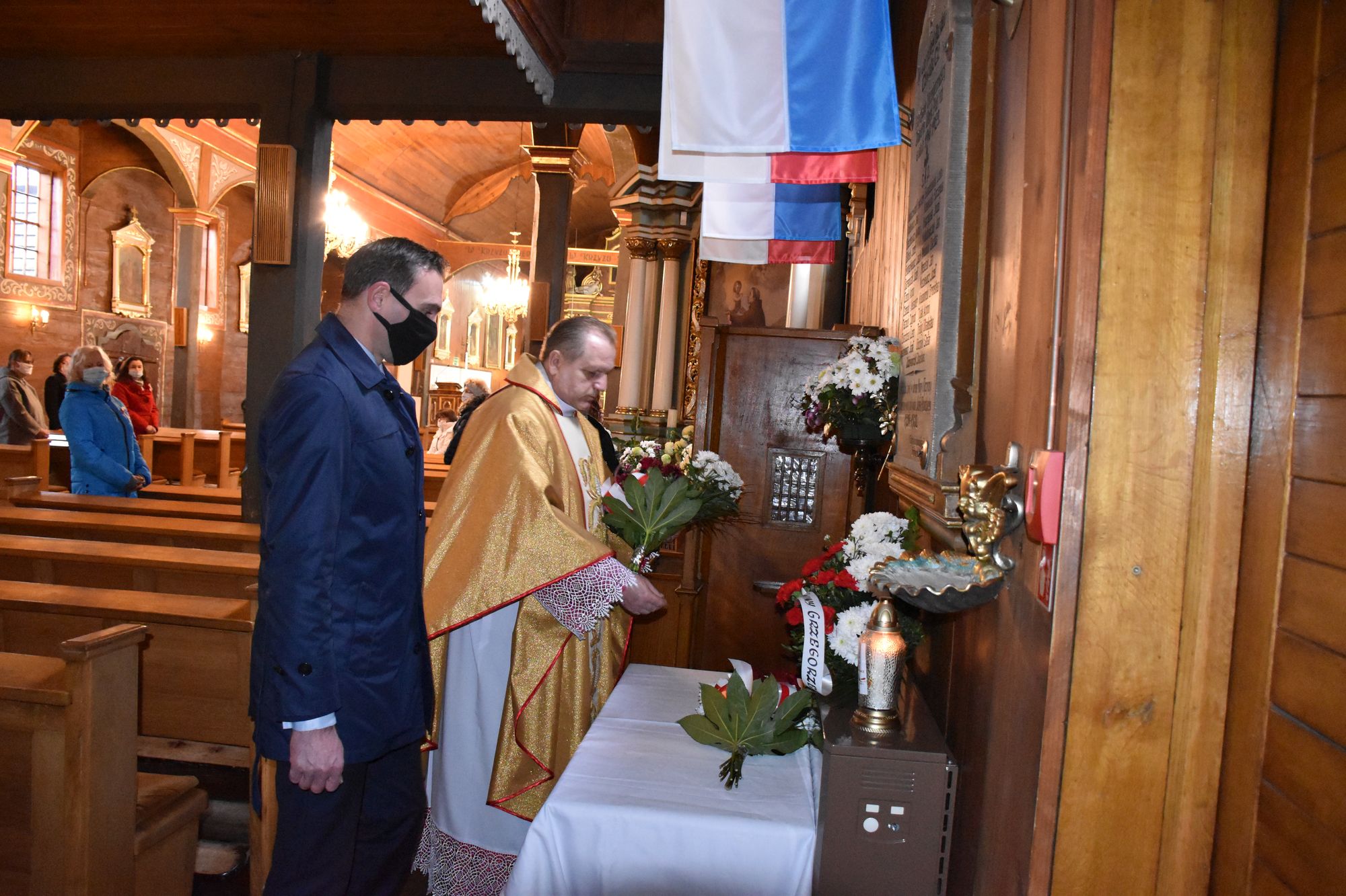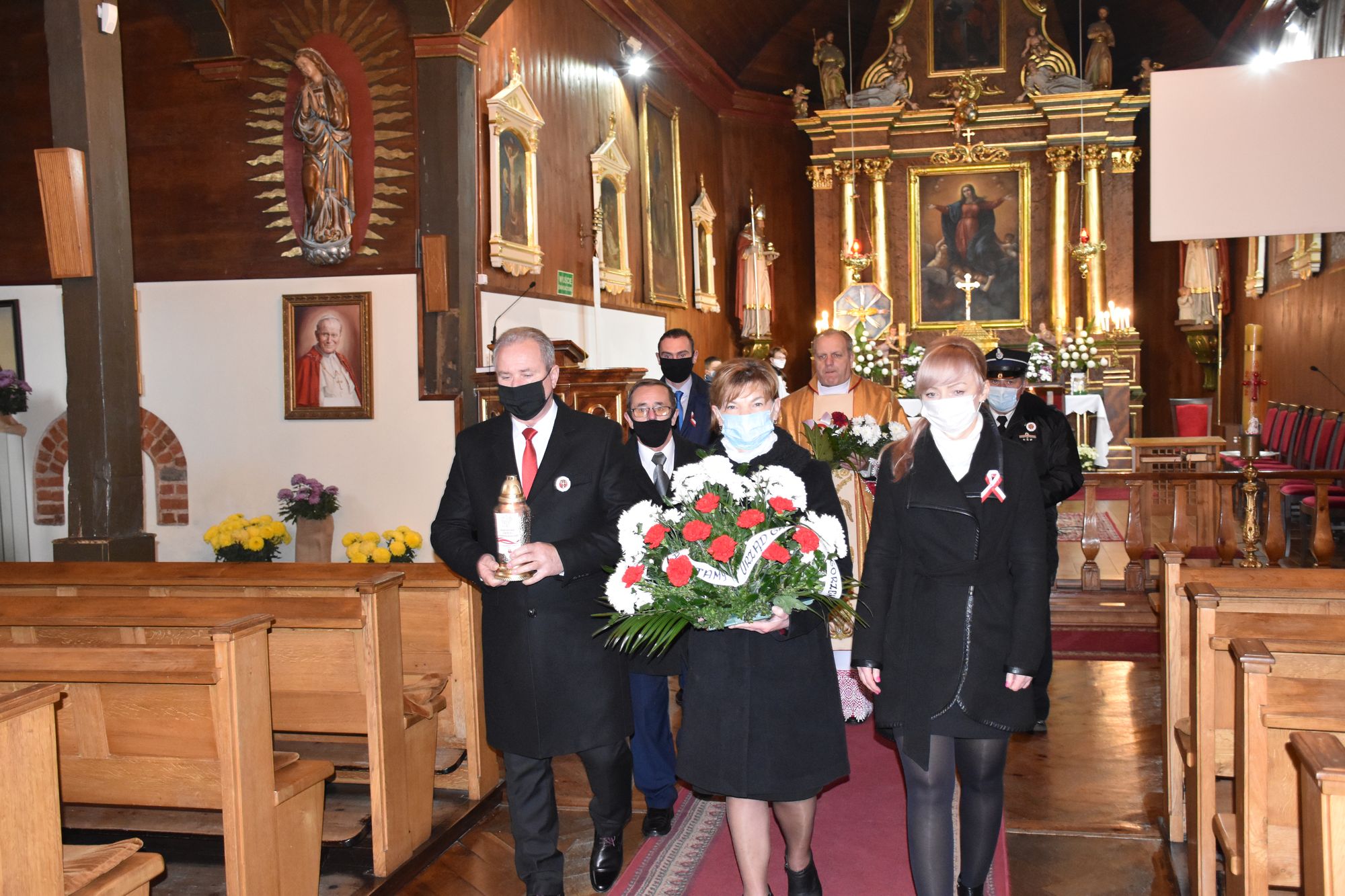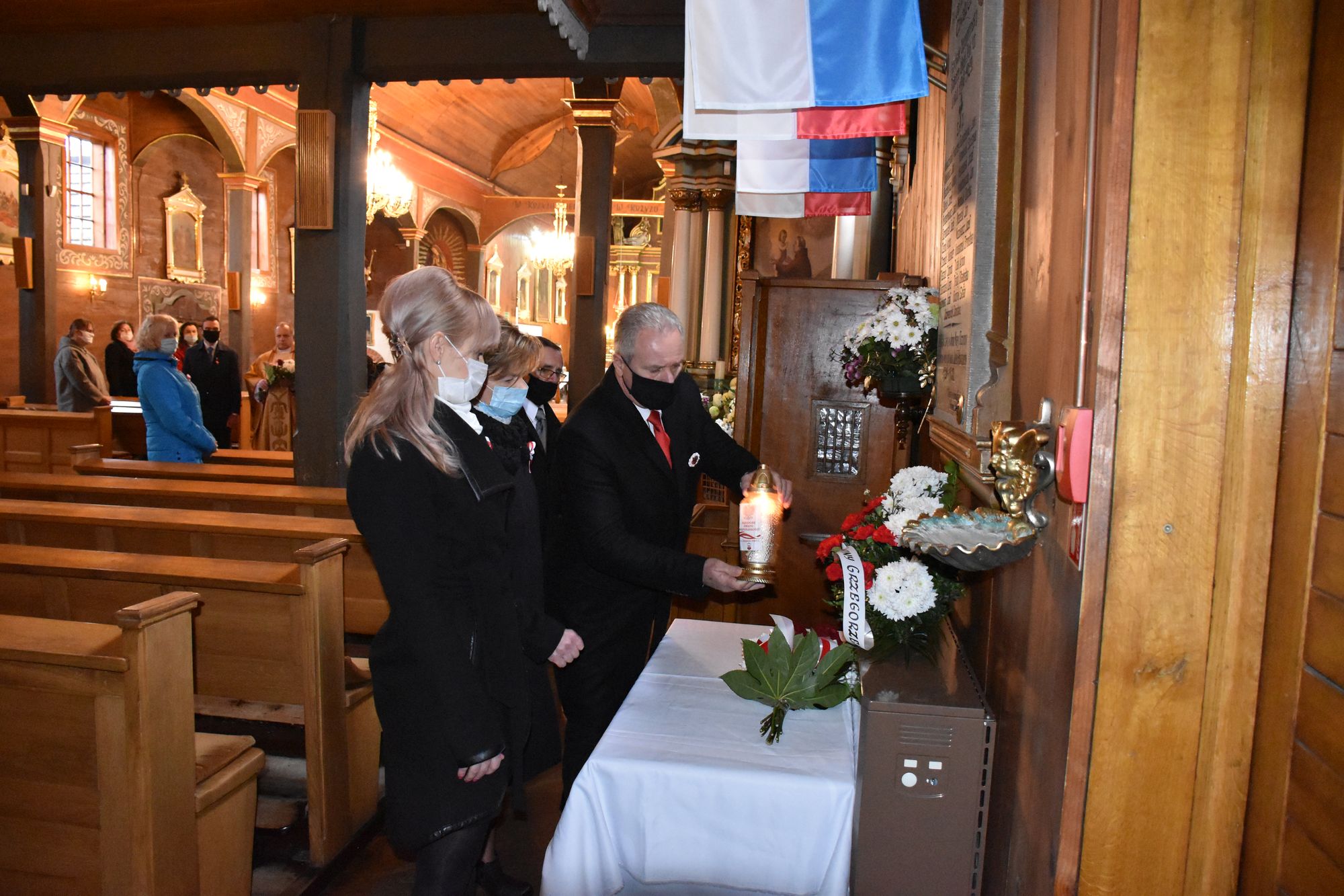 Dla uczczenia pamiÄ™ci Ojców NiepodlegÅ‚oÅ›ci delegacje zÅ‚ożyÅ‚y kwiaty i zapaliÅ‚y znicze przy tablicy upamiÄ™tniajÄ…cej polegÅ‚ych w obronie Ojczyzny w latach 1918 – 1920.