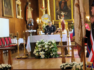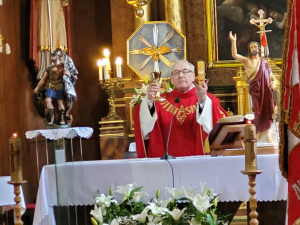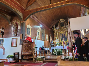 W trakcie Mszy Åšw. KsiÄ…dz PraÅ‚at poÅ›wiÄ™ciÅ‚ figurkÄ™ Åšw. Floriana patrona Strażaków, którÄ… ufundowaÅ‚ Pan Piotr Opas - CzÅ‚onek ZarzÄ…du GÅ‚ównego ZwiÄ…zku Ochotniczych Straży Pożarnych RP w Warszawie.
