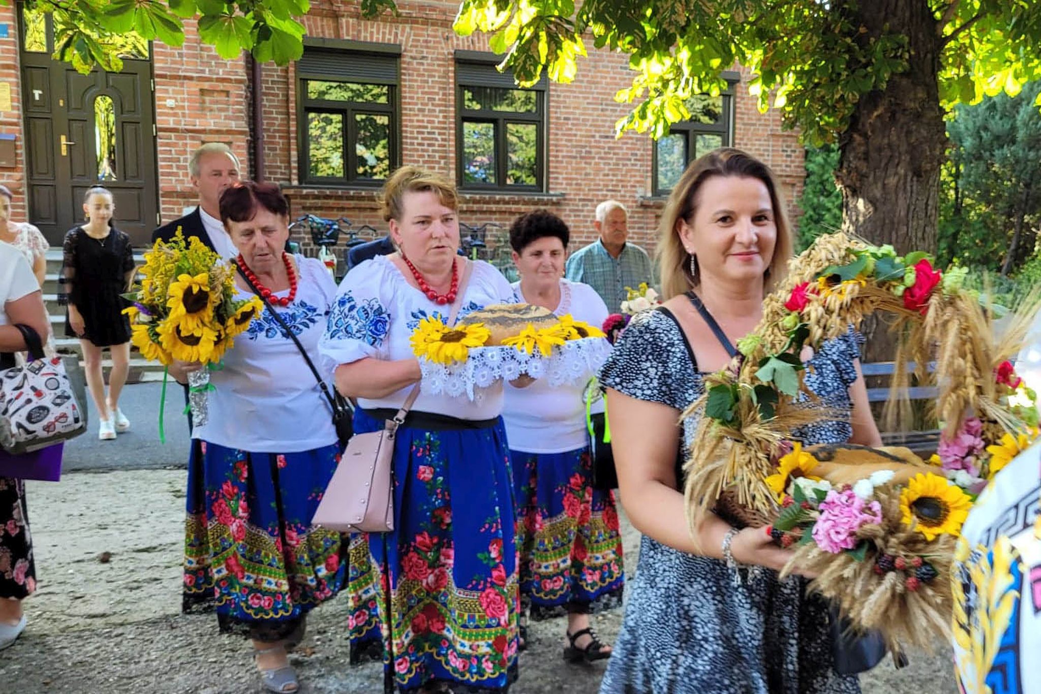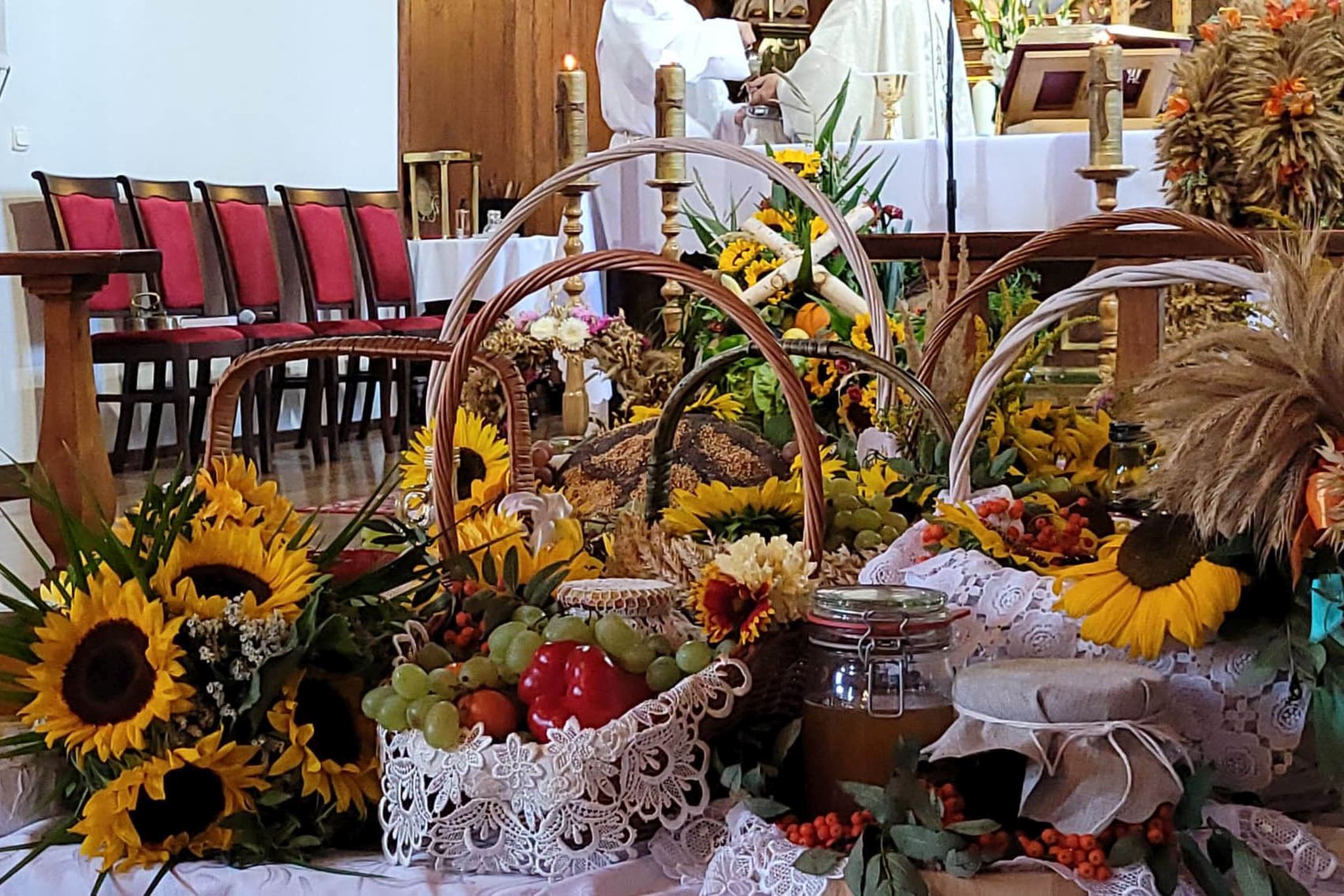NastÄ™pnie modlÄ…c siÄ™ za wszystkich rolników i dziÄ™kujÄ…c za ich ciężkÄ… pracÄ™ na oÅ‚tarz zostaÅ‚y zÅ‚ożone pÅ‚ody ziemi oraz chleb.