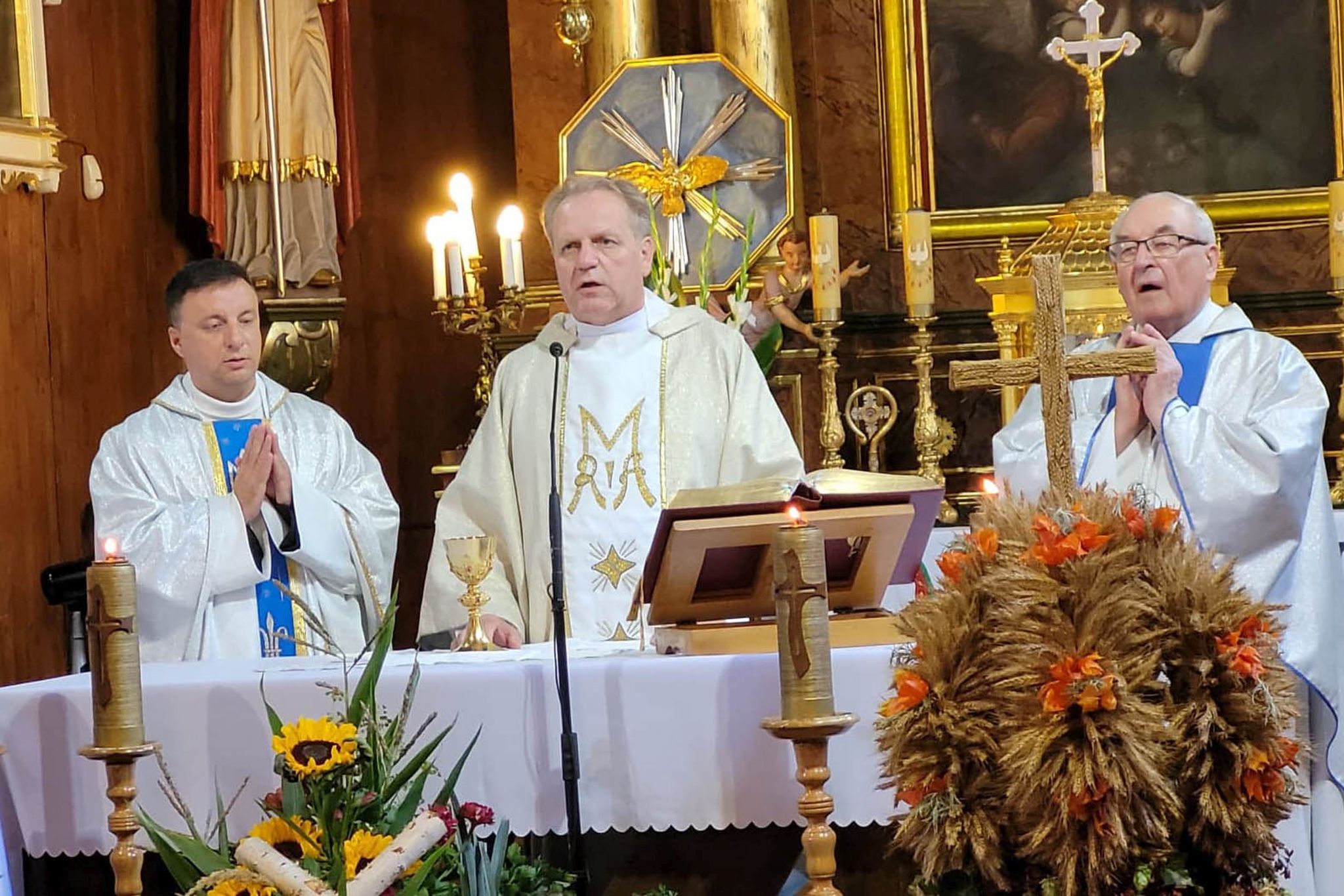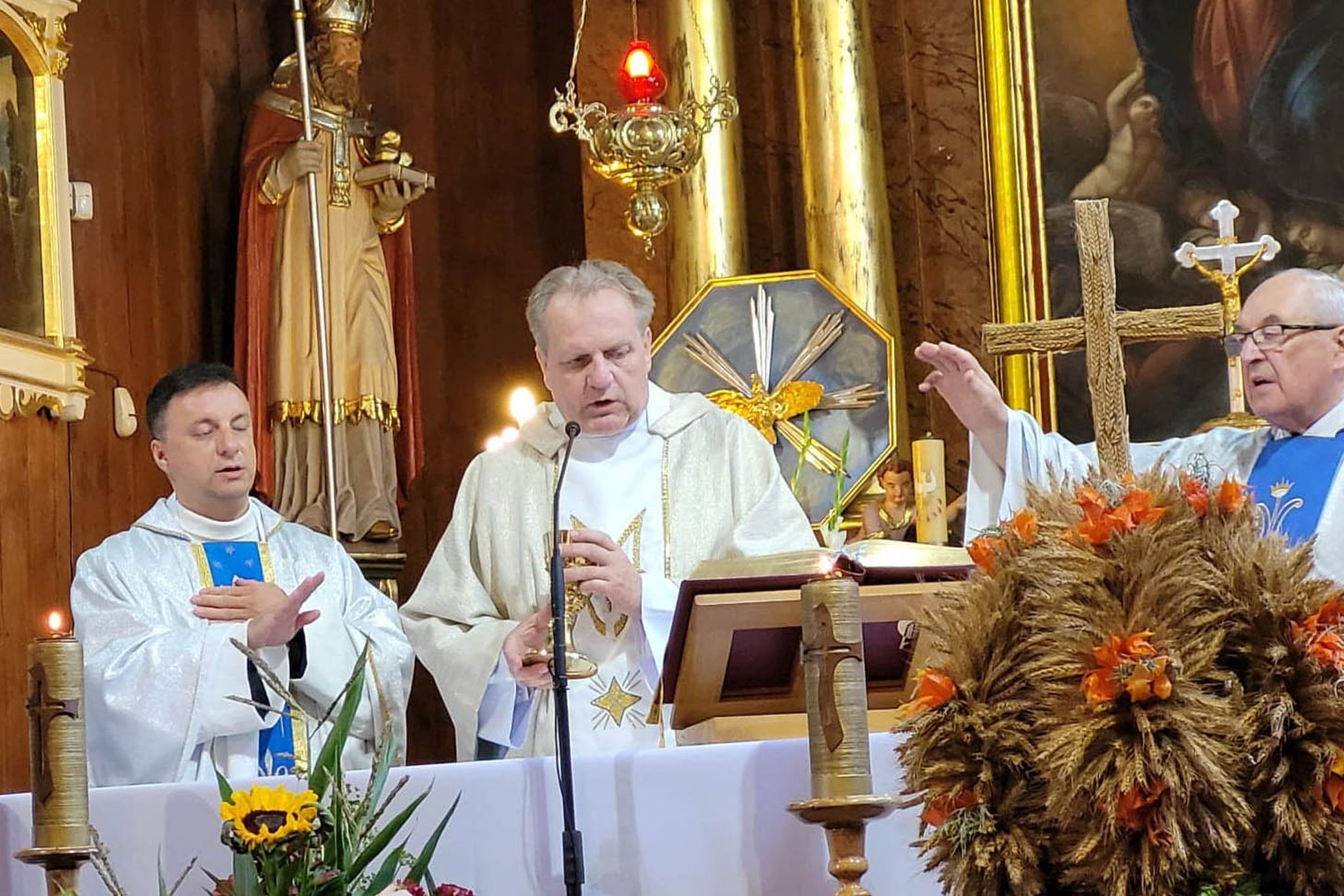 OkolicznoÅ›ciowÄ… MszÄ™ ÅšwiÄ™tÄ… w intencji rolników odprawiÅ‚ ksiÄ…dz proboszcz Krzysztof Pietryga w koncelebrze z ksiÄ™dzem praÅ‚atem MichaÅ‚em Pietrzakiem, ksiÄ™dzem wikariuszem Karolem Kropkowskim oraz ojcem Igorem z Klasztoru Ojców Bernardynów w Kole.